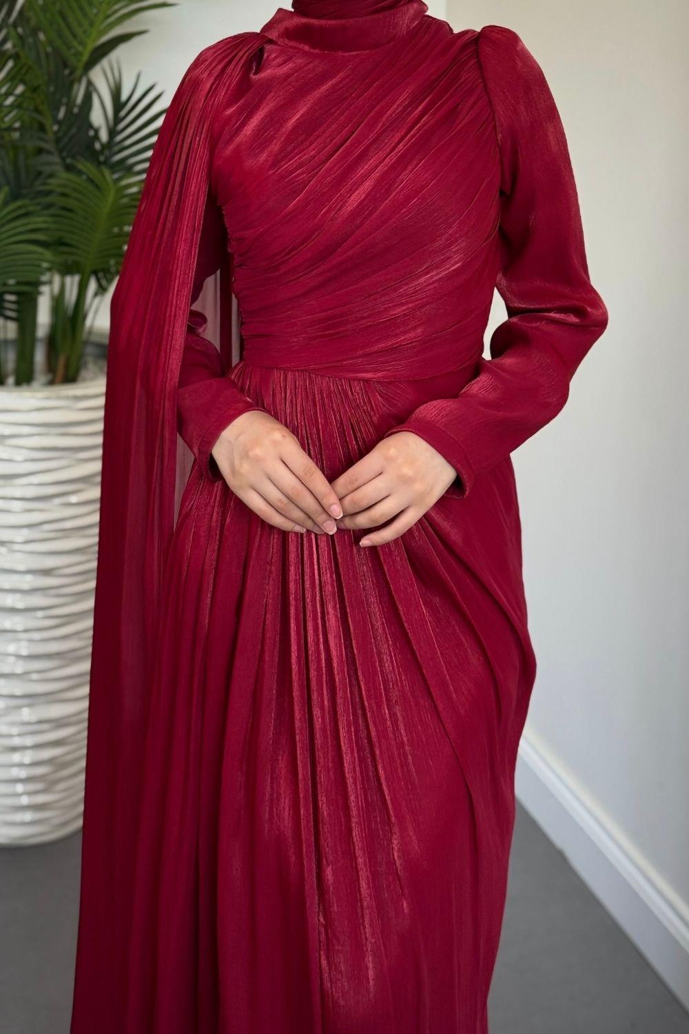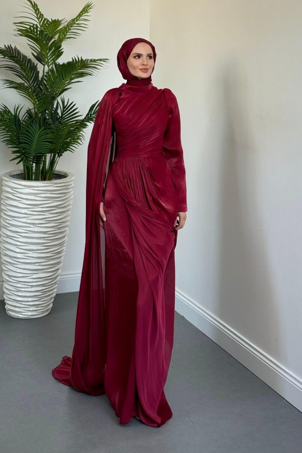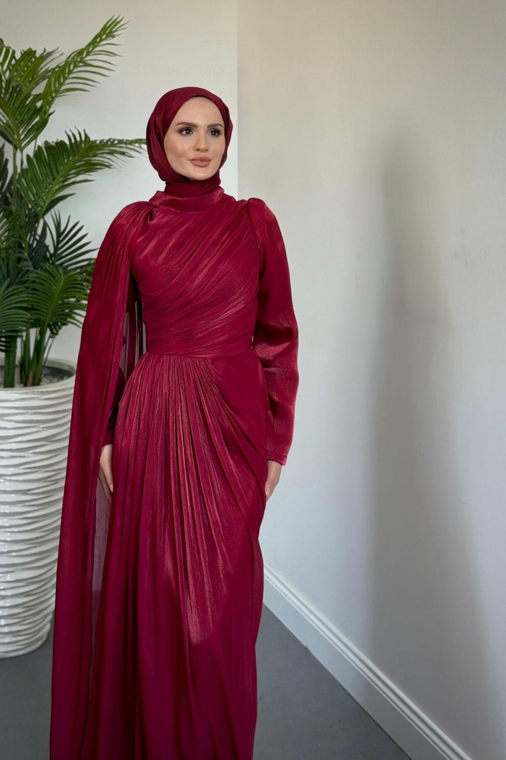 Rosalinne Tek Omuz Pelerinli Drapeli Jan Jan Abiye Bordo
