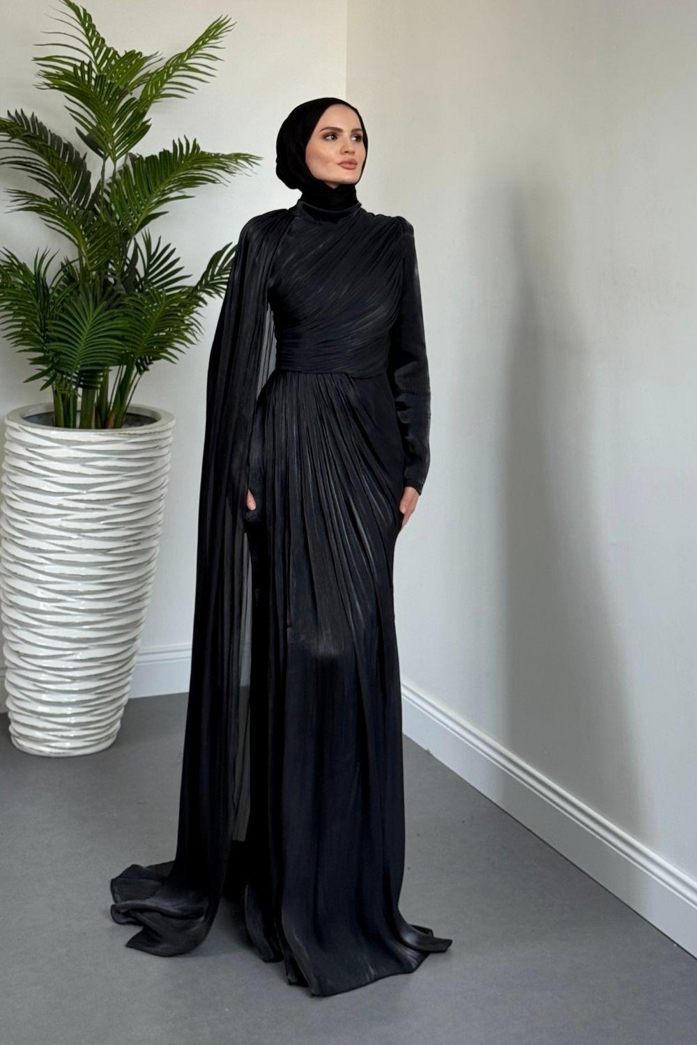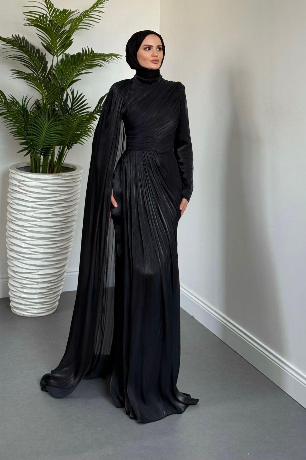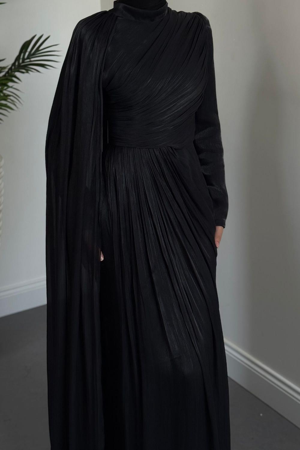 Rosalinne Tek Omuz Pelerinli Drapeli Jan Jan Abiye Siyah