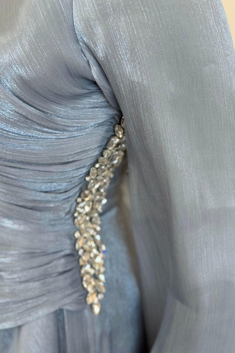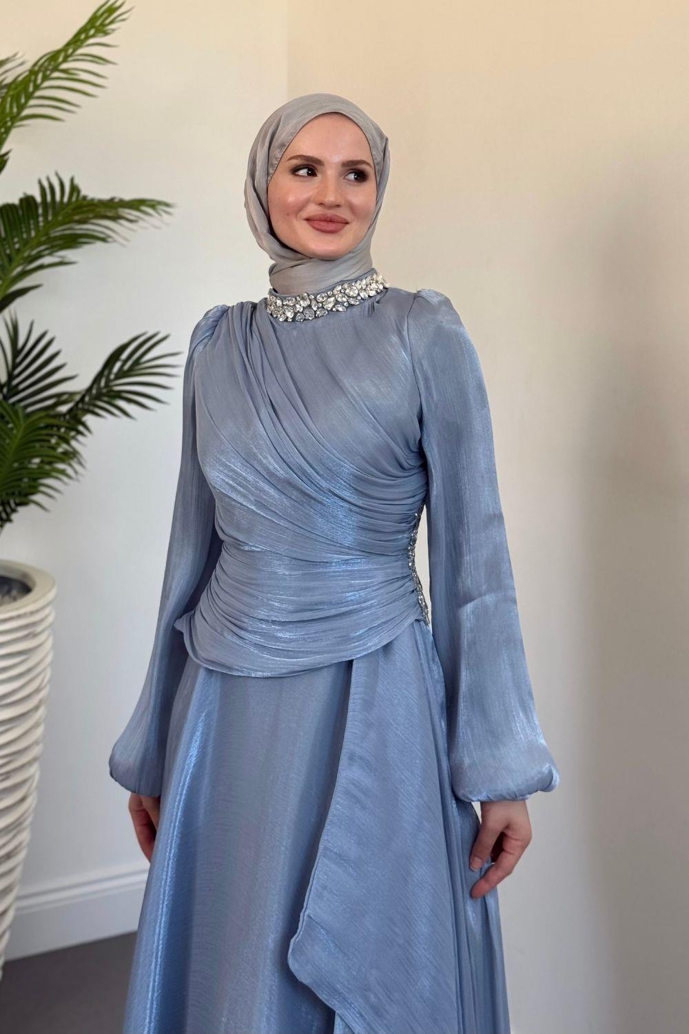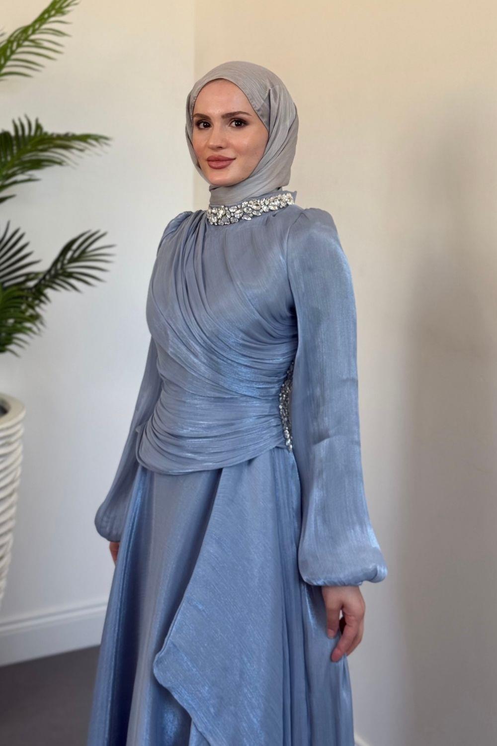 Kylea Yandan Taşlı Jan Jan Abiye Buz Mavisi