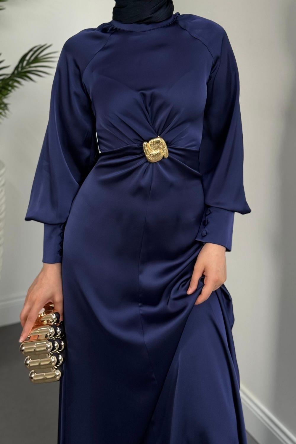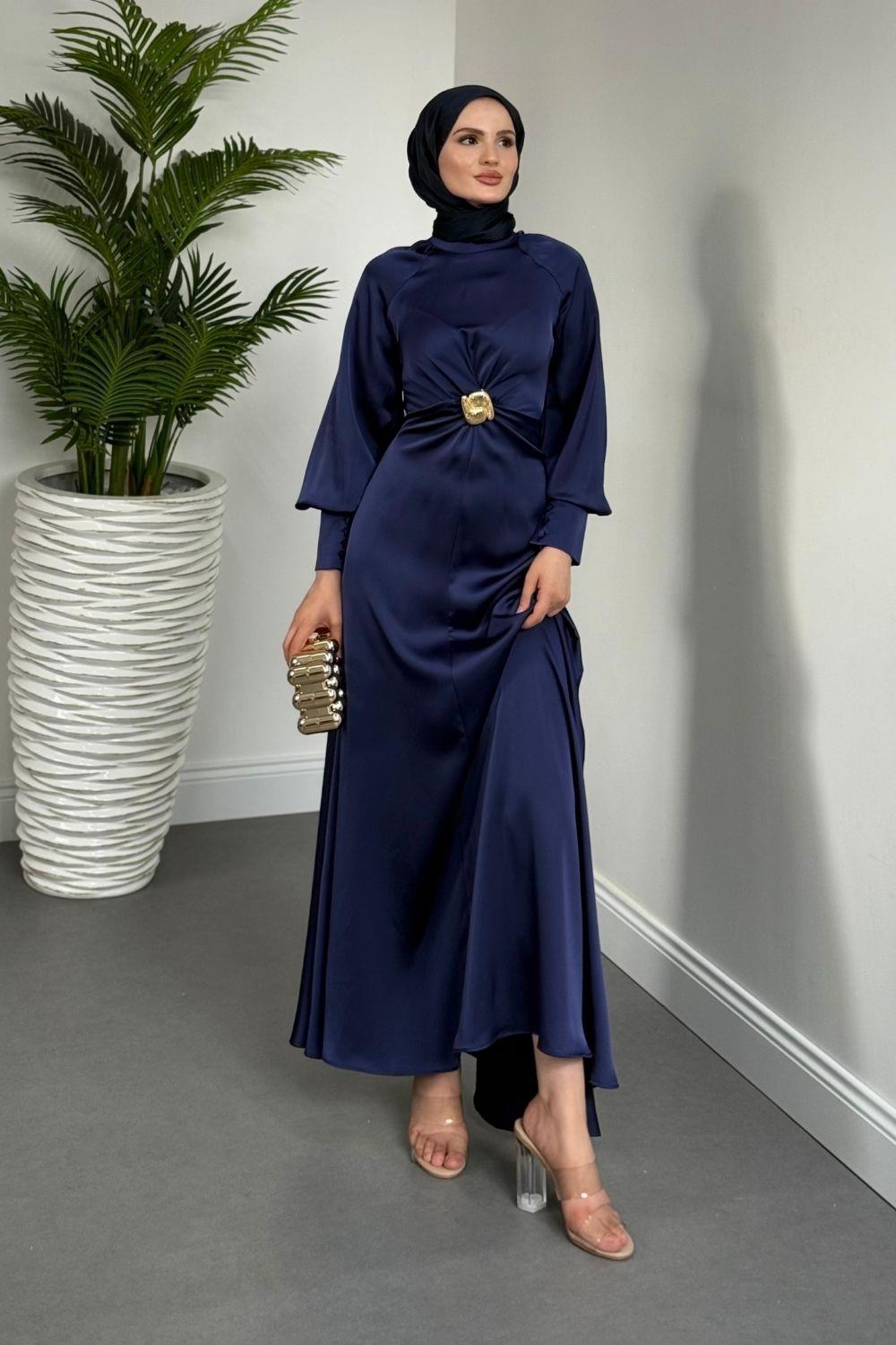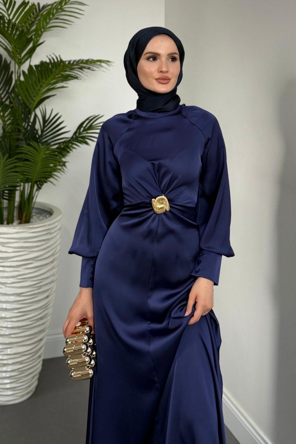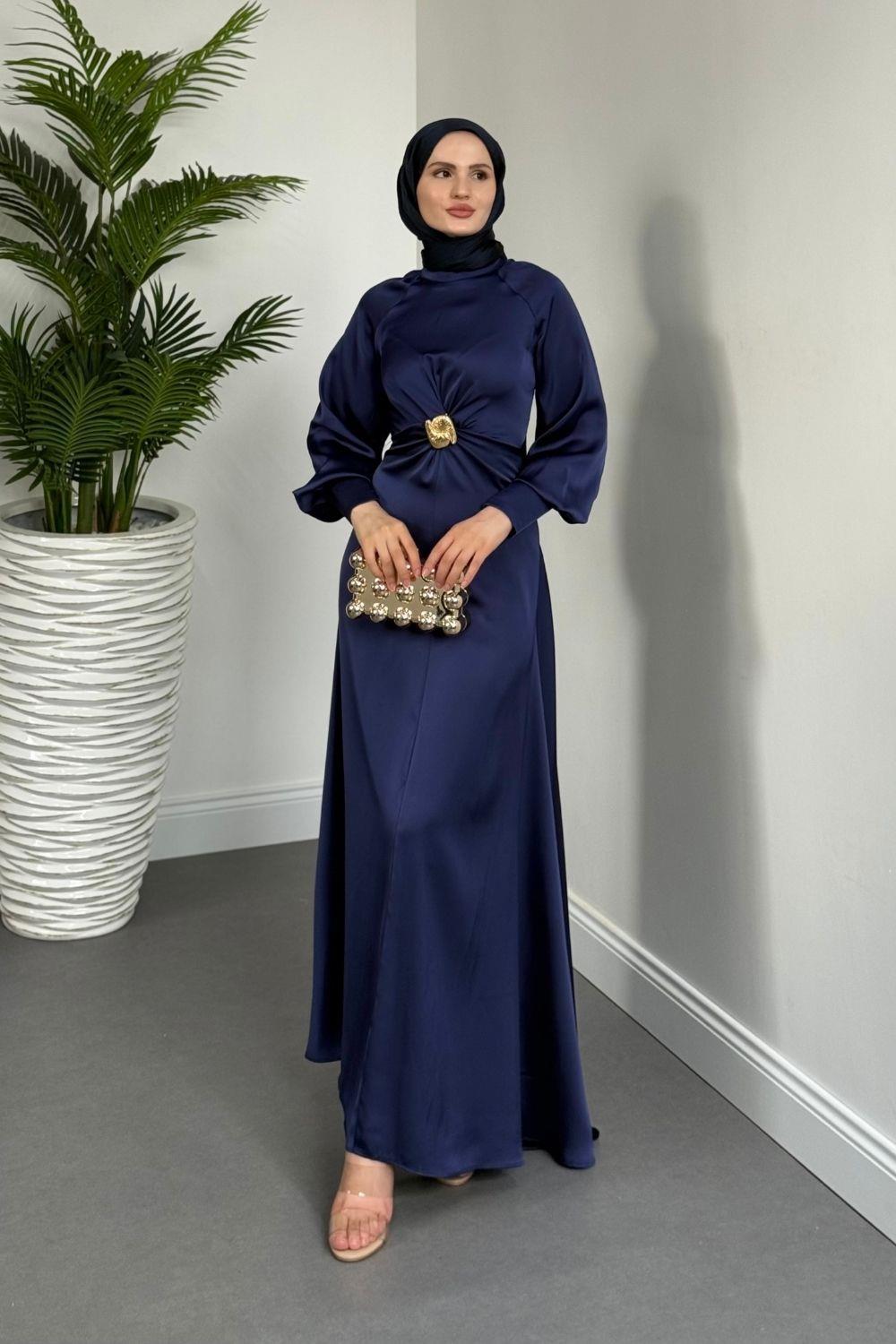 Reneta Seyyar Tokalı Saten Abiye Lacivert(TOKASIZ)