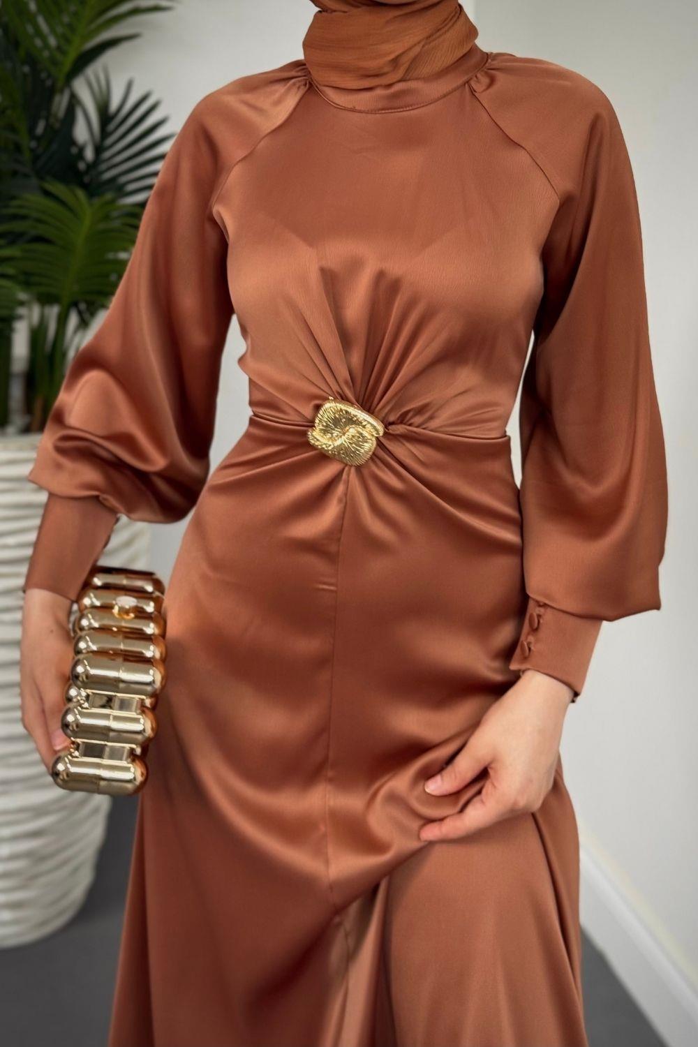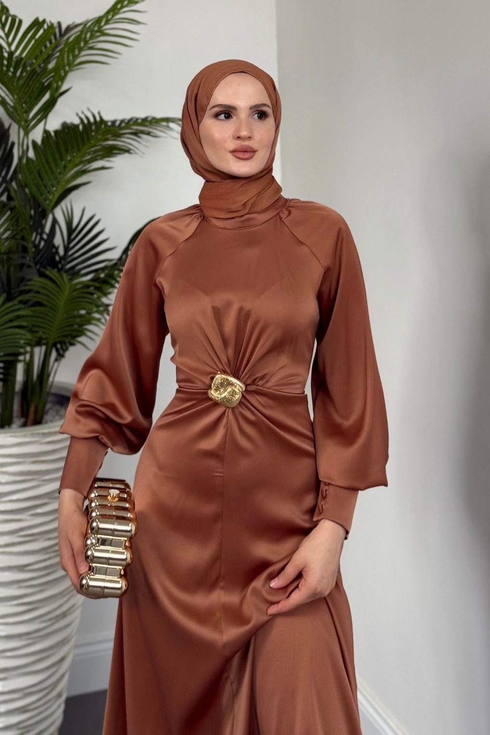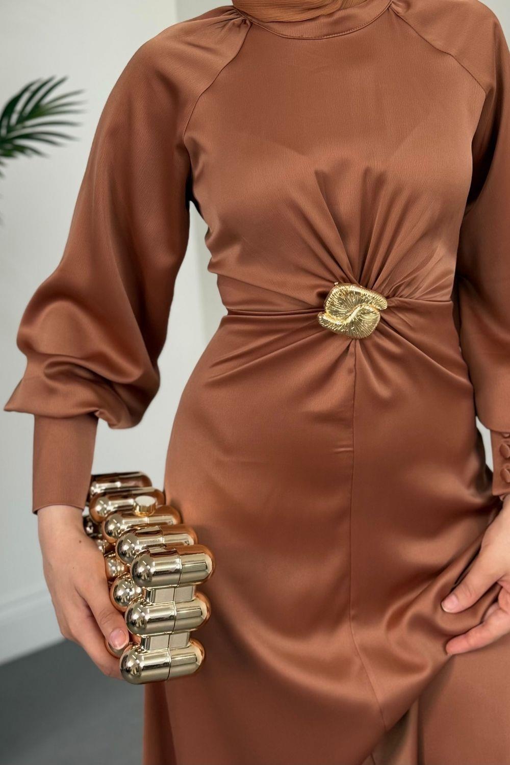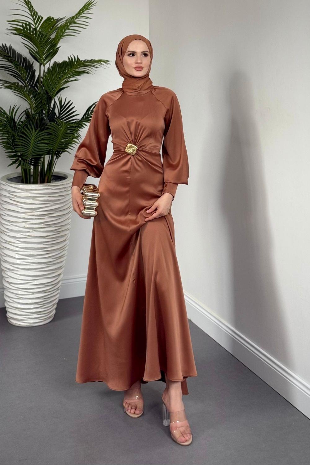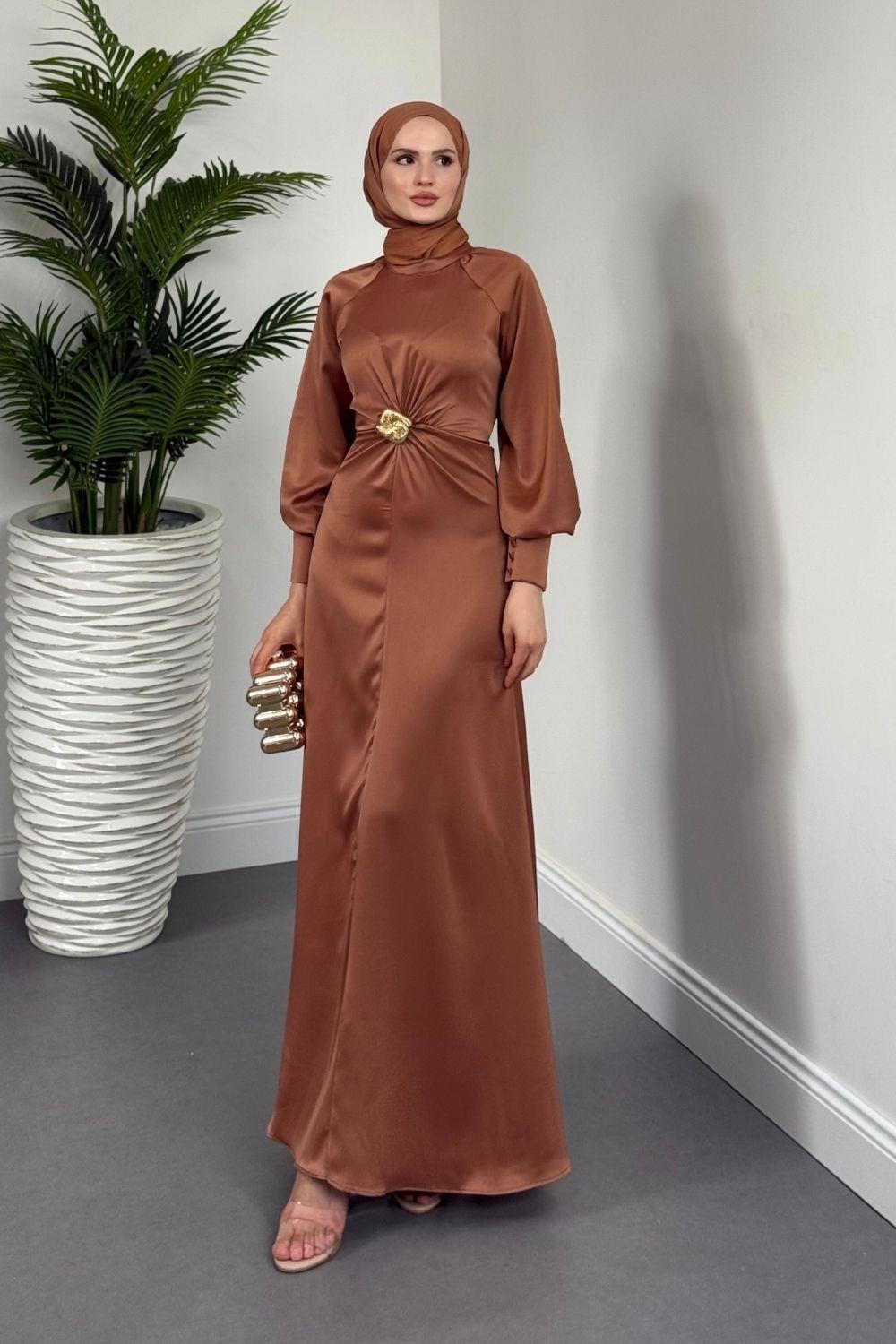 Reneta Seyyar Tokalı Saten Abiye Cappucino(TOKASIZ)