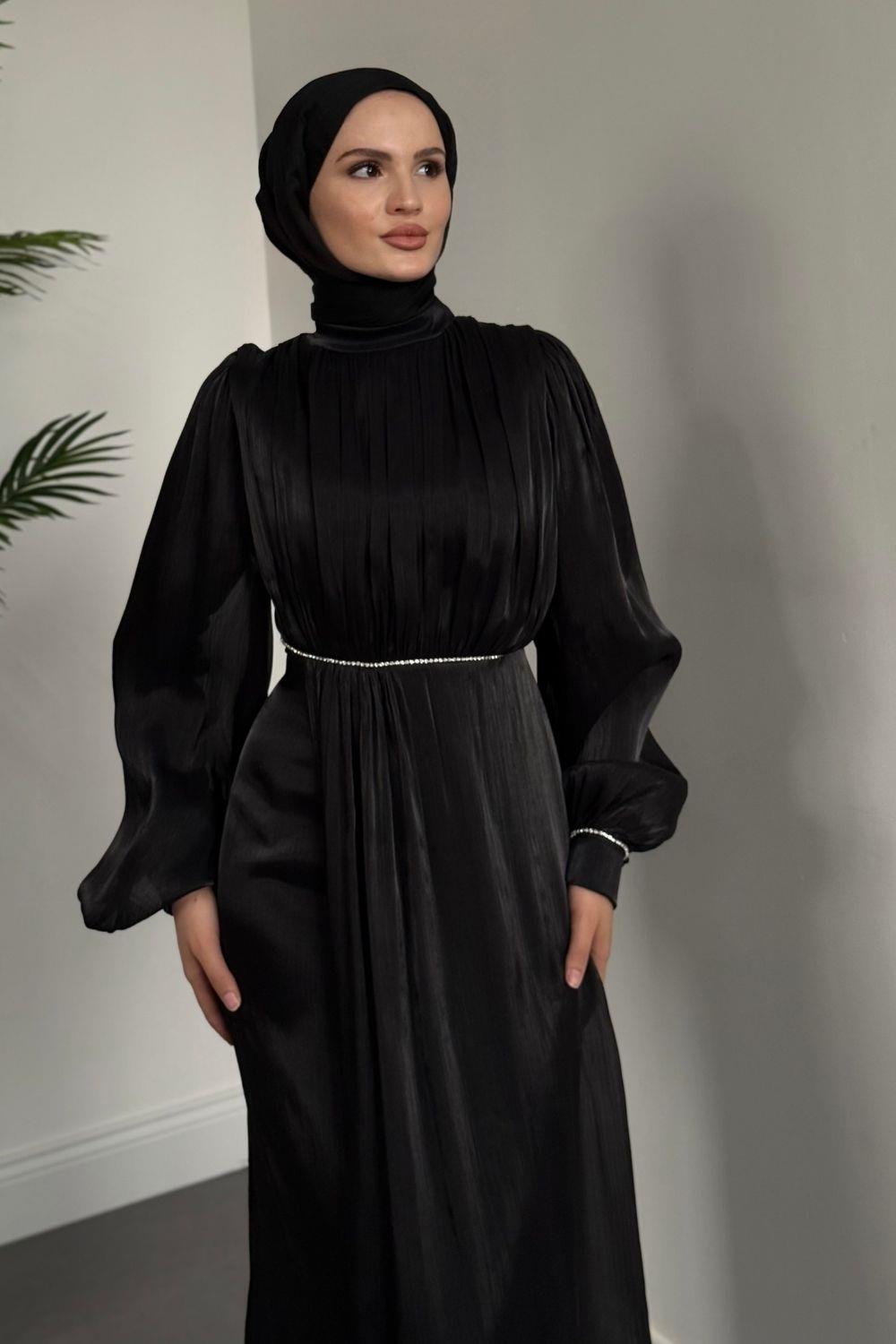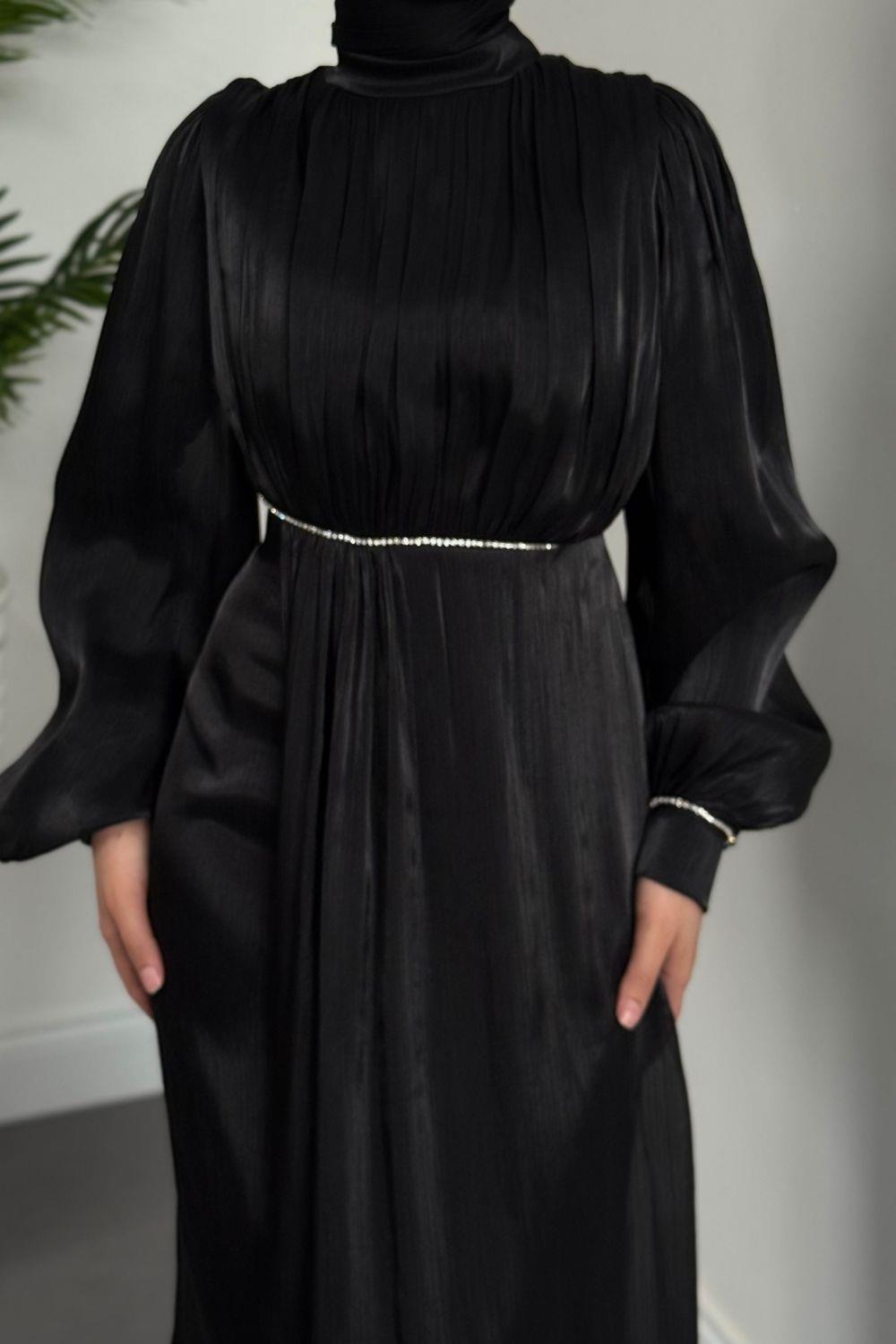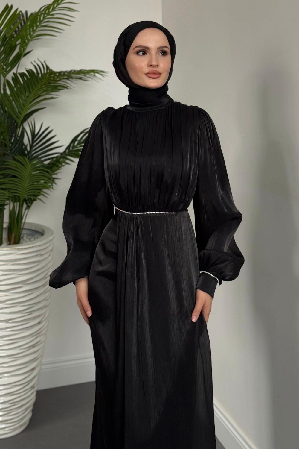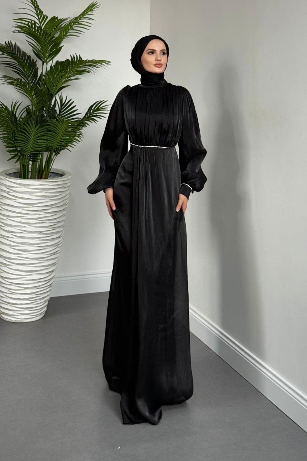 Shay Beli Ve Kolu Baget Taşlı Abiye Janjan Abiye Siyah