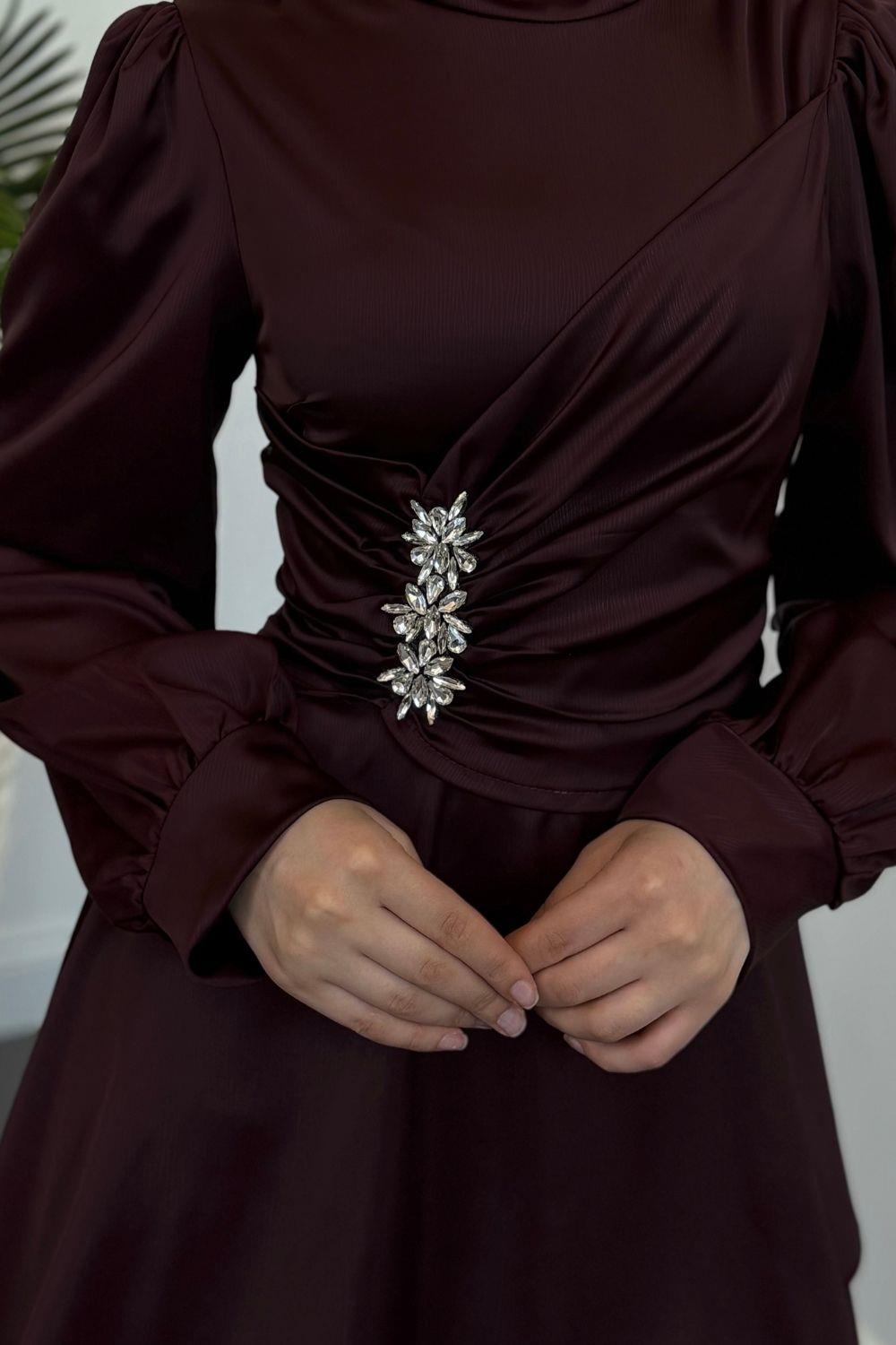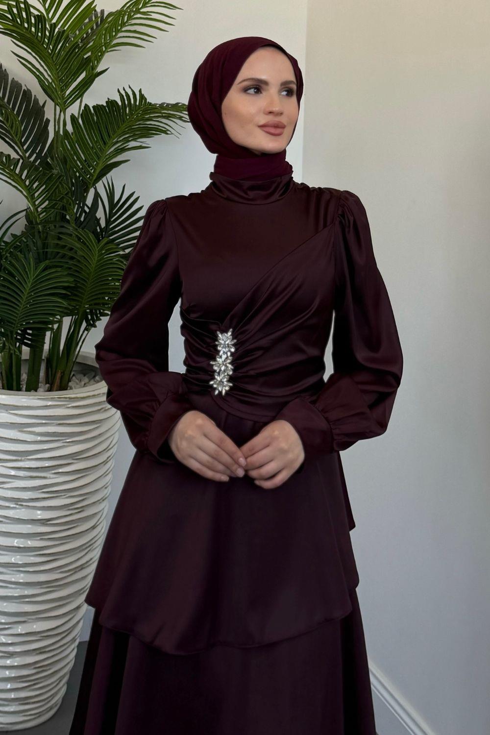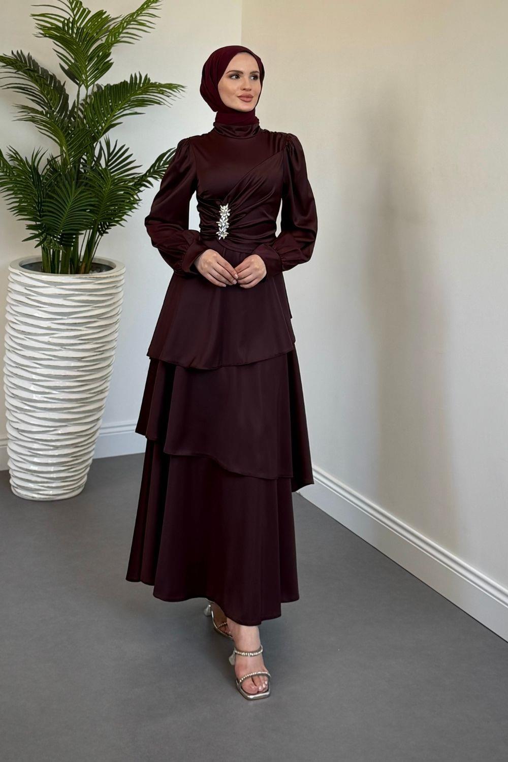Simera Taşlı Kat Kat Abiye Mürdüm