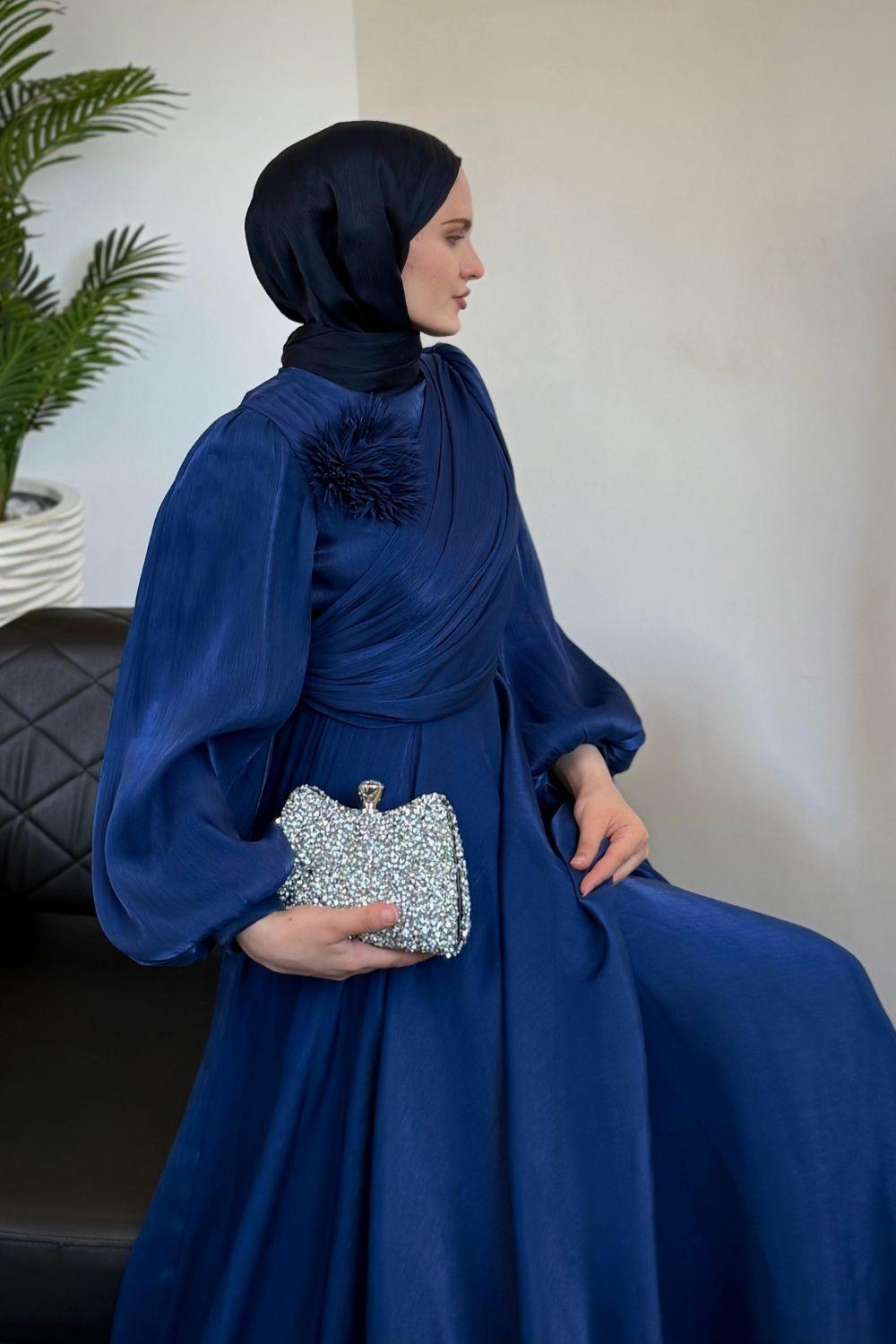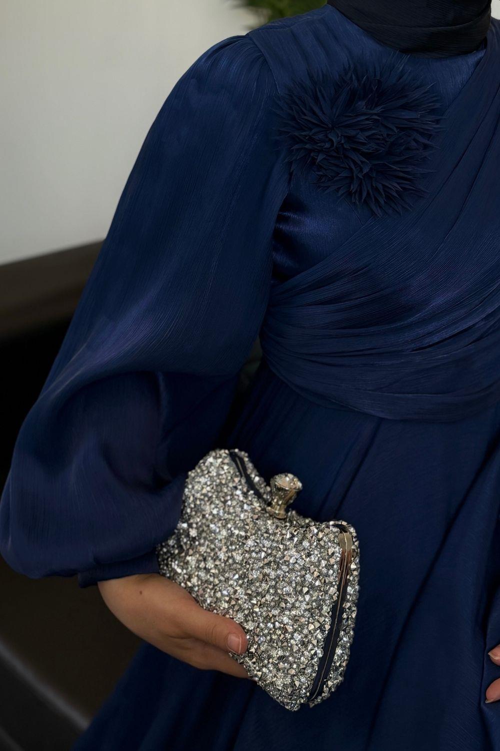 Anastasia Omzu Güllü Abiye Lacivert (GÜLSÜZDÜR)