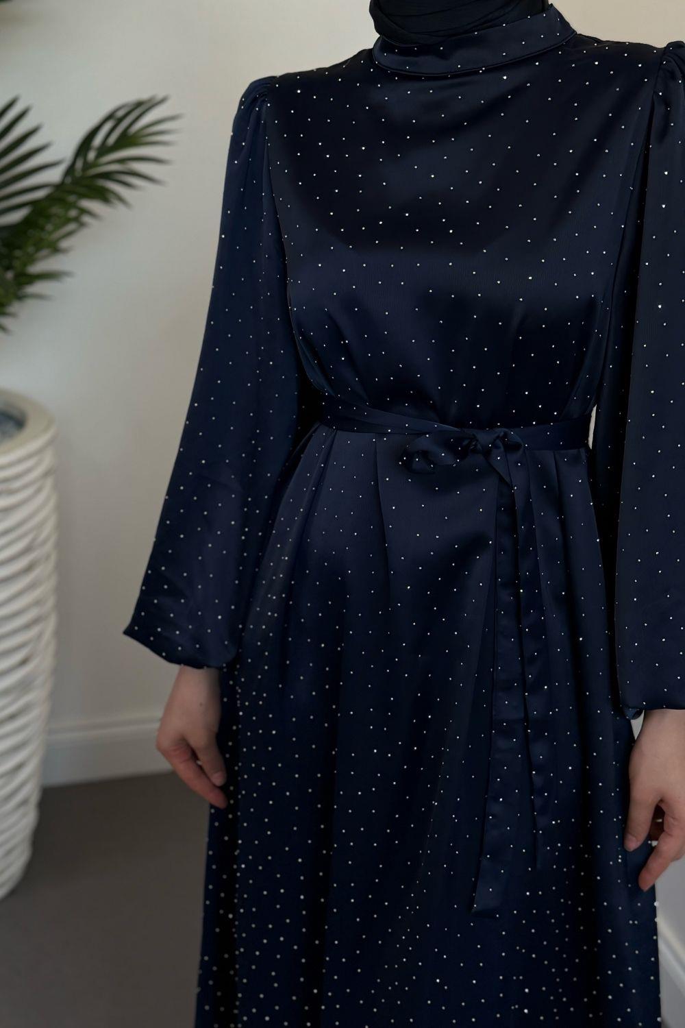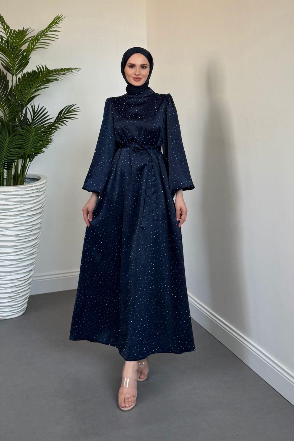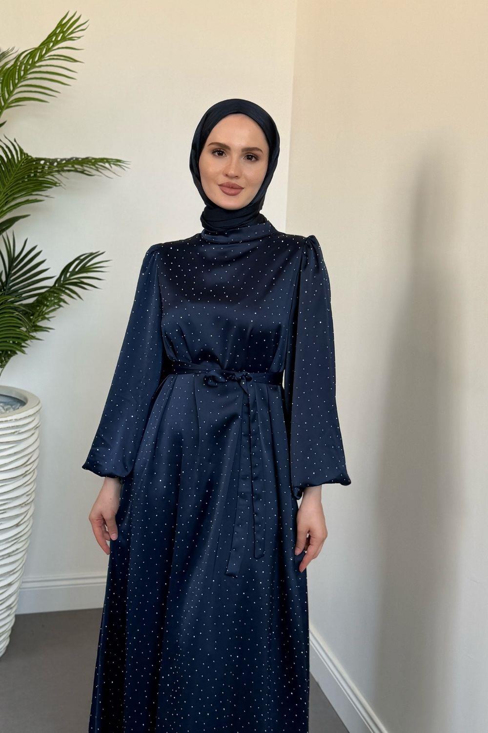 Milano Taşlı Balon Kol Abiye Lacivert