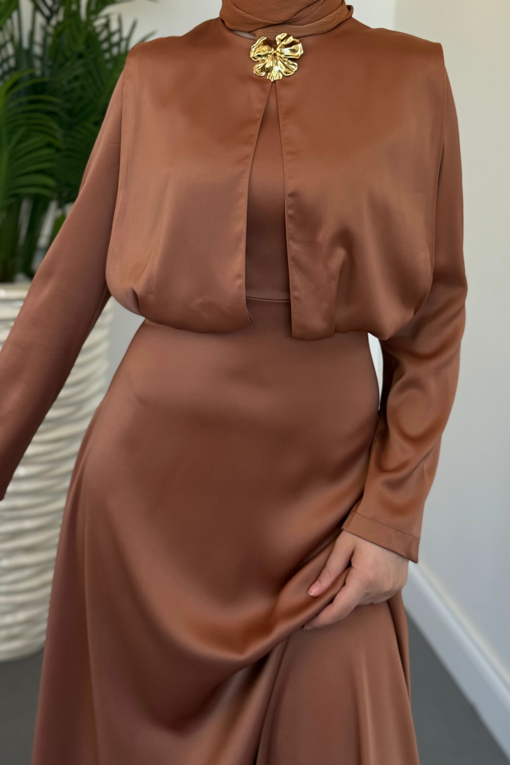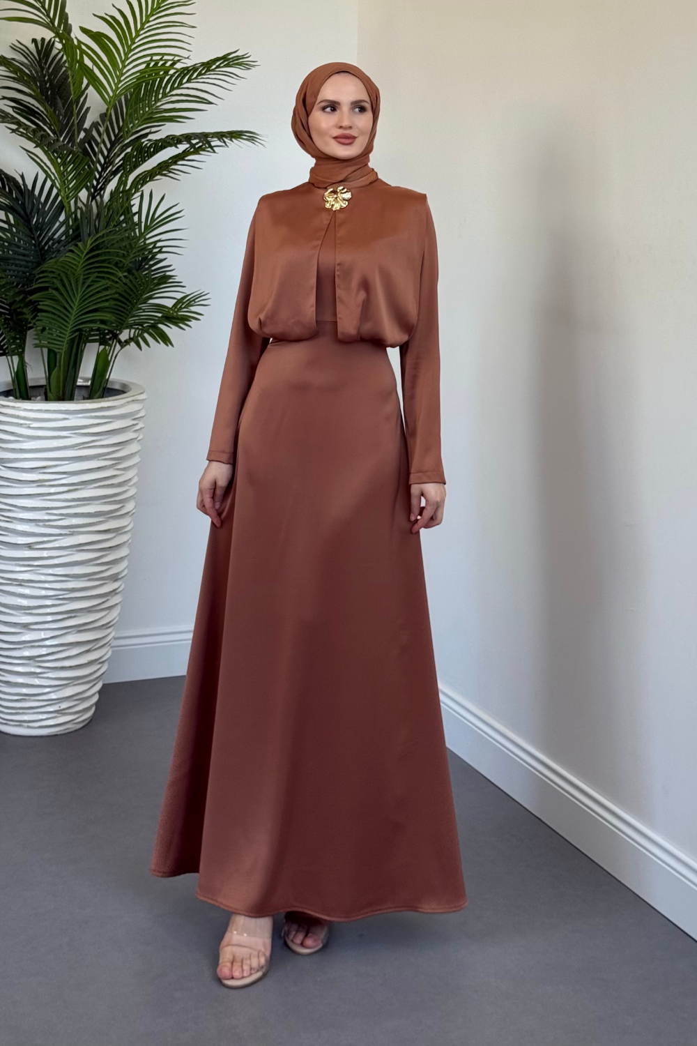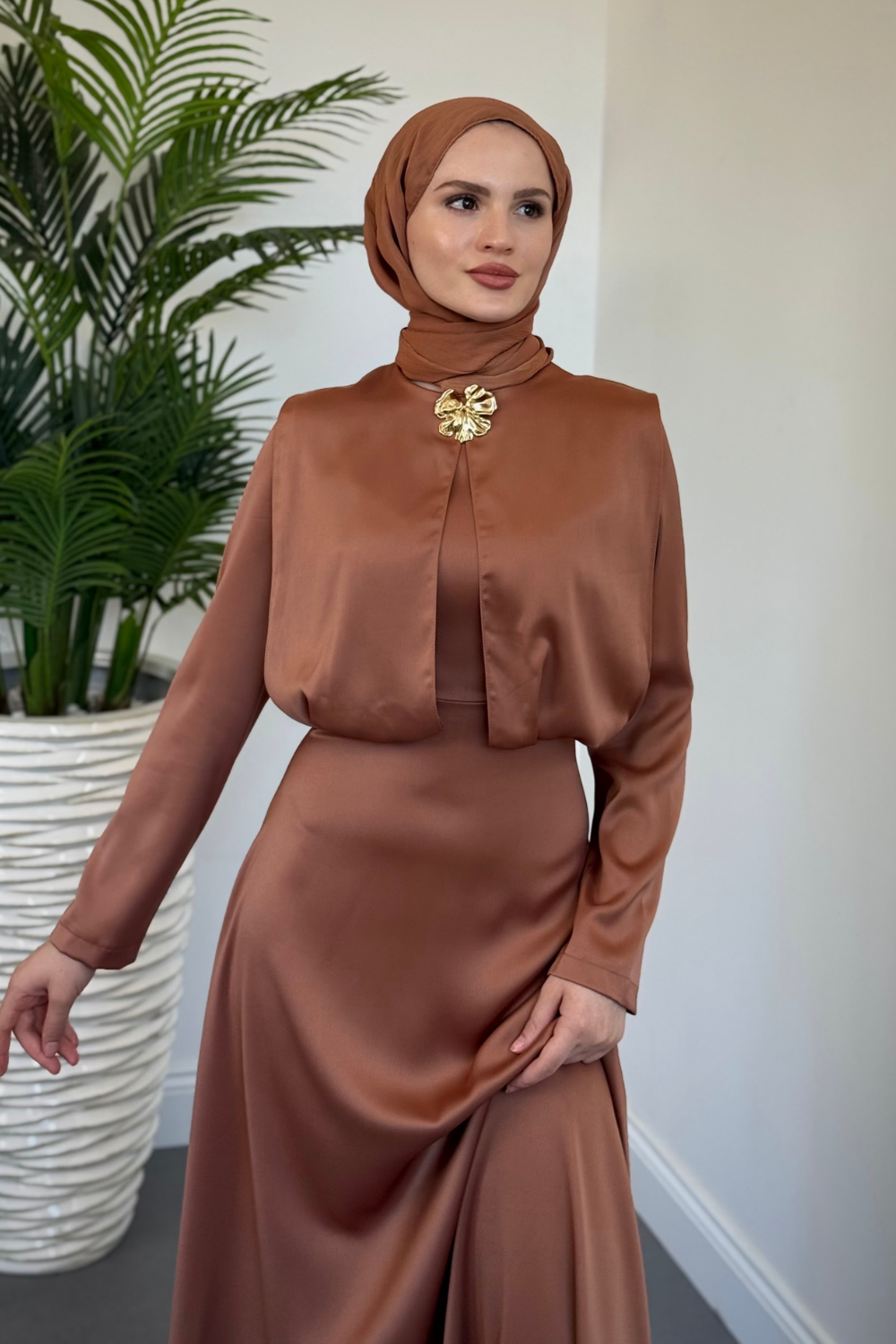 Elizan Tokalı Saten Abiye Cappucino(TOKASIZDIR)