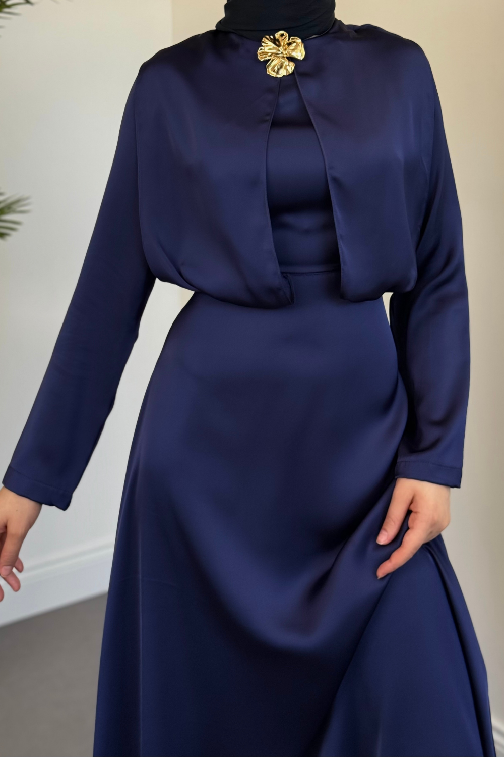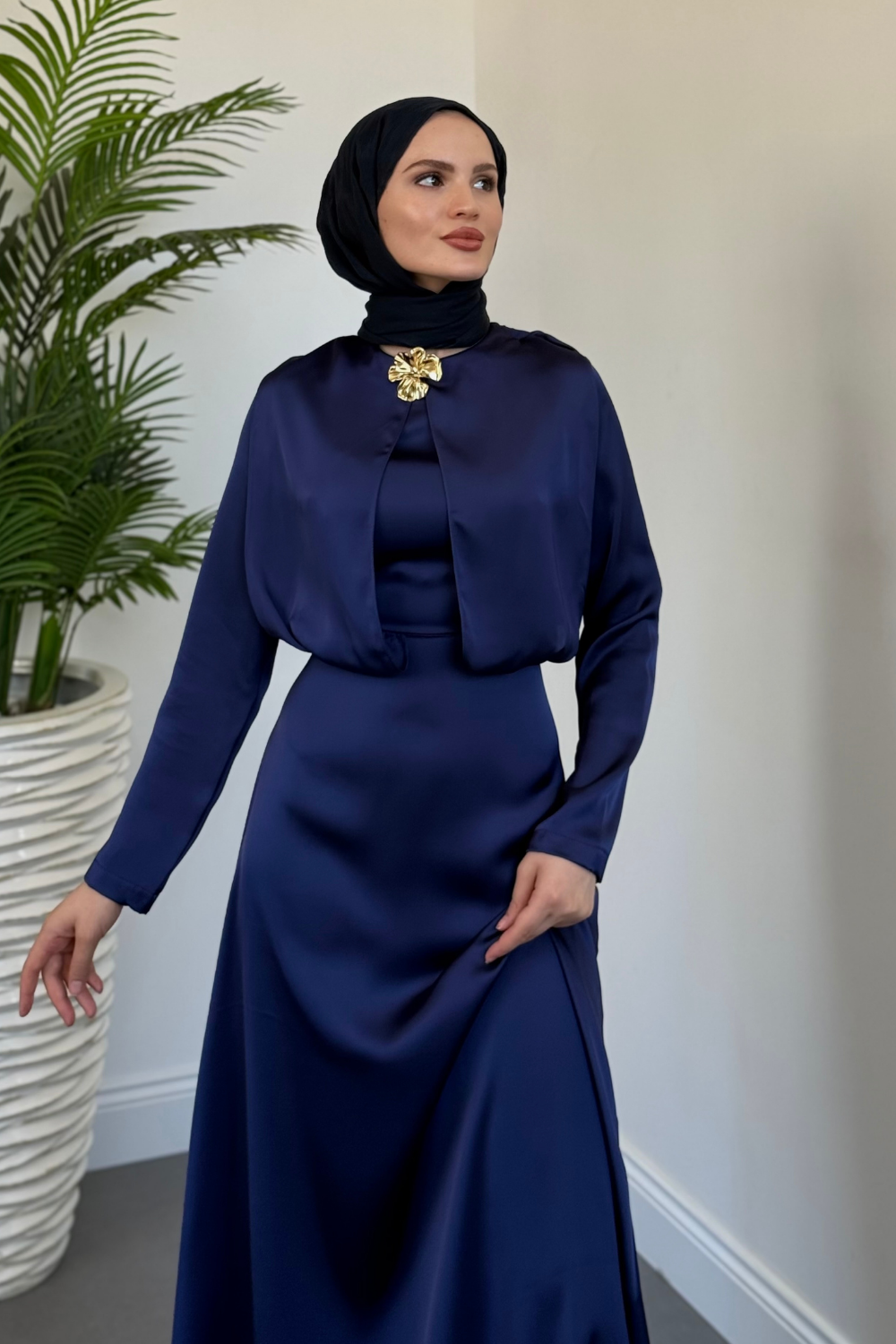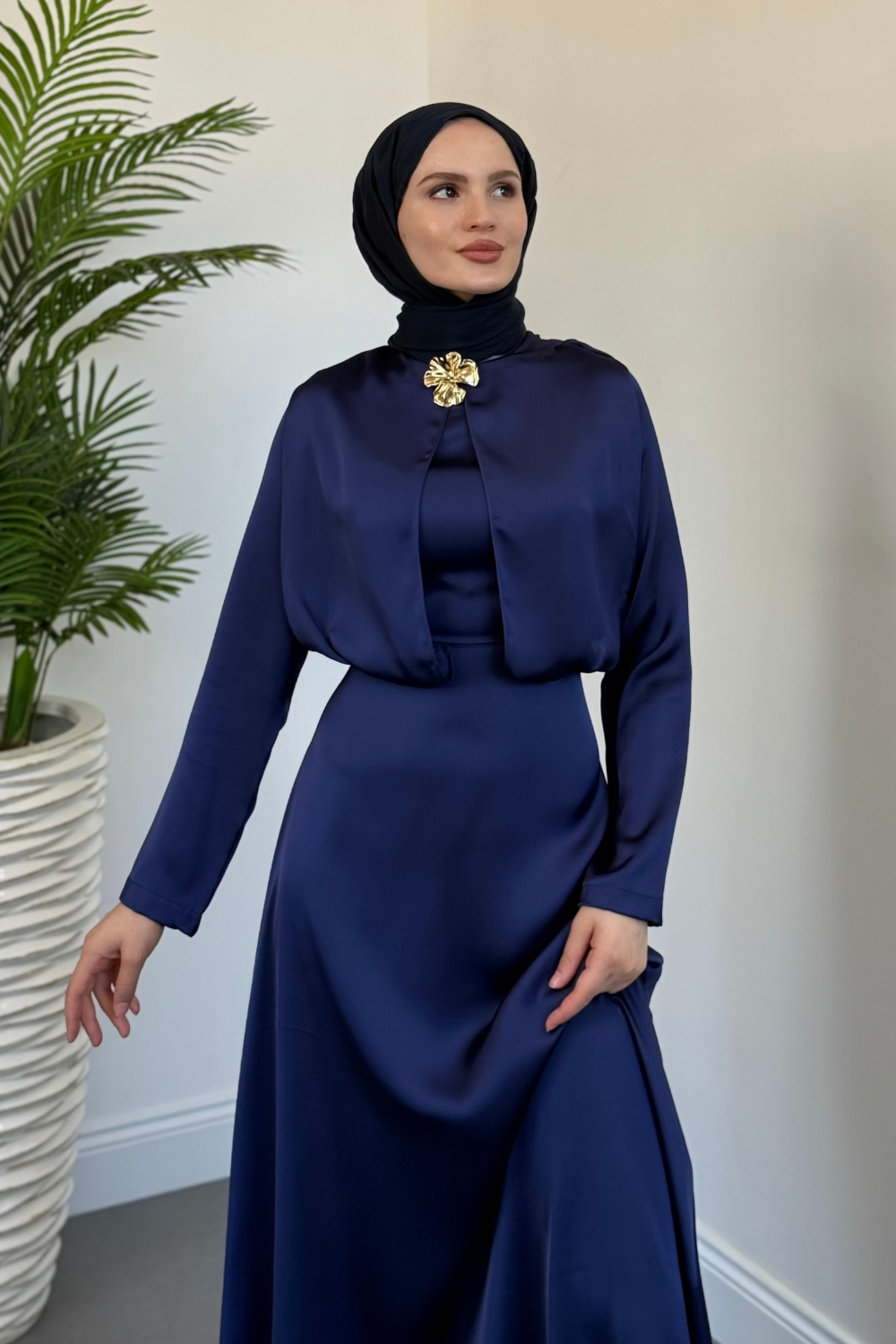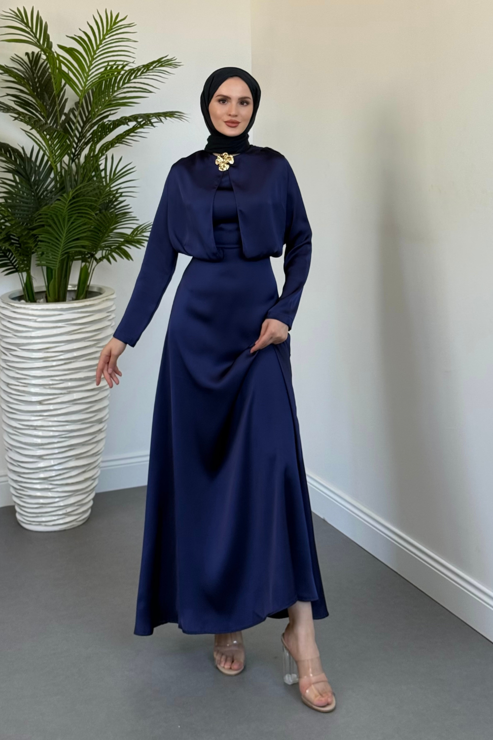 Elizan Tokalı Saten Abiye Lacivert(TOKASIZDIR)