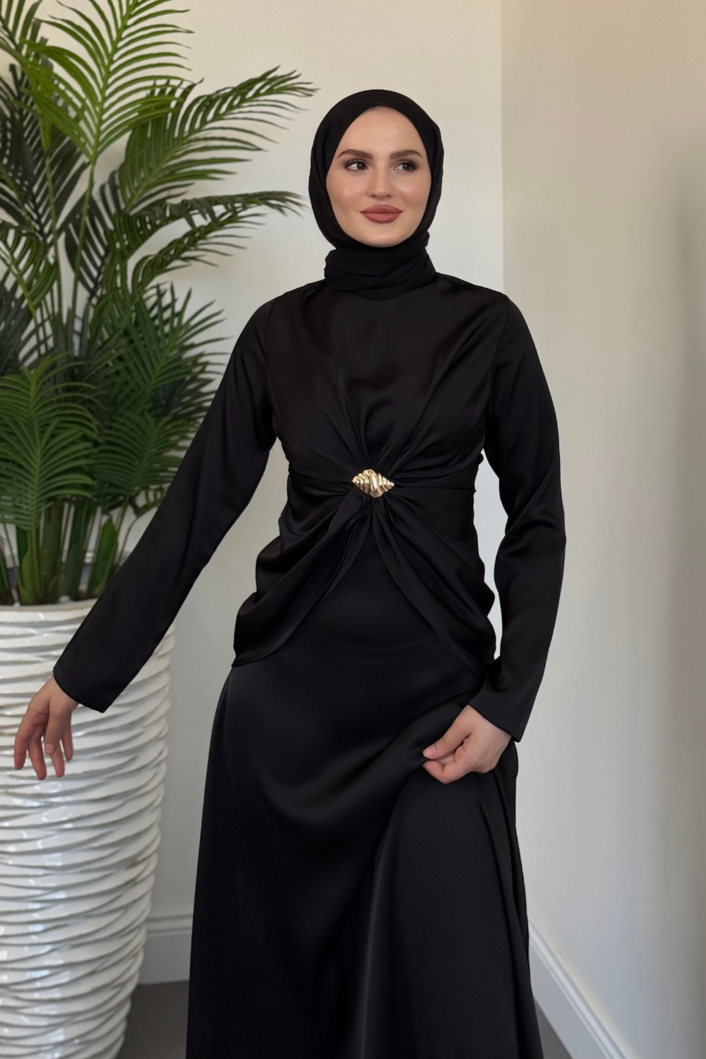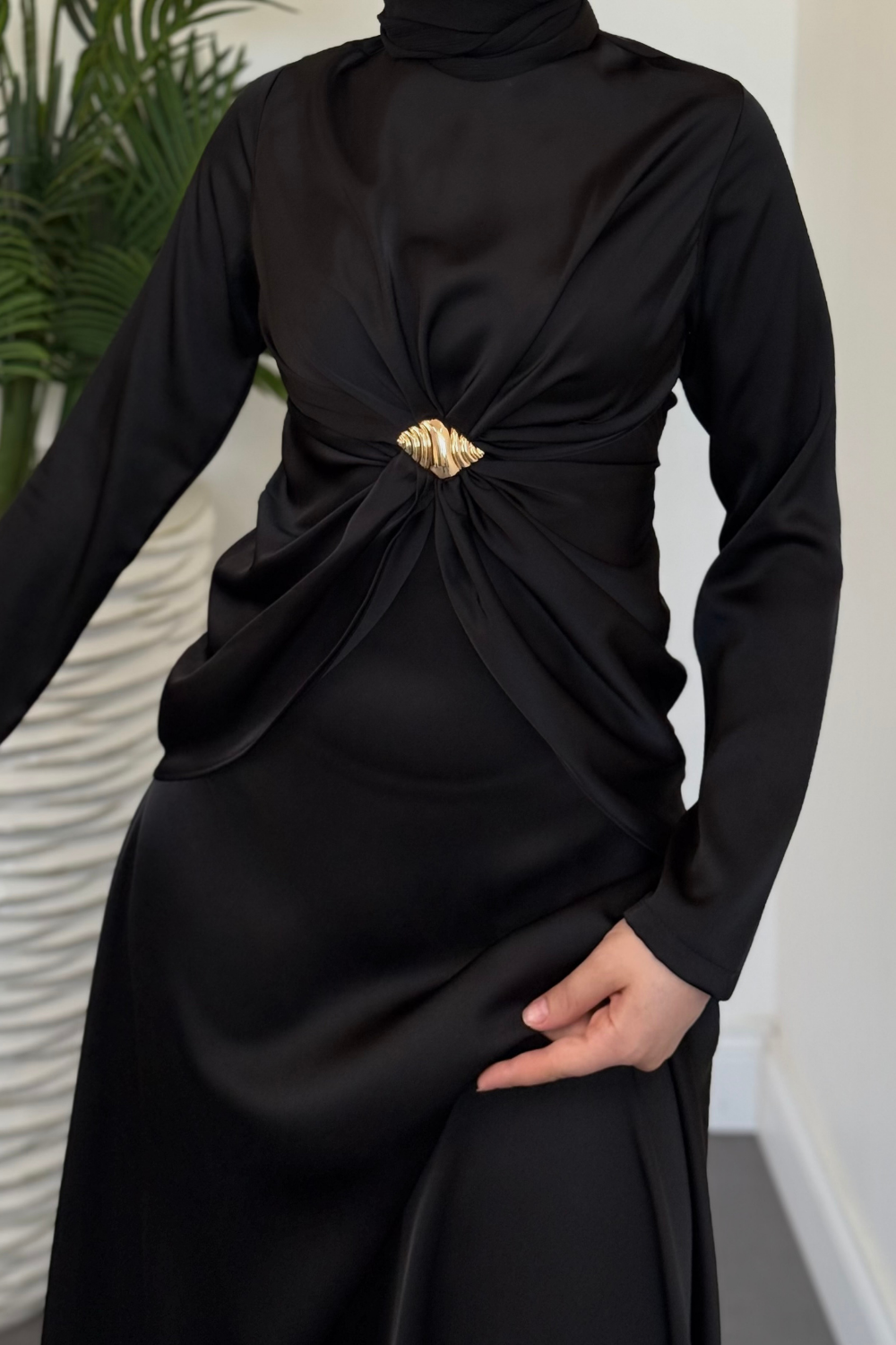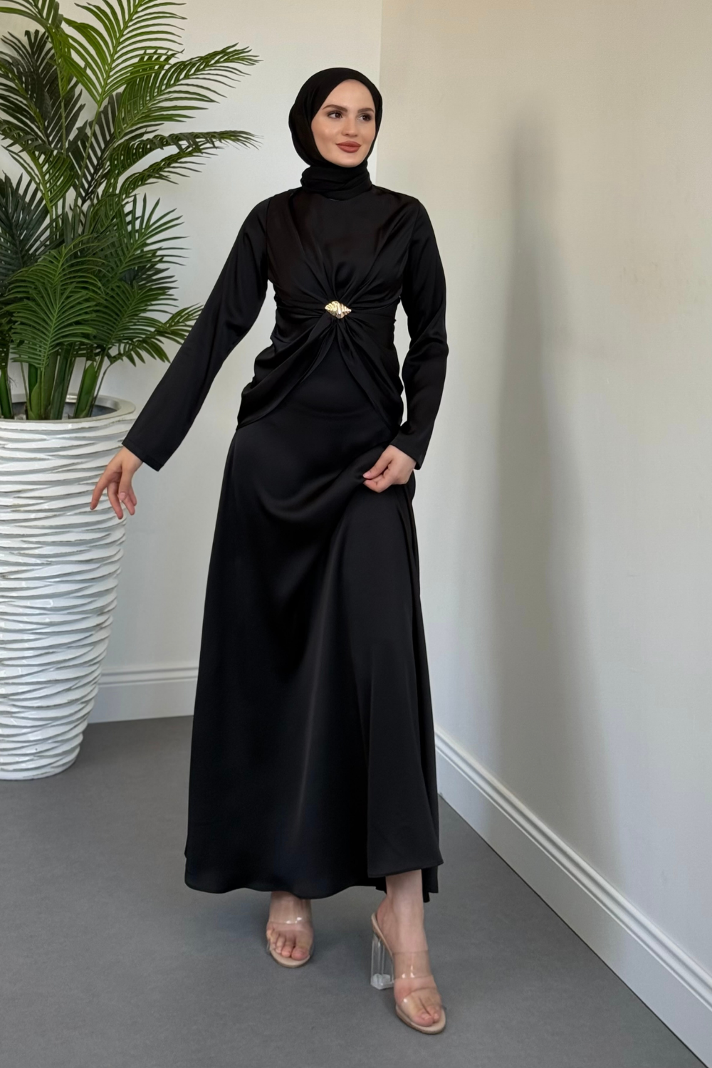 Naree Önden Tokalı Saten Abiye Siyah