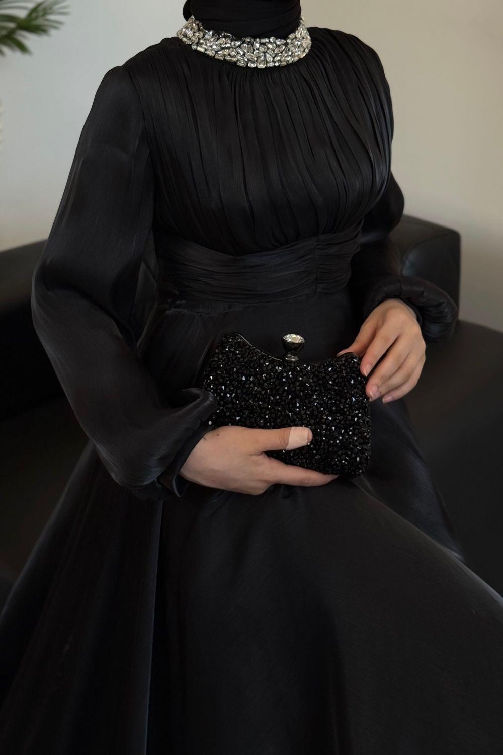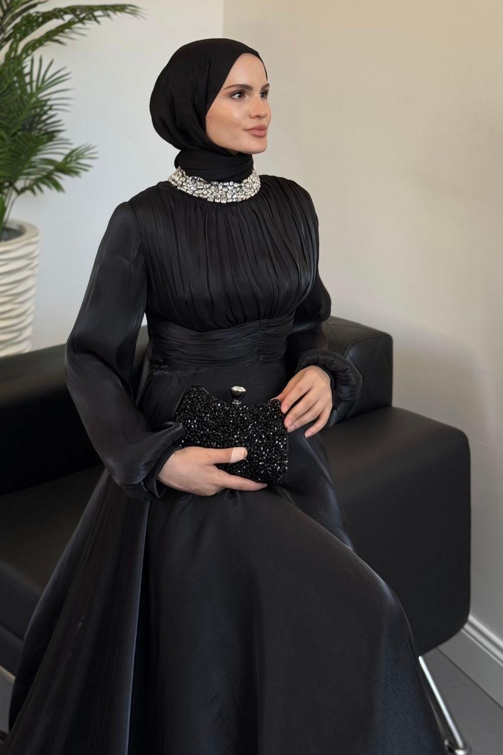 Talya Boynu Taşlı Abiye Siyah