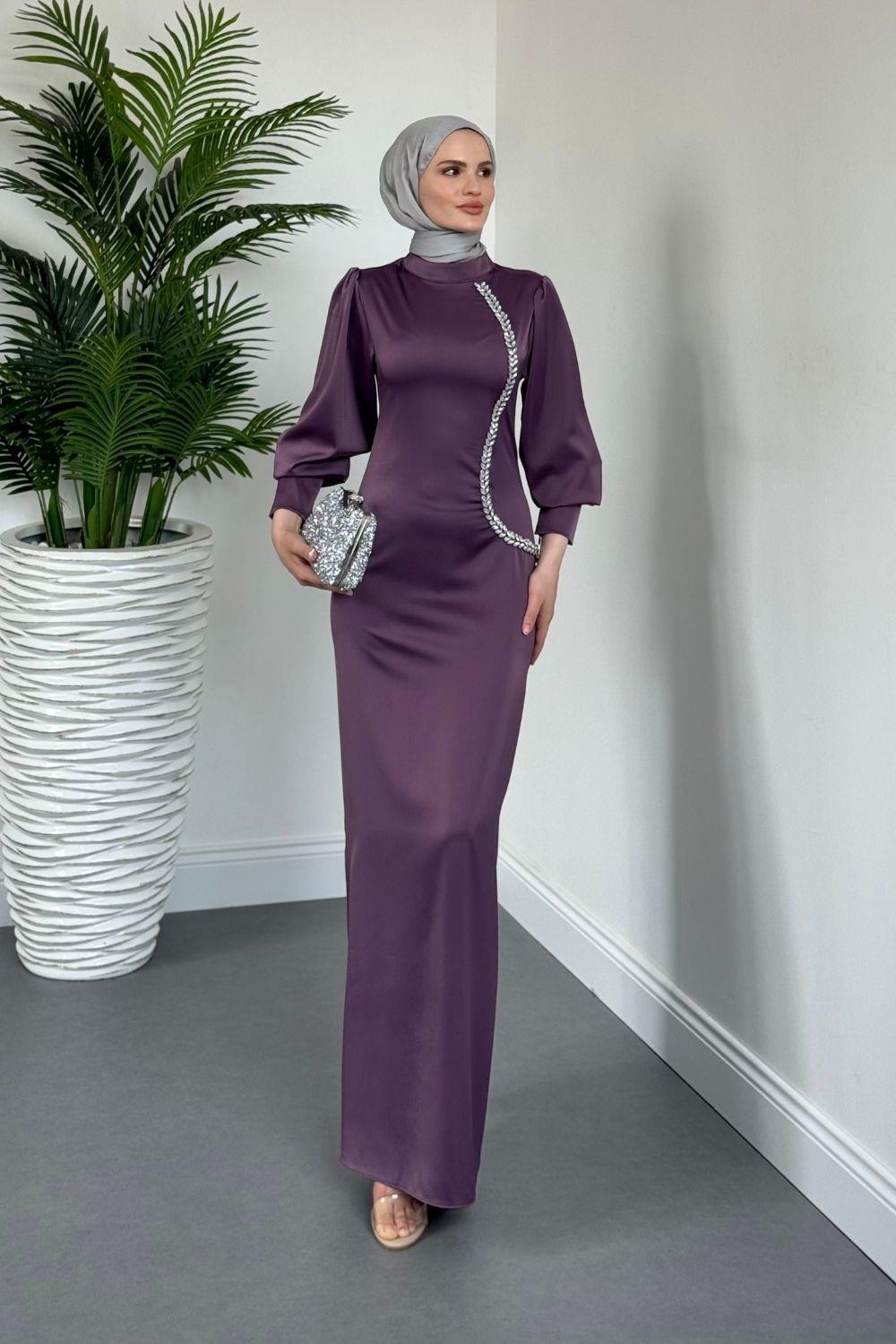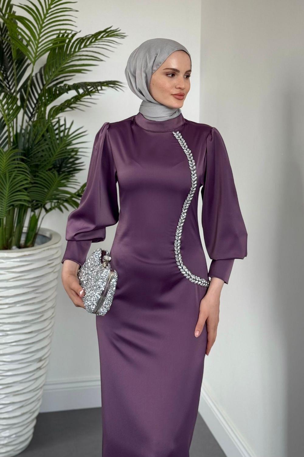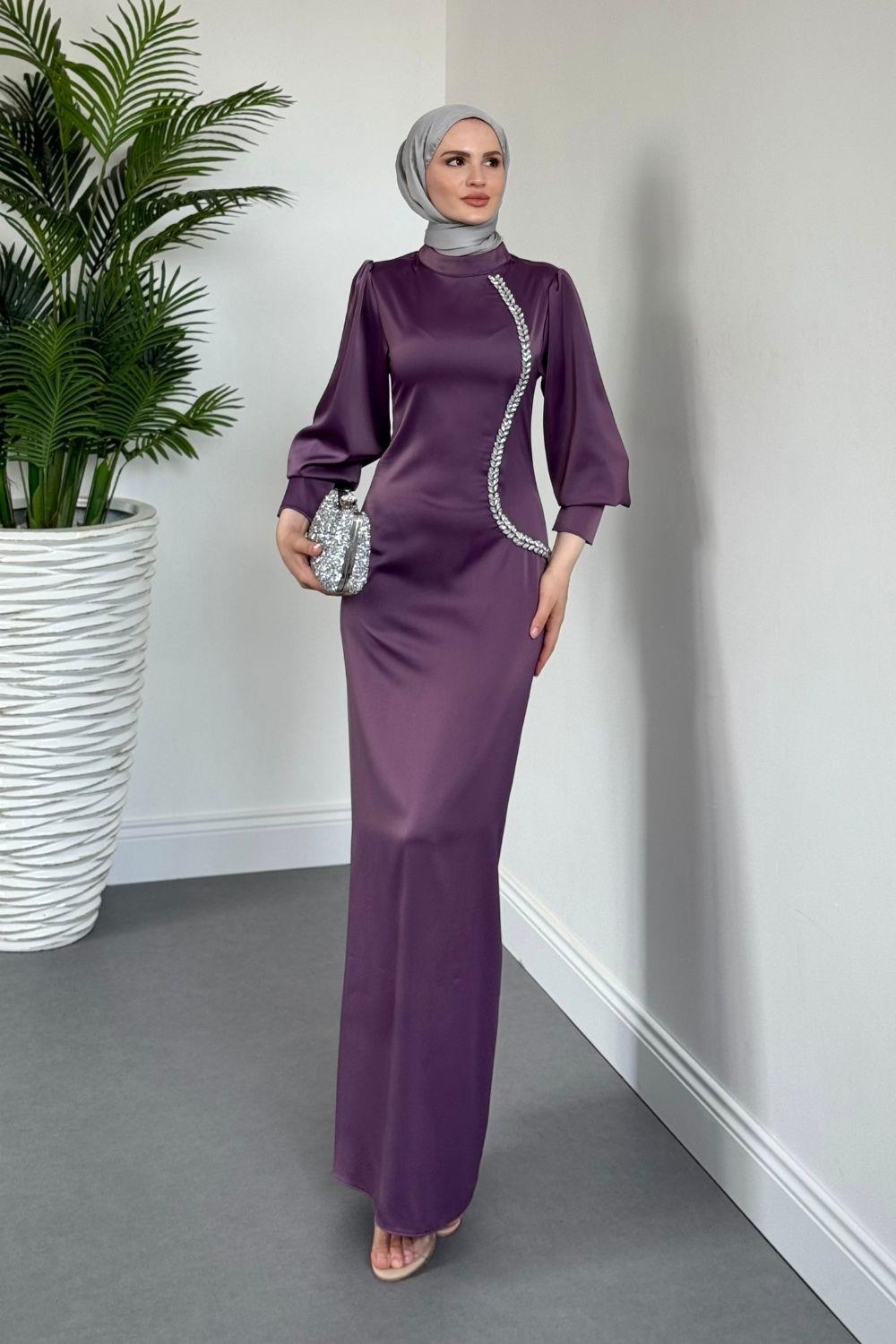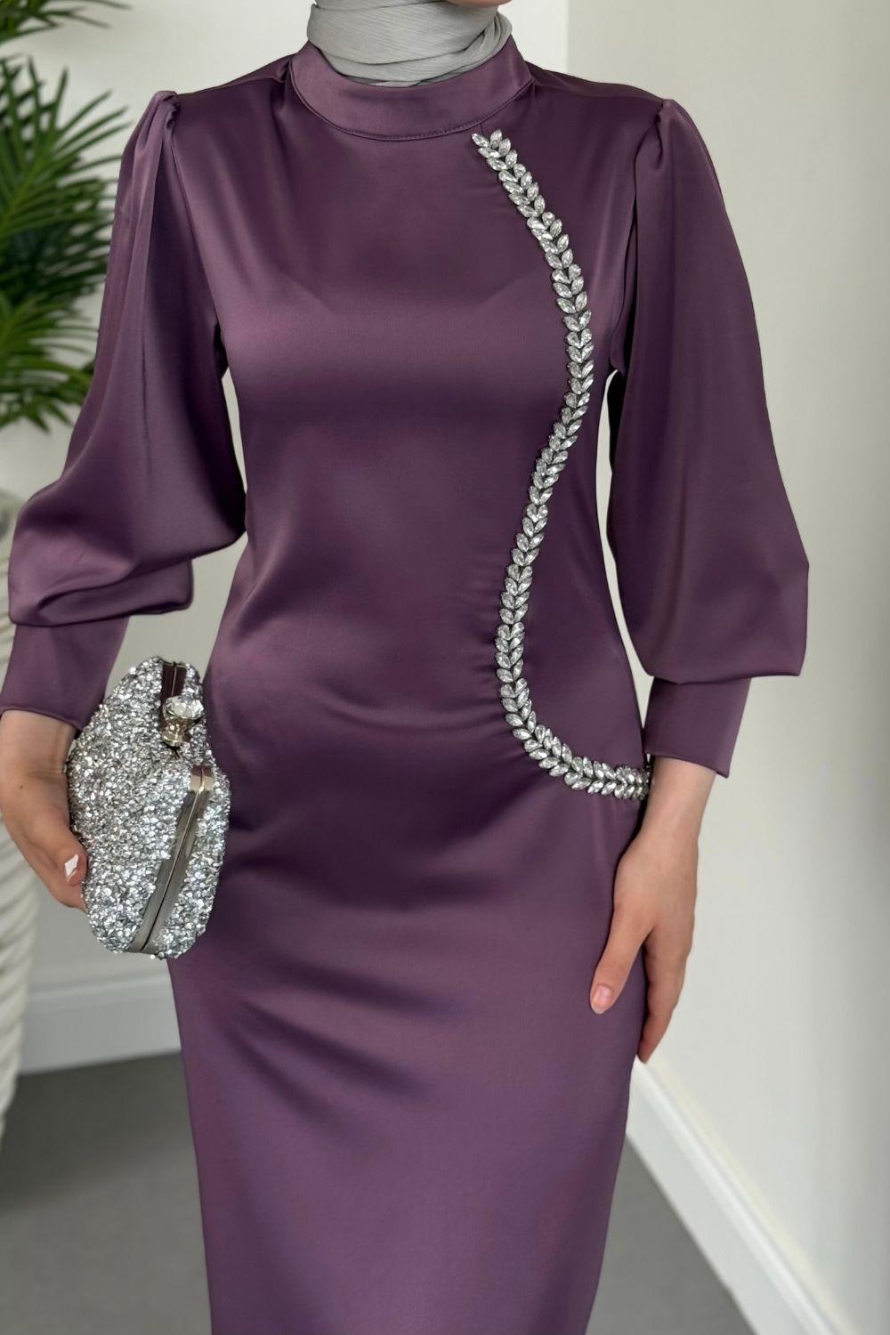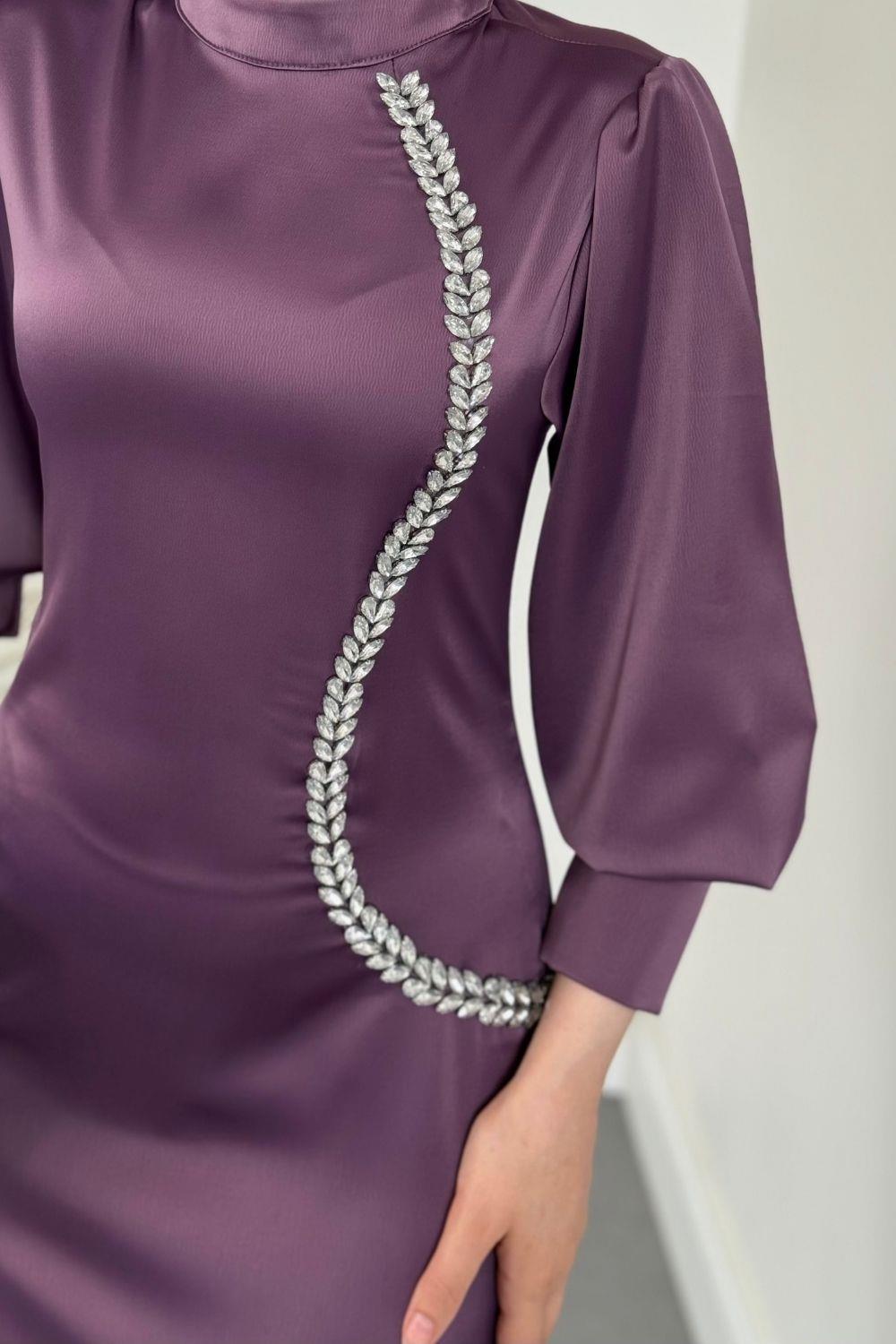 Nigina Yandan Taşlı Kalem Abiye Lila