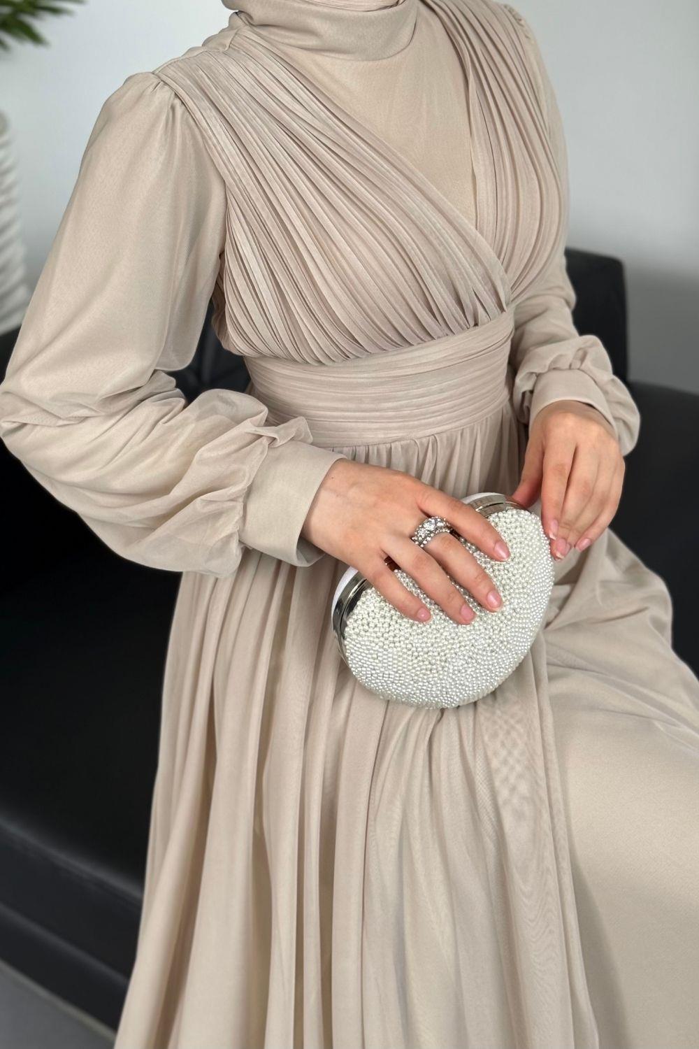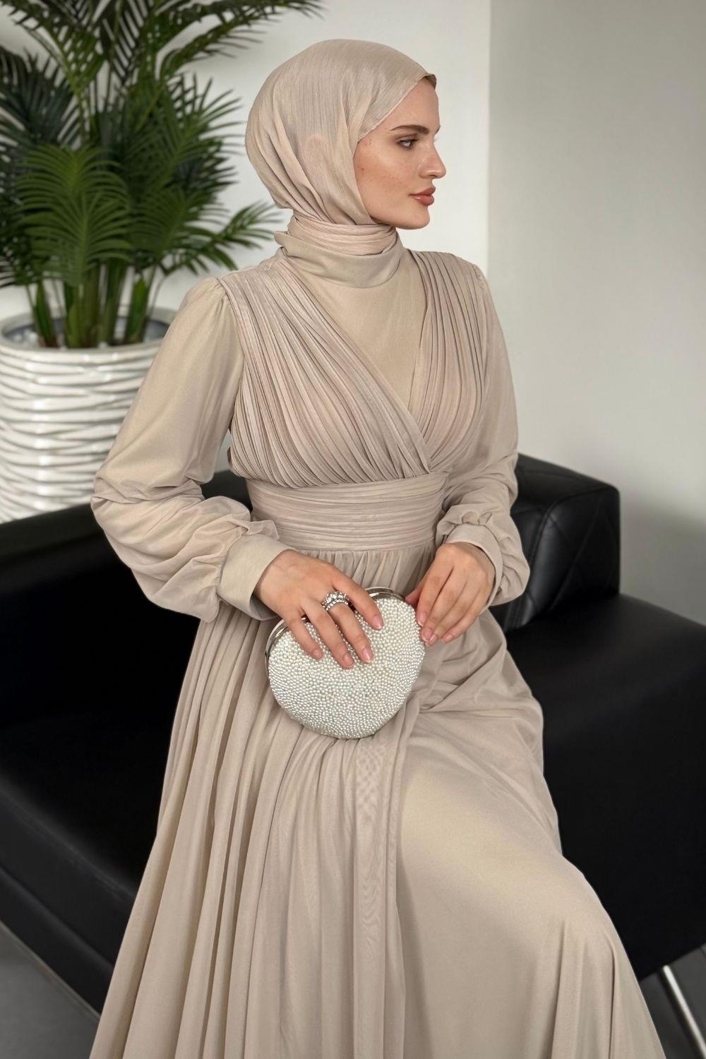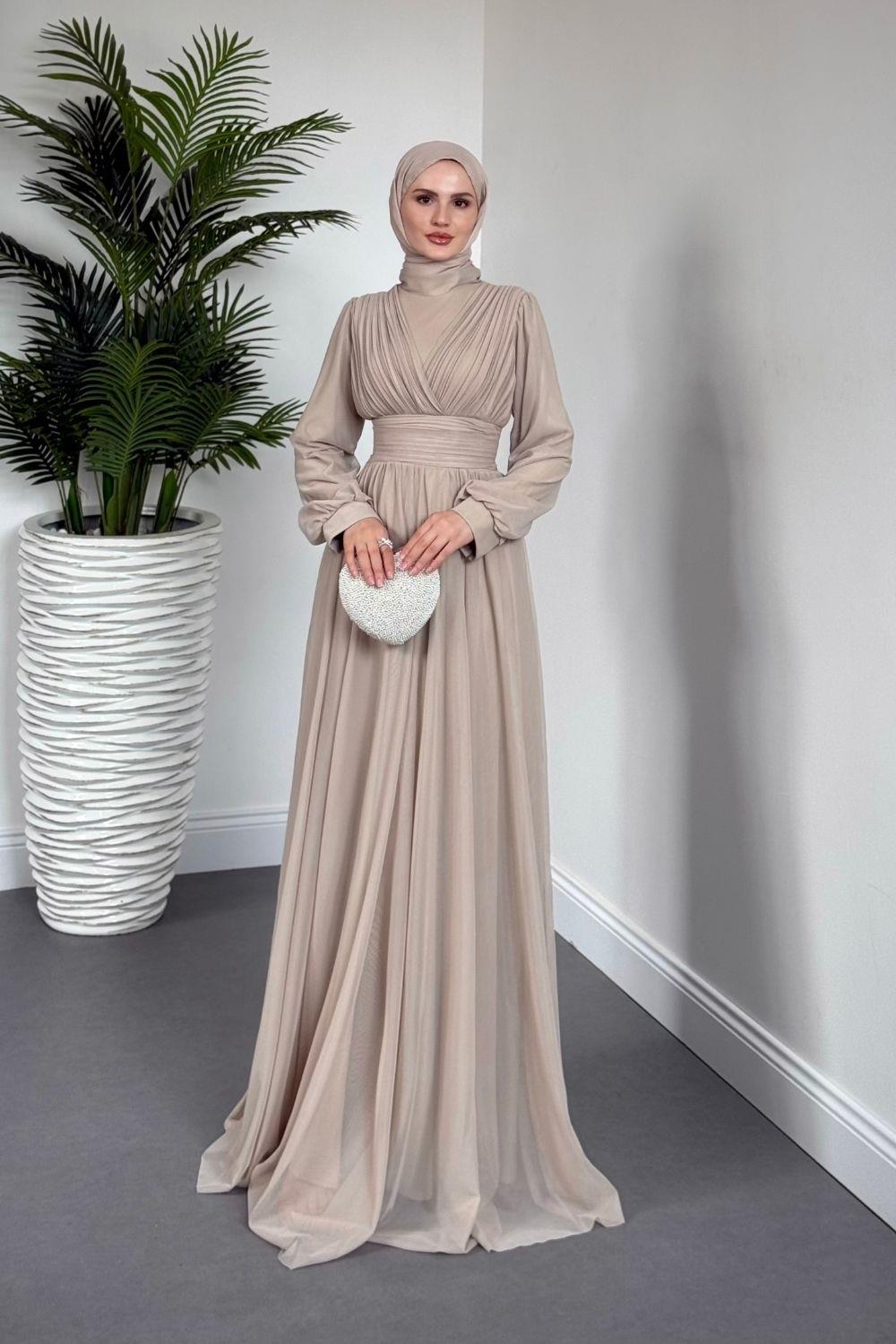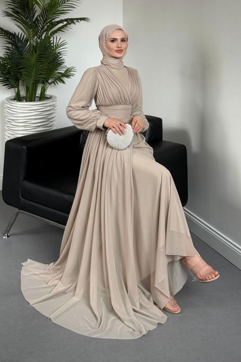 Alessi Beli Drapeli Tül Abiye Sütlü Kahve