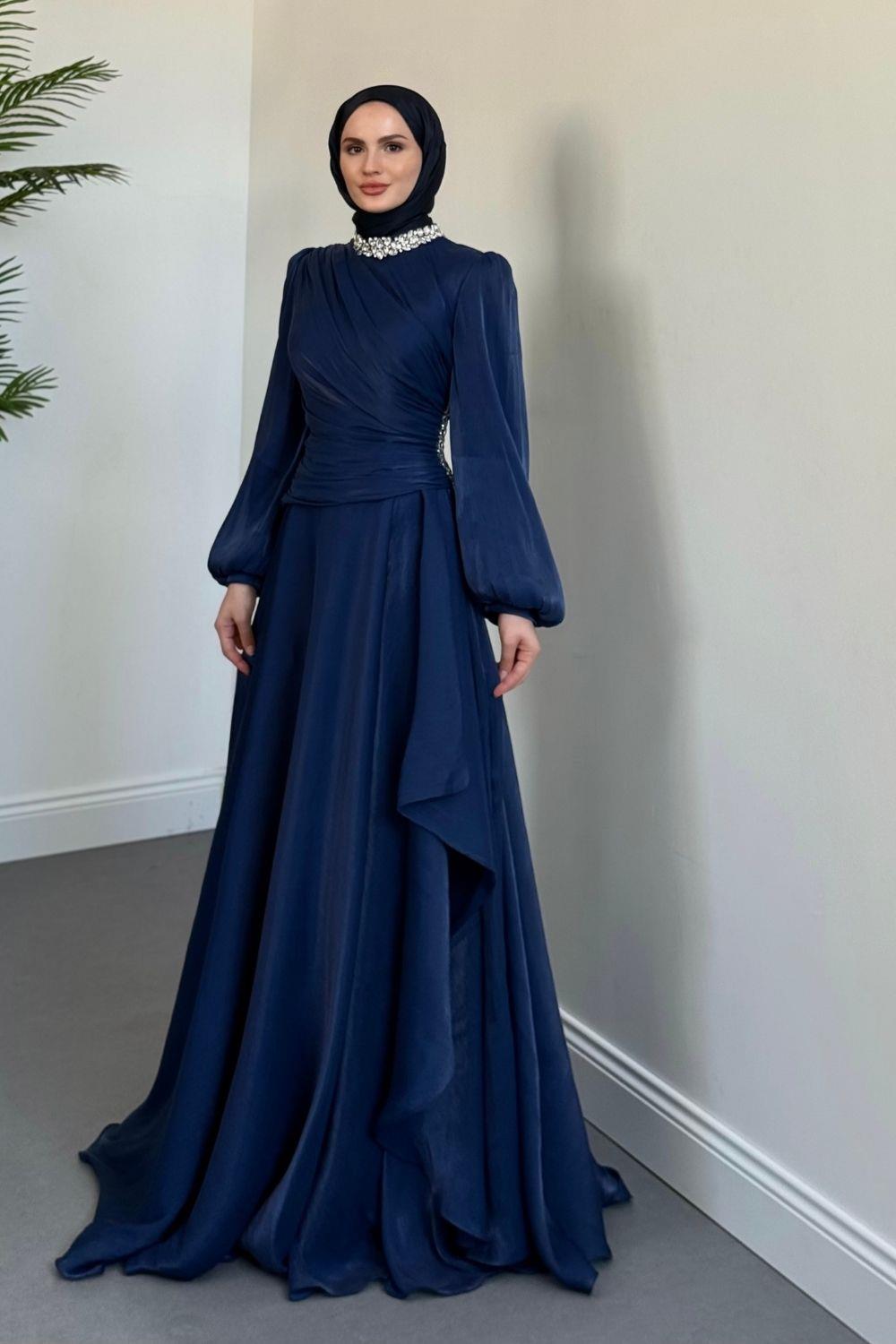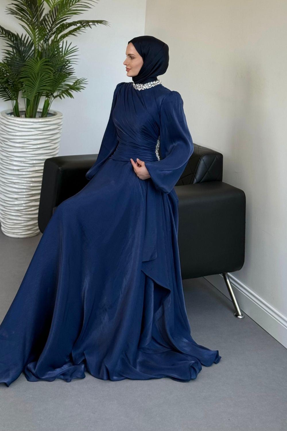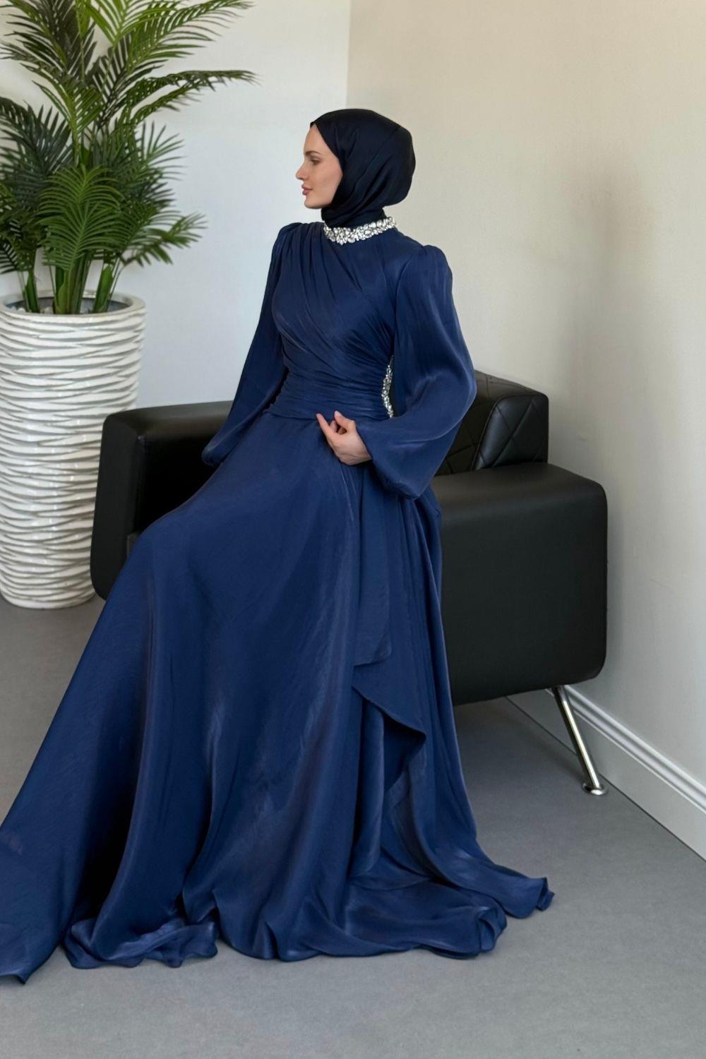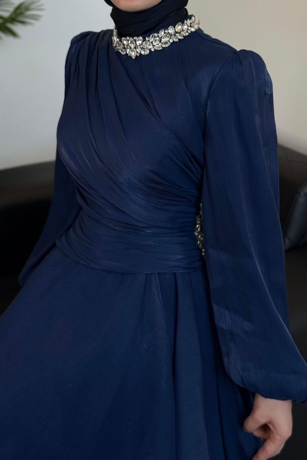 Kylea Yandan Taşlı Jan Jan Abiye Lacivert