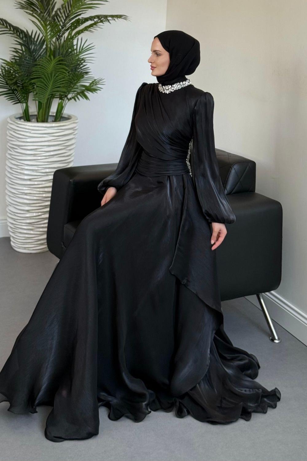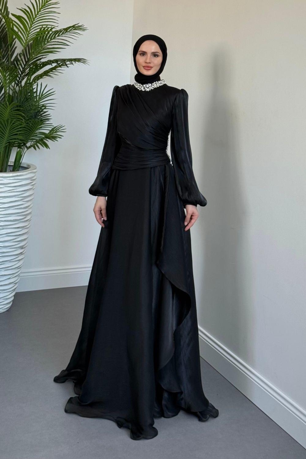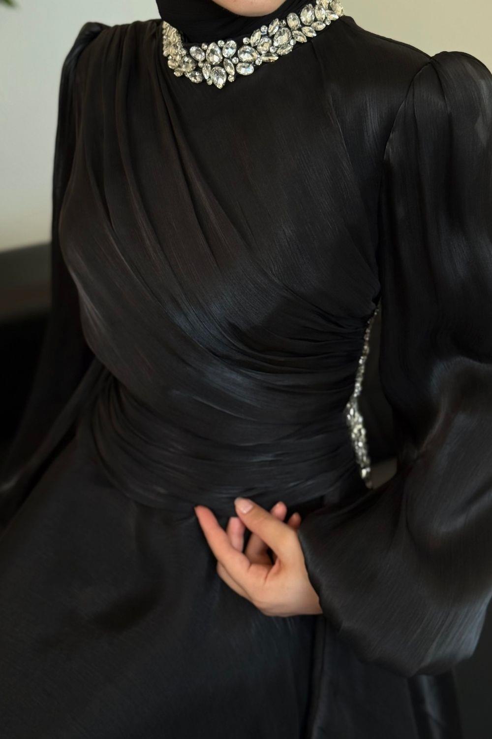 Kylea Yandan Taşlı Jan Jan Abiye Siyah
