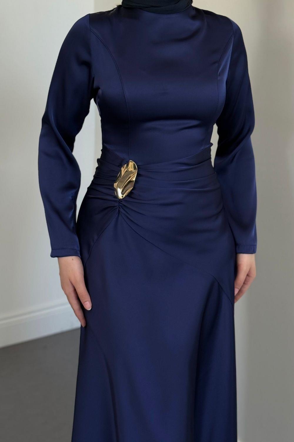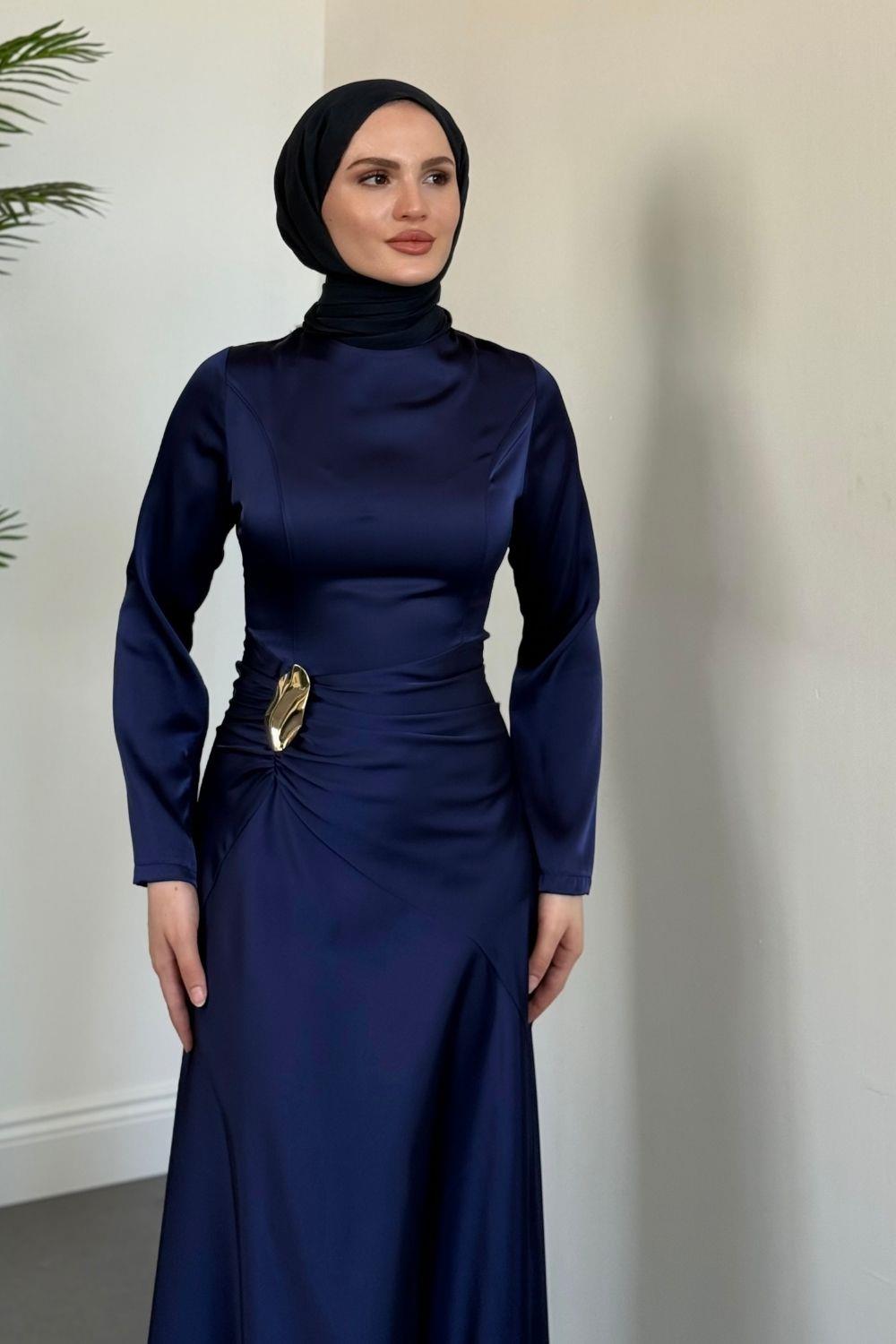 Siena Yandan Bağlamalı Saten Abiye Lacivert(TOKASIZDIR)