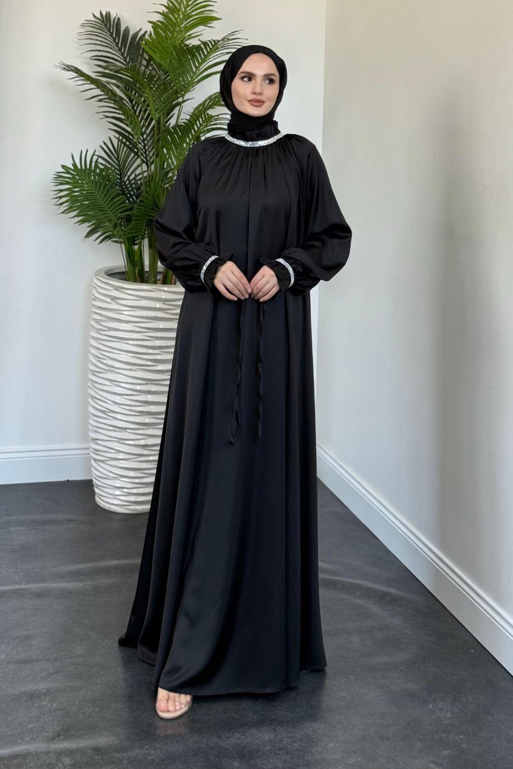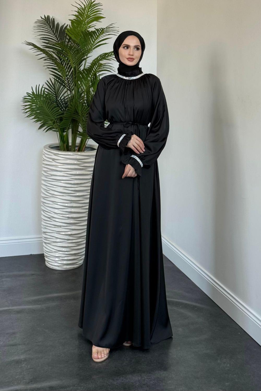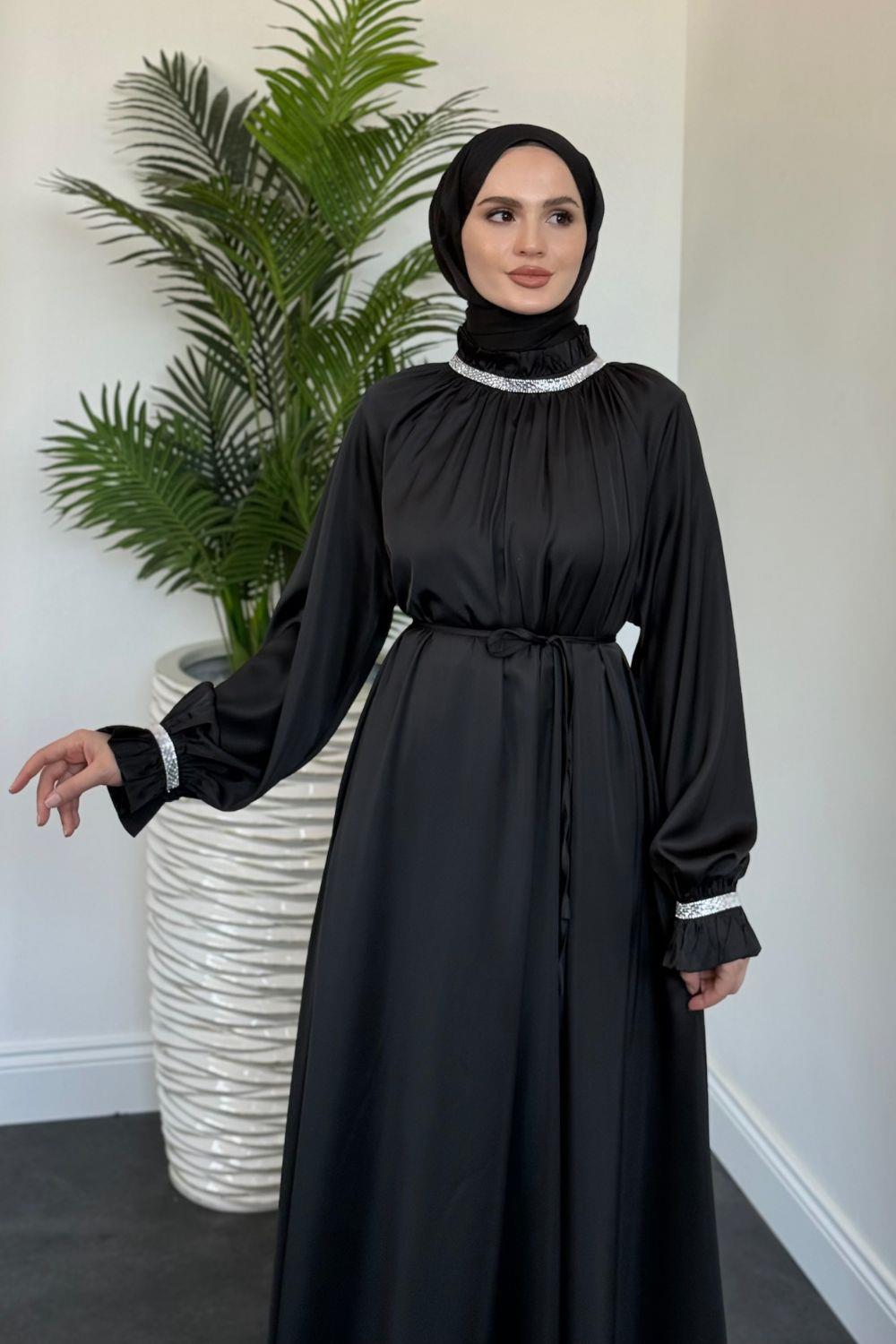 Rozie Kolları Ve Boynu Taşlı Abiye Siyah