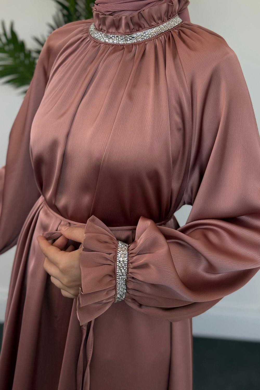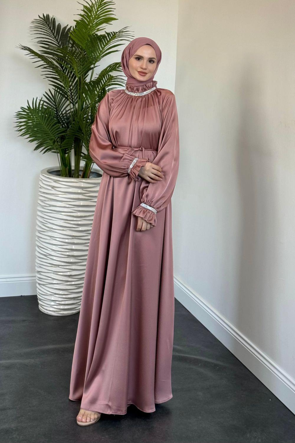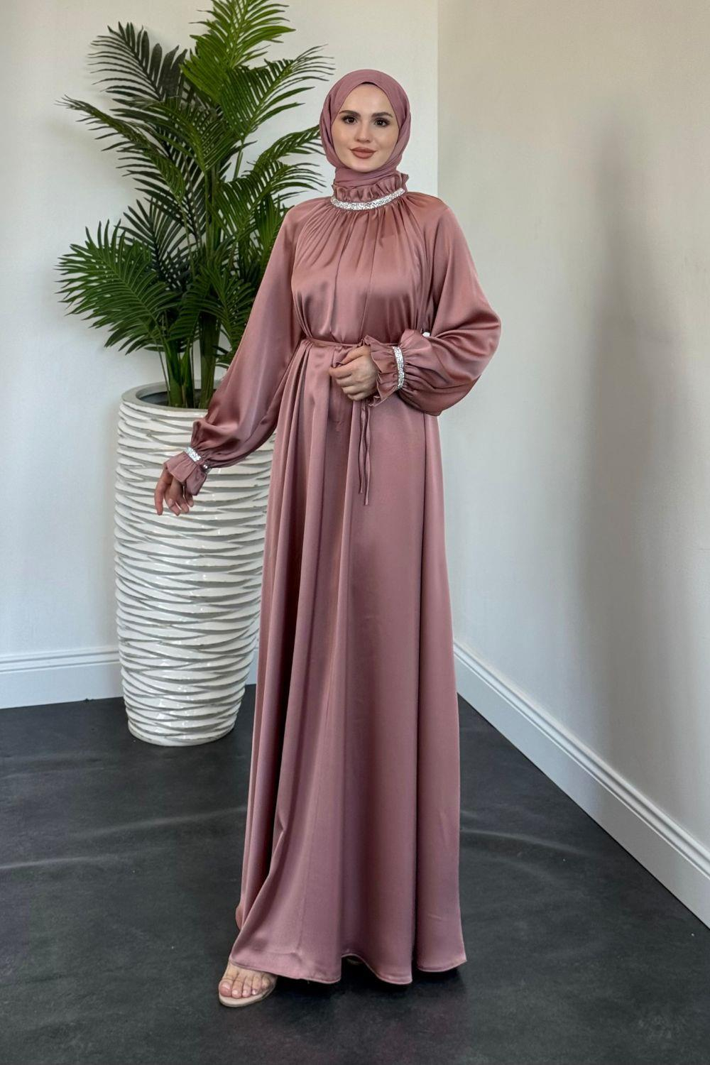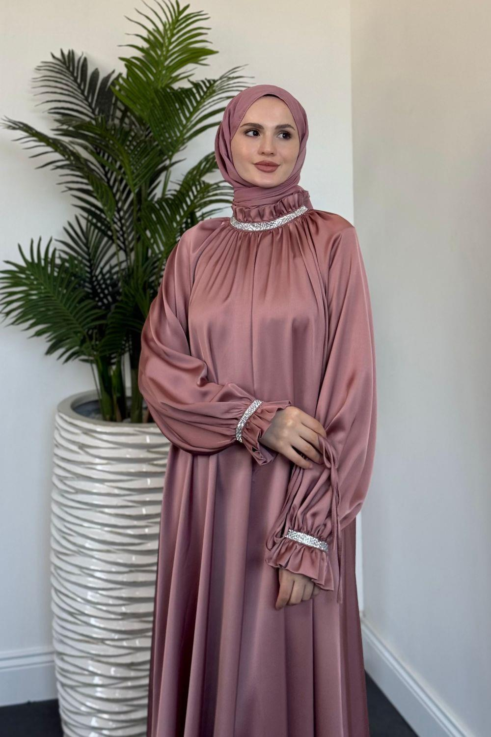 Rozie Kolları Ve Boynu Taşlı Abiye Gül Kurusu