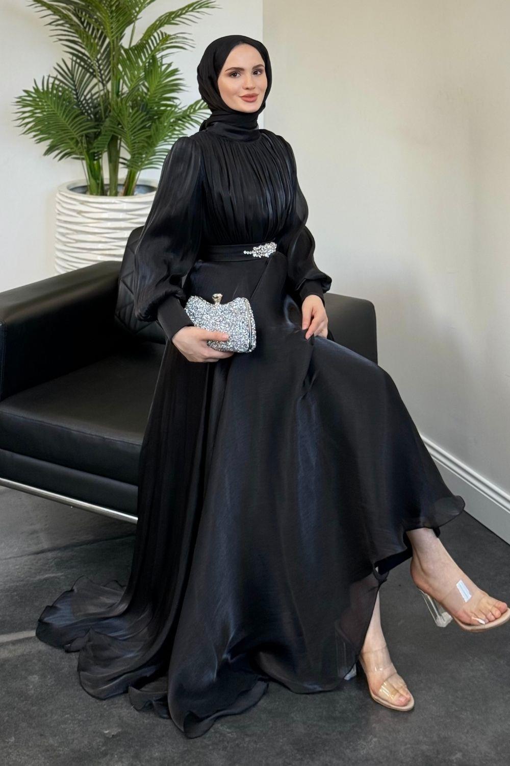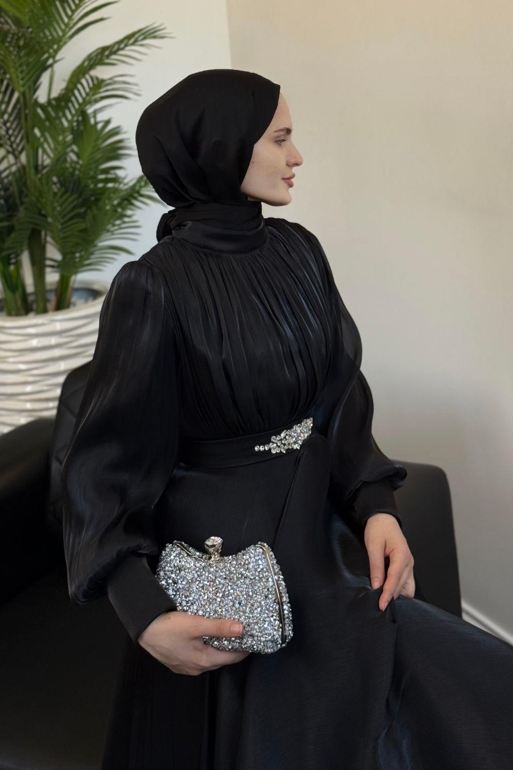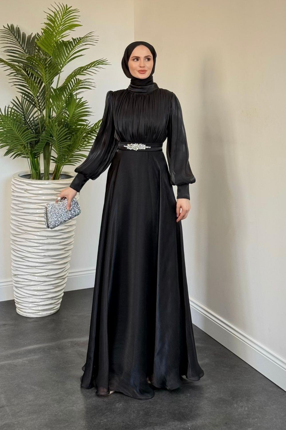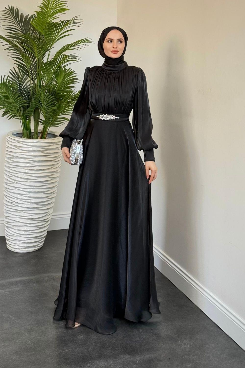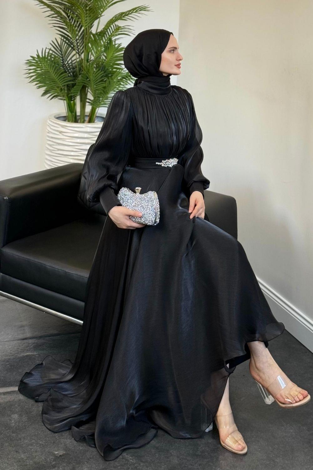 Molinna Beli Taşlı Janjan Abiye Siyah