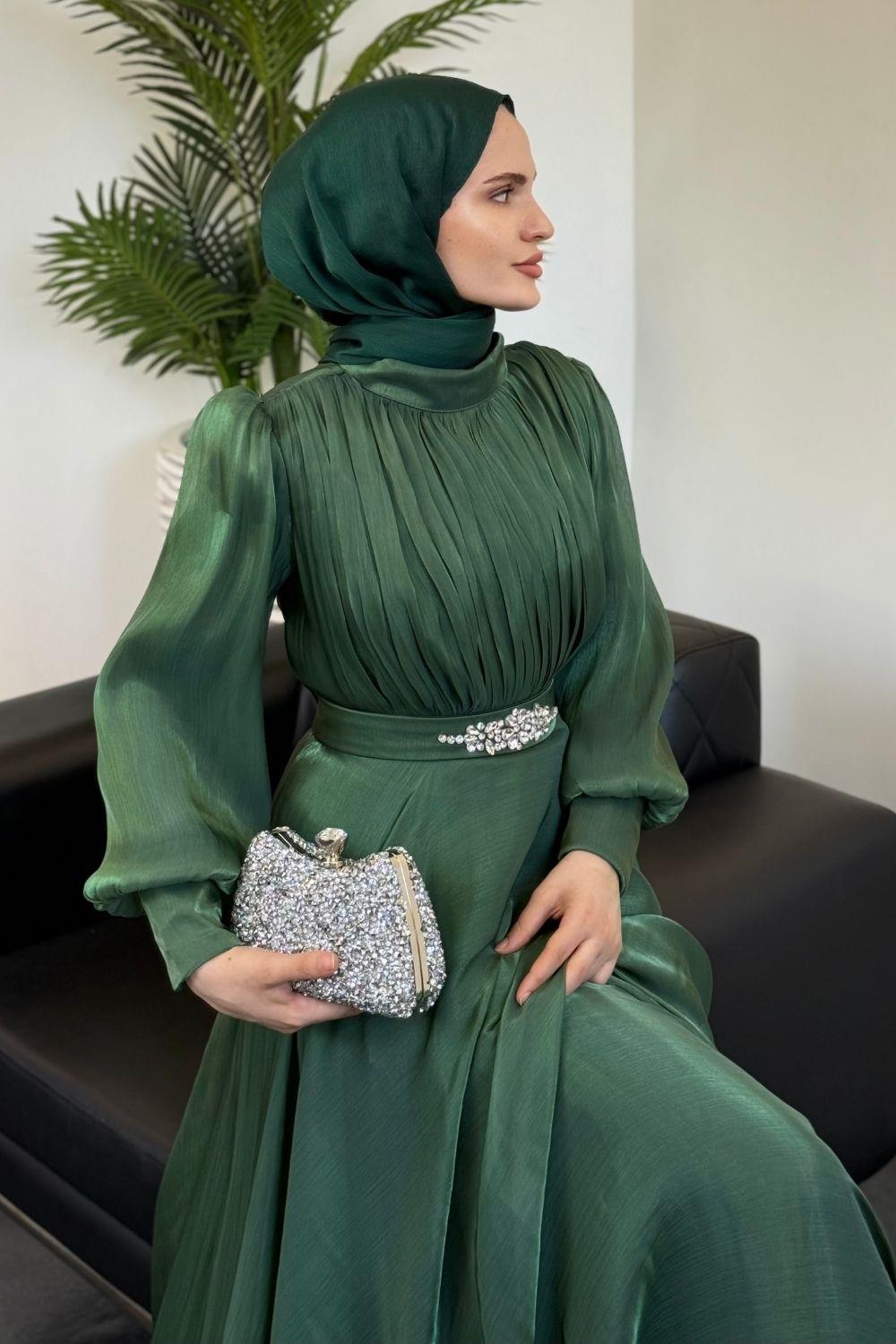 Molinna Beli Taşlı Janjan Abiye Zümrüt