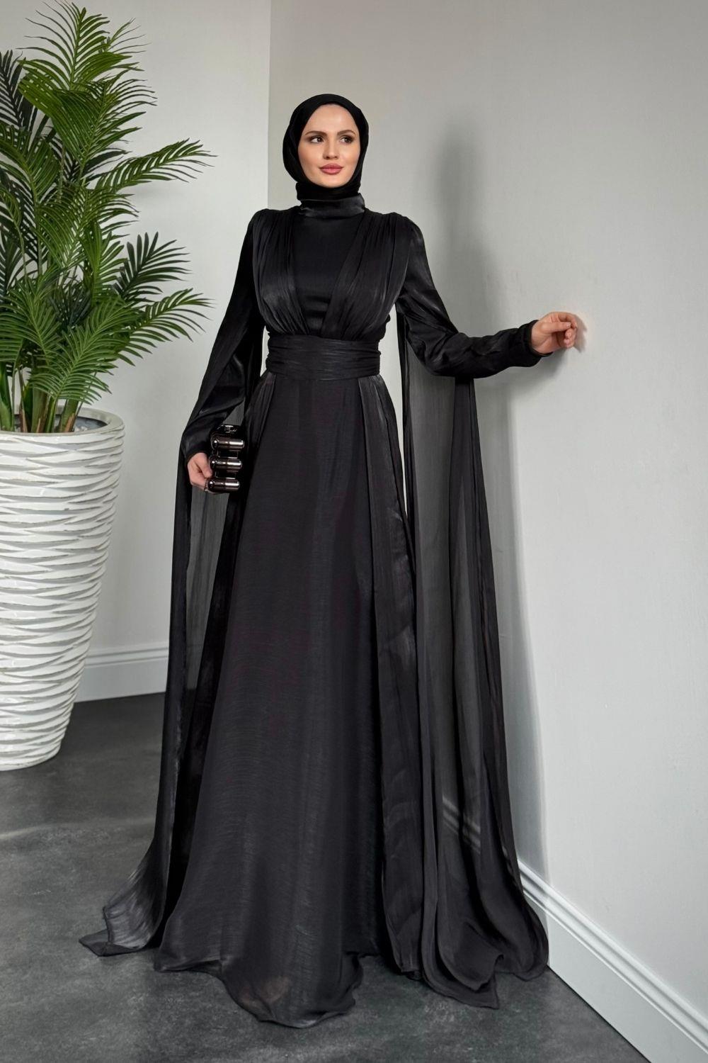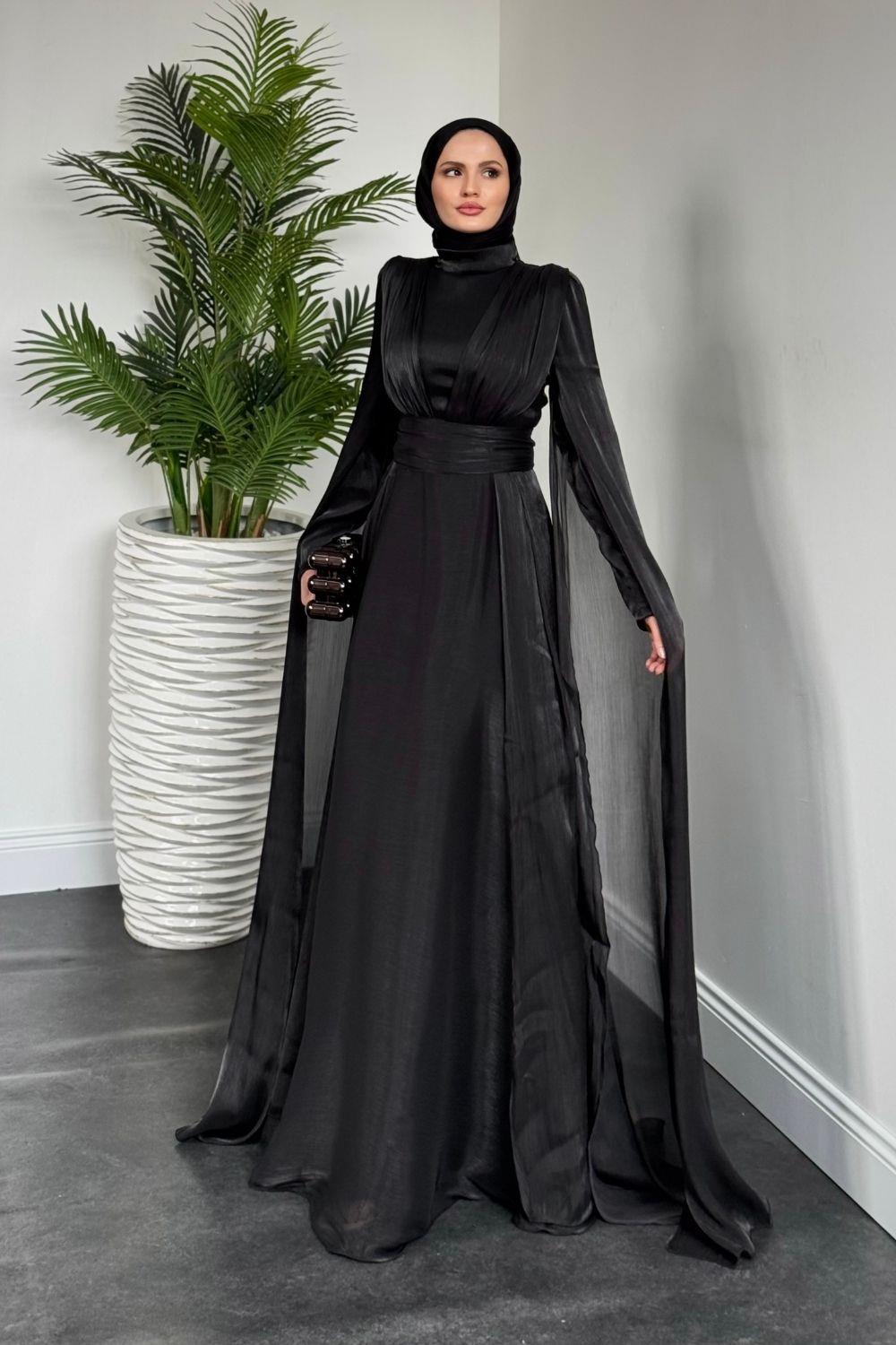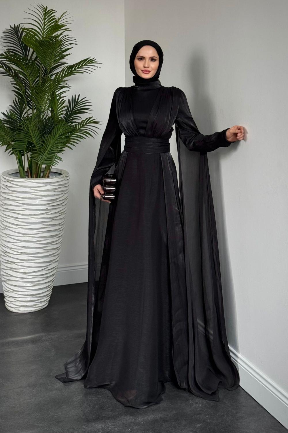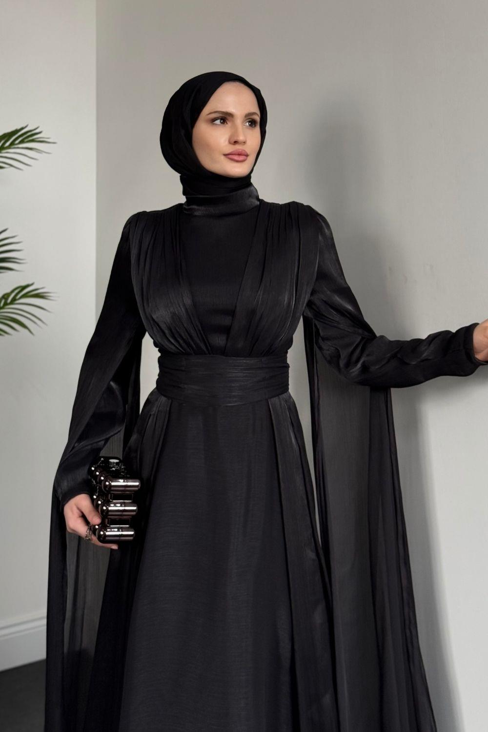 Bierne Pelerinli Janjan Abiye Siyah(KEMERSİZDİR)