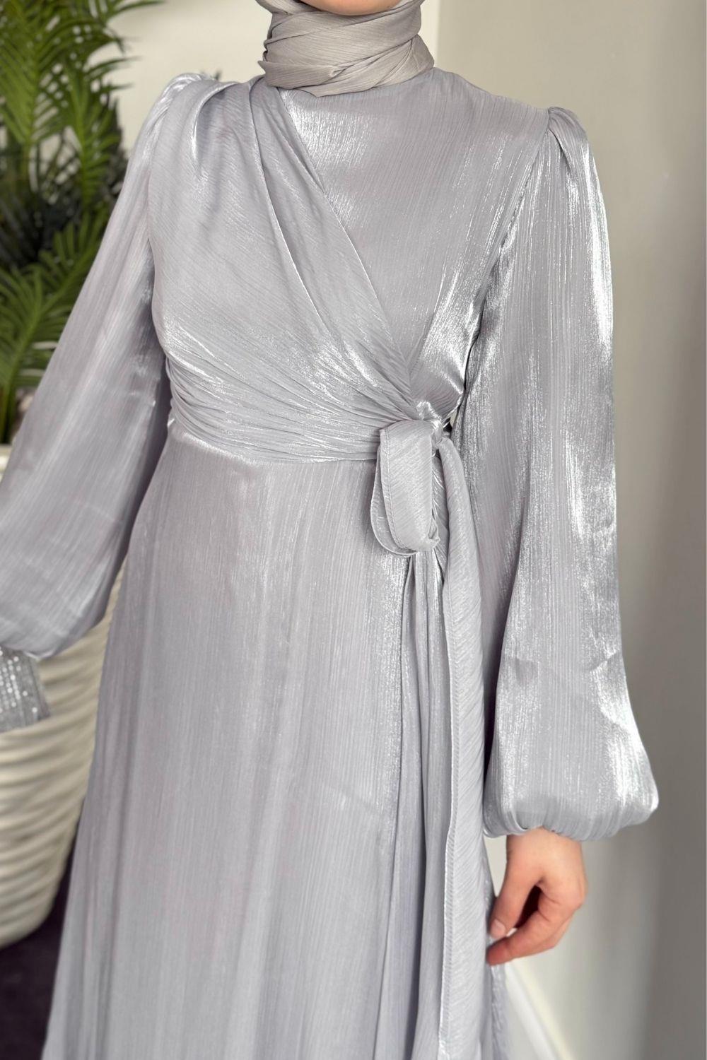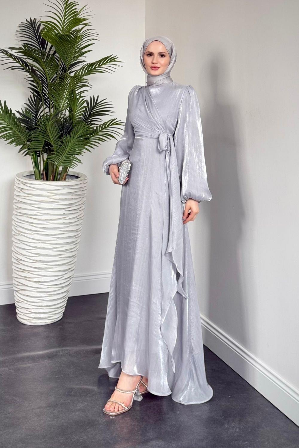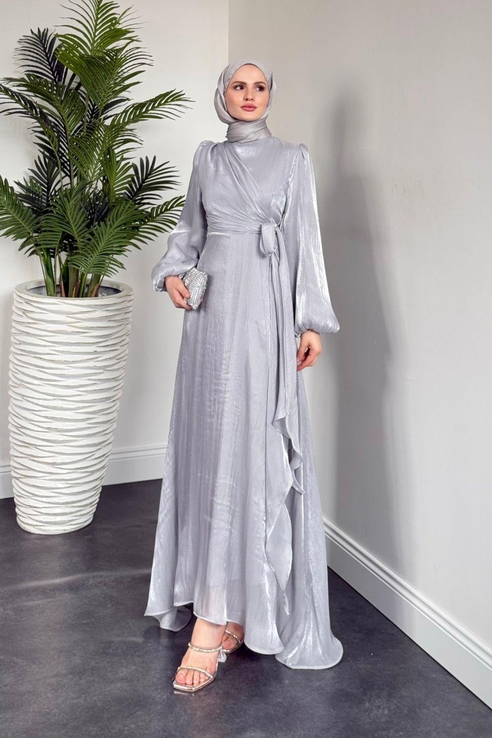 Celia Yandan Bağlamalı Janjan Abiye Gri