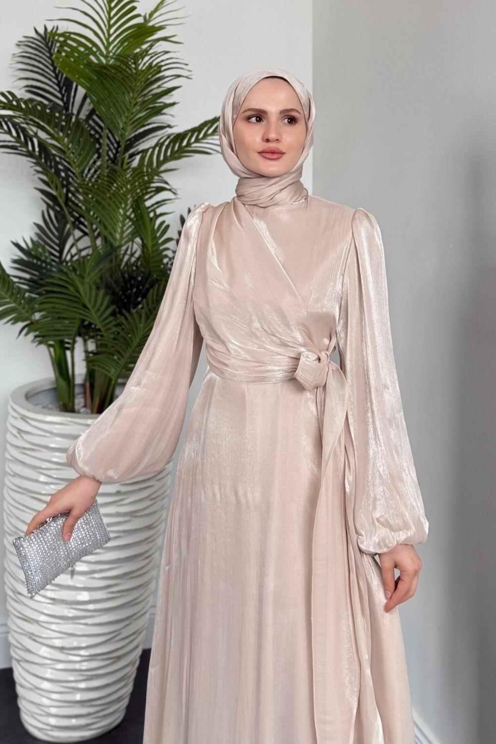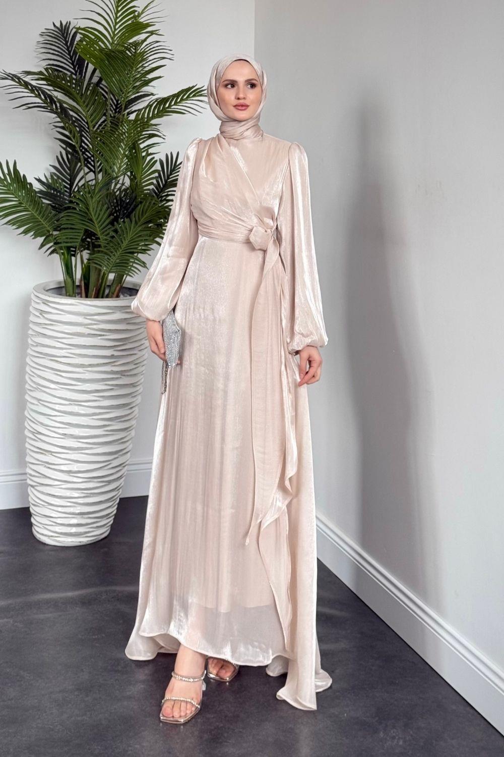 Celia Yandan Bağlamalı Janjan Abiye Krem