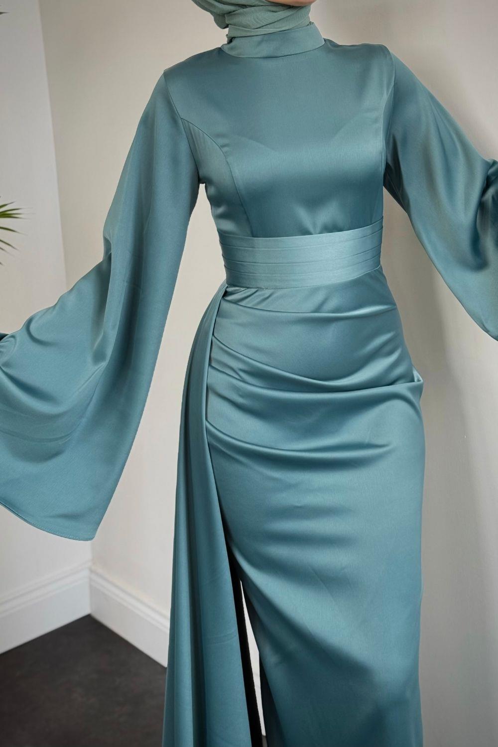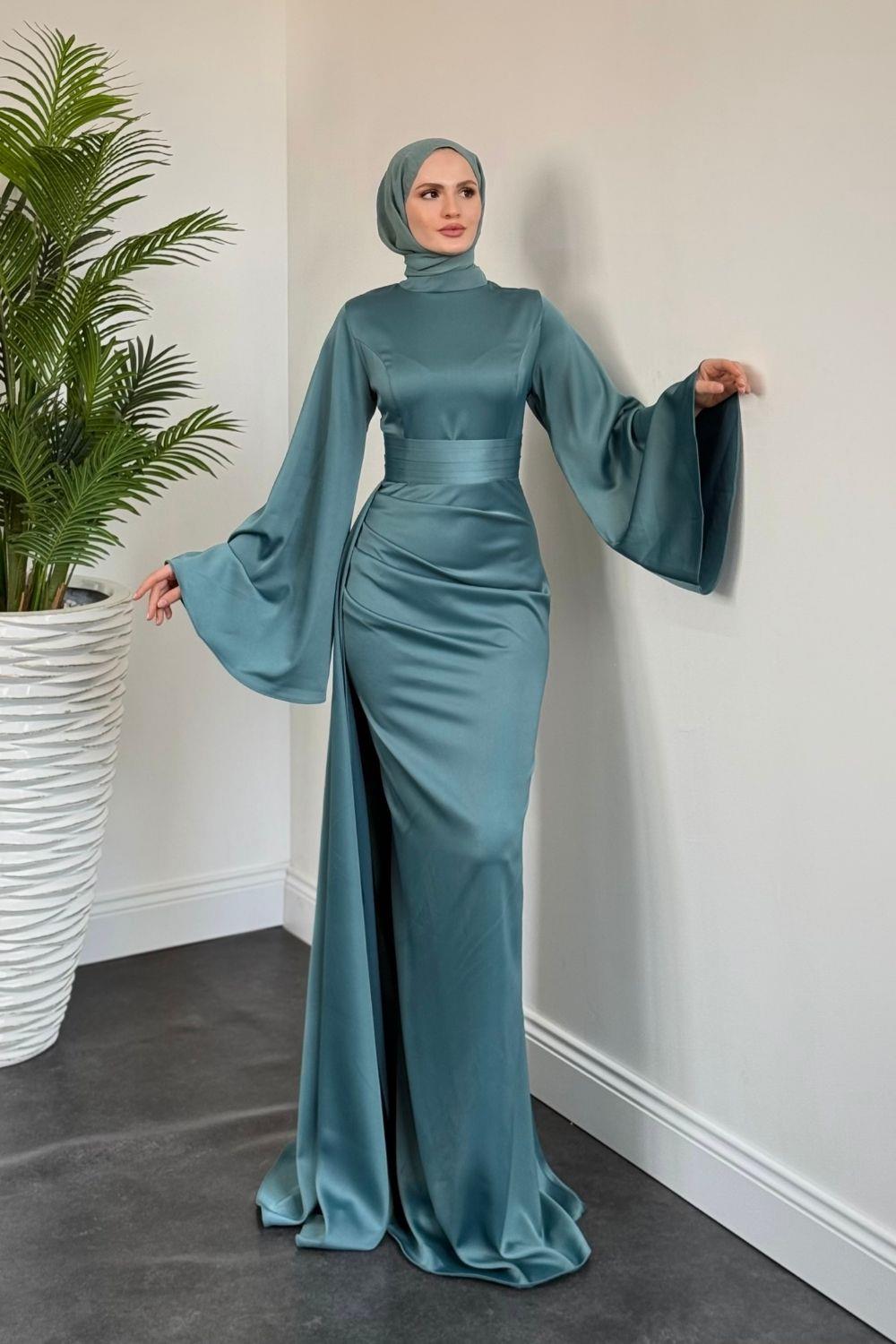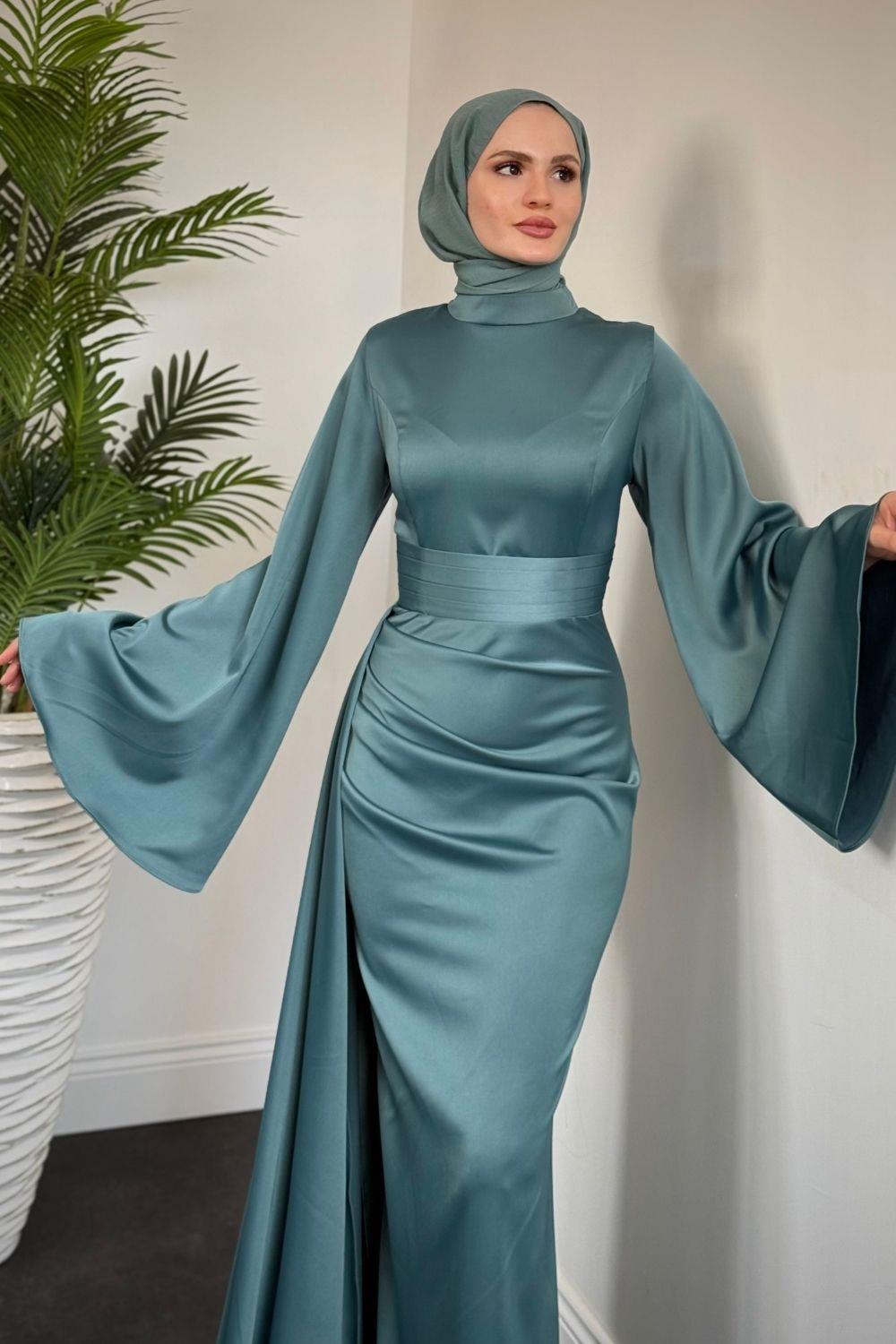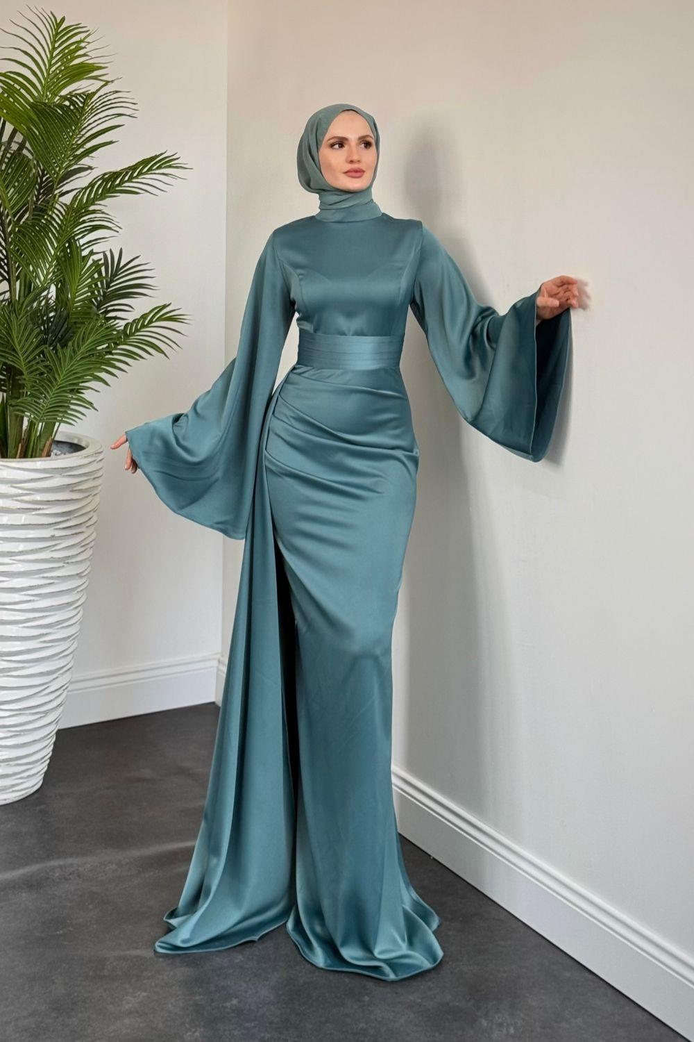 Arabella Pelerinli Saten Balık Abiye Turkuaz