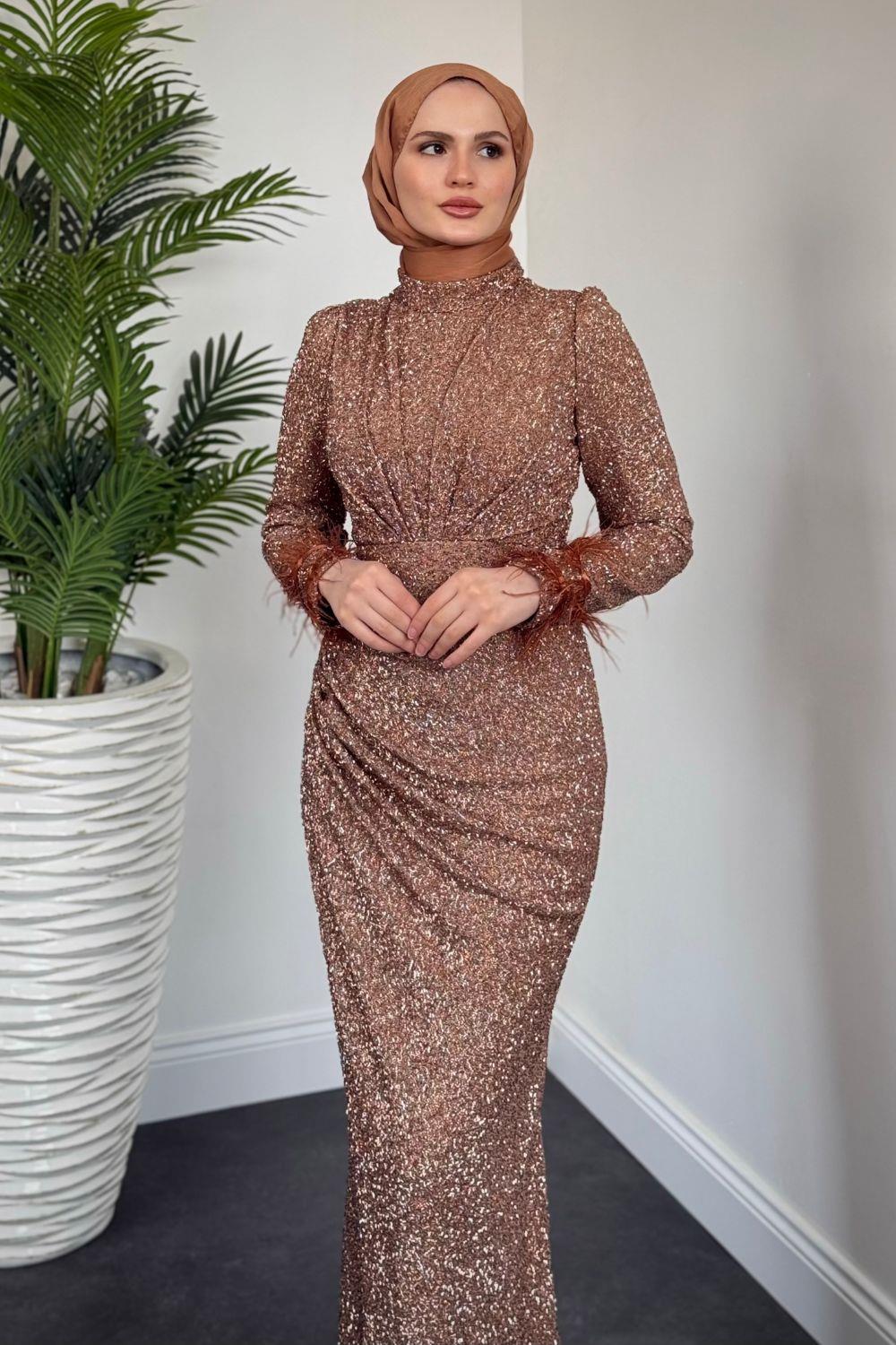 Dina Kuyruklu Taşlı Abiye Gold