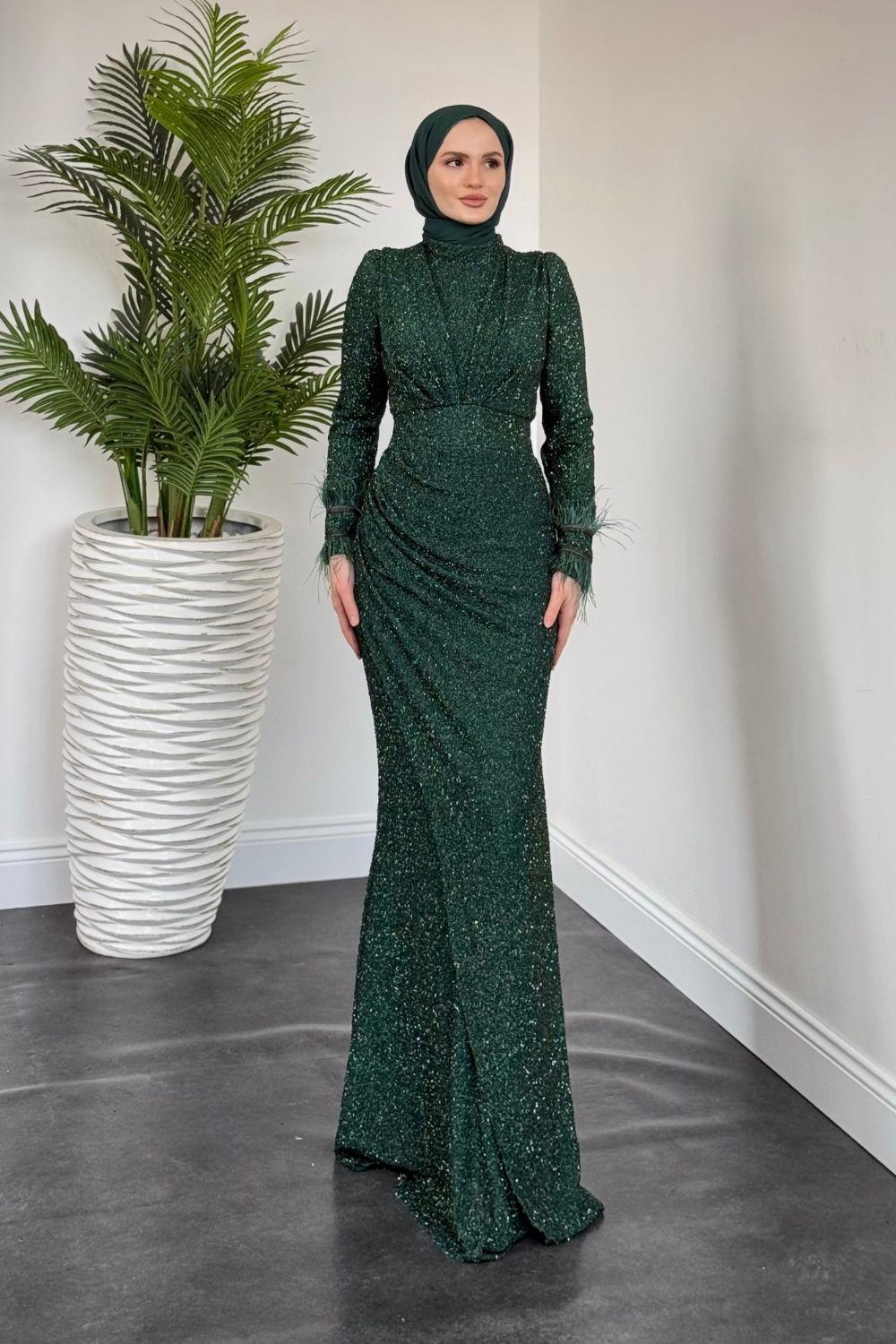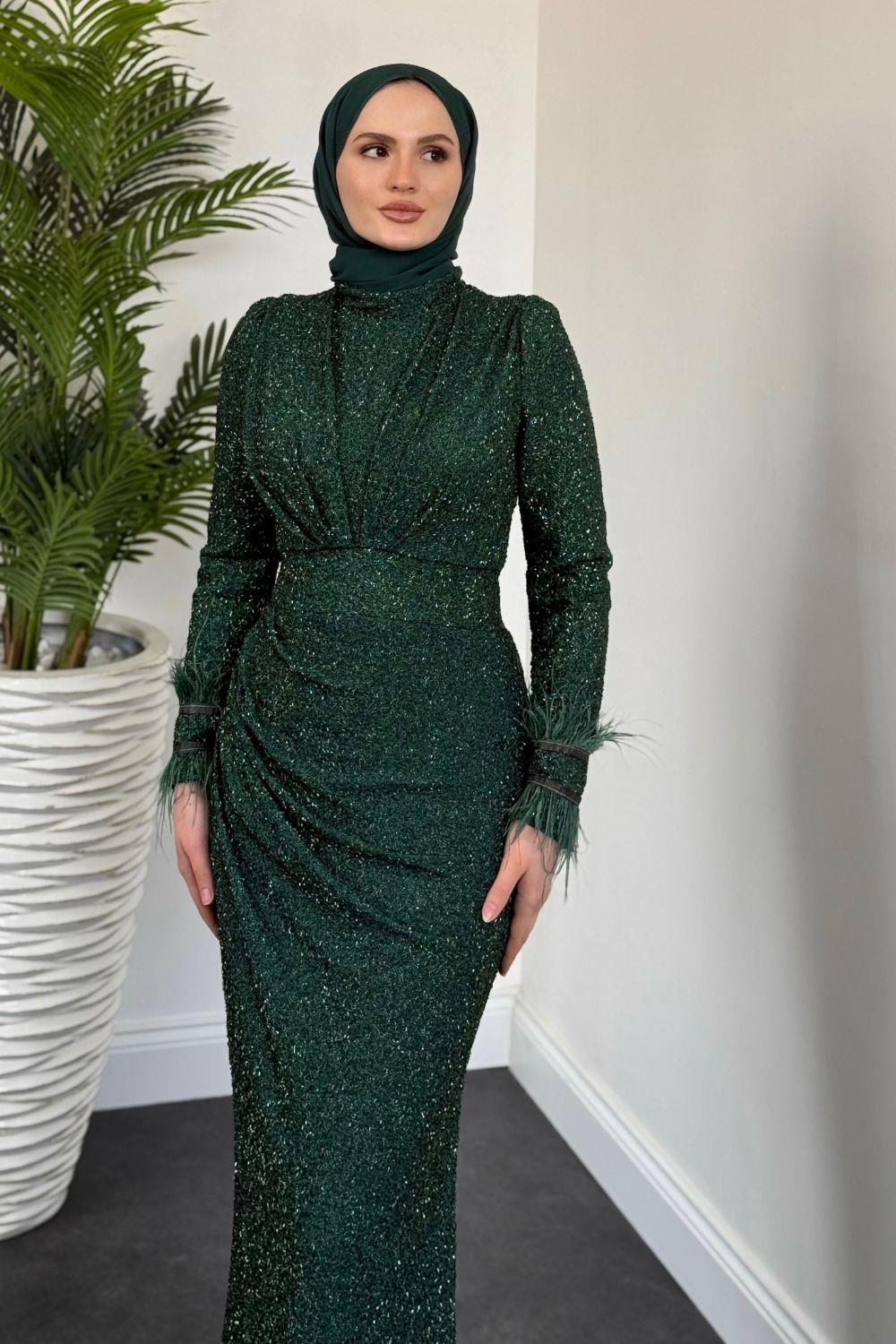 Dina Kuyruklu Taşlı Abiye Zümrüt