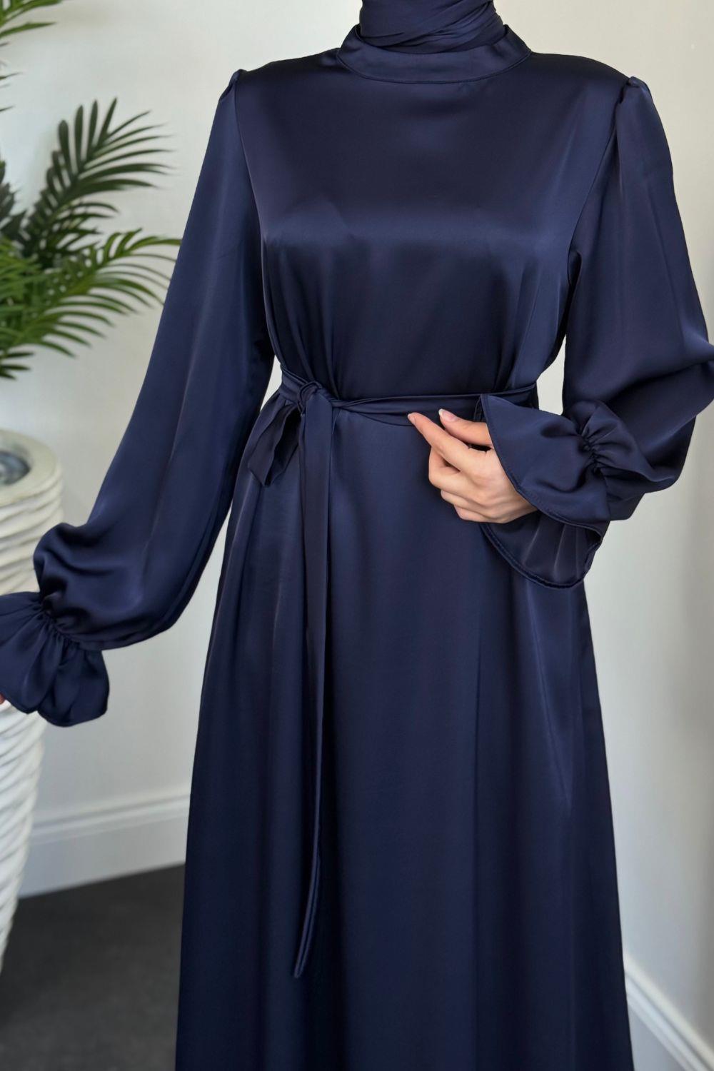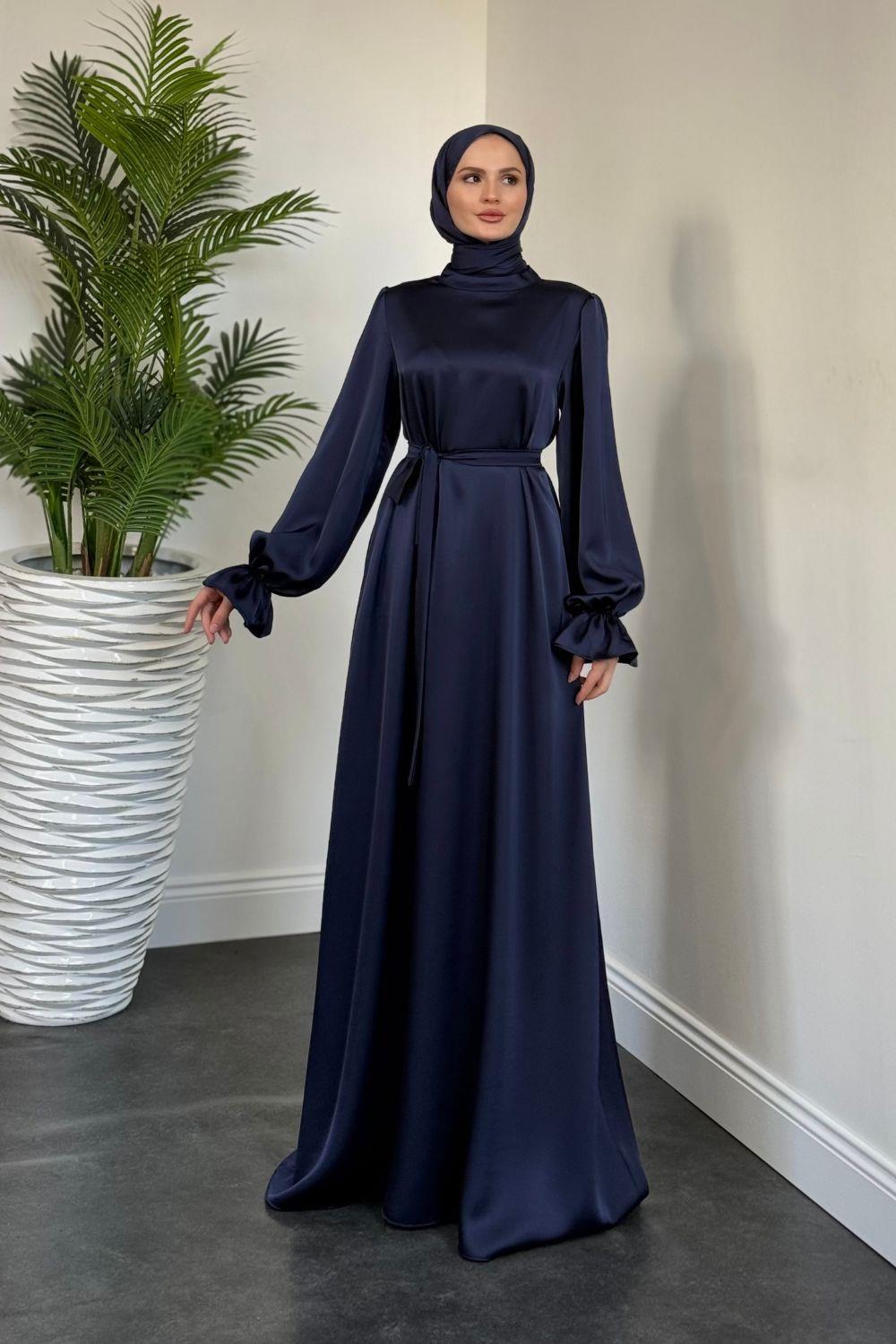 Lady Kolu Fırfır Saten Abiye Lacivert