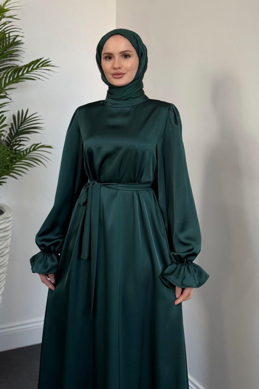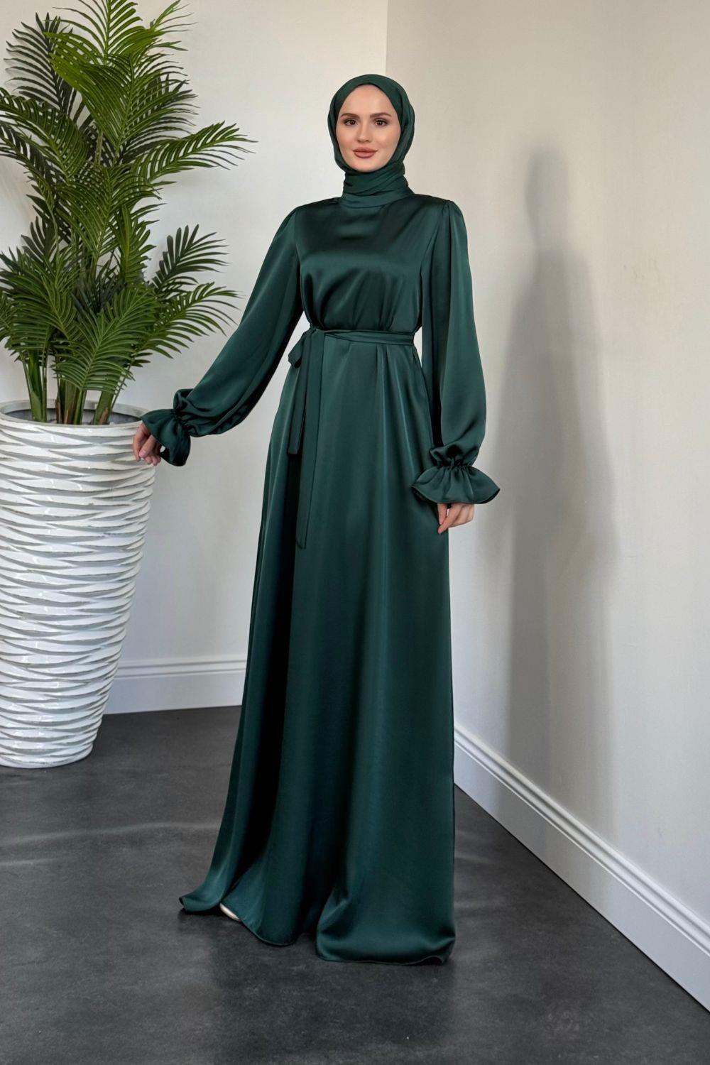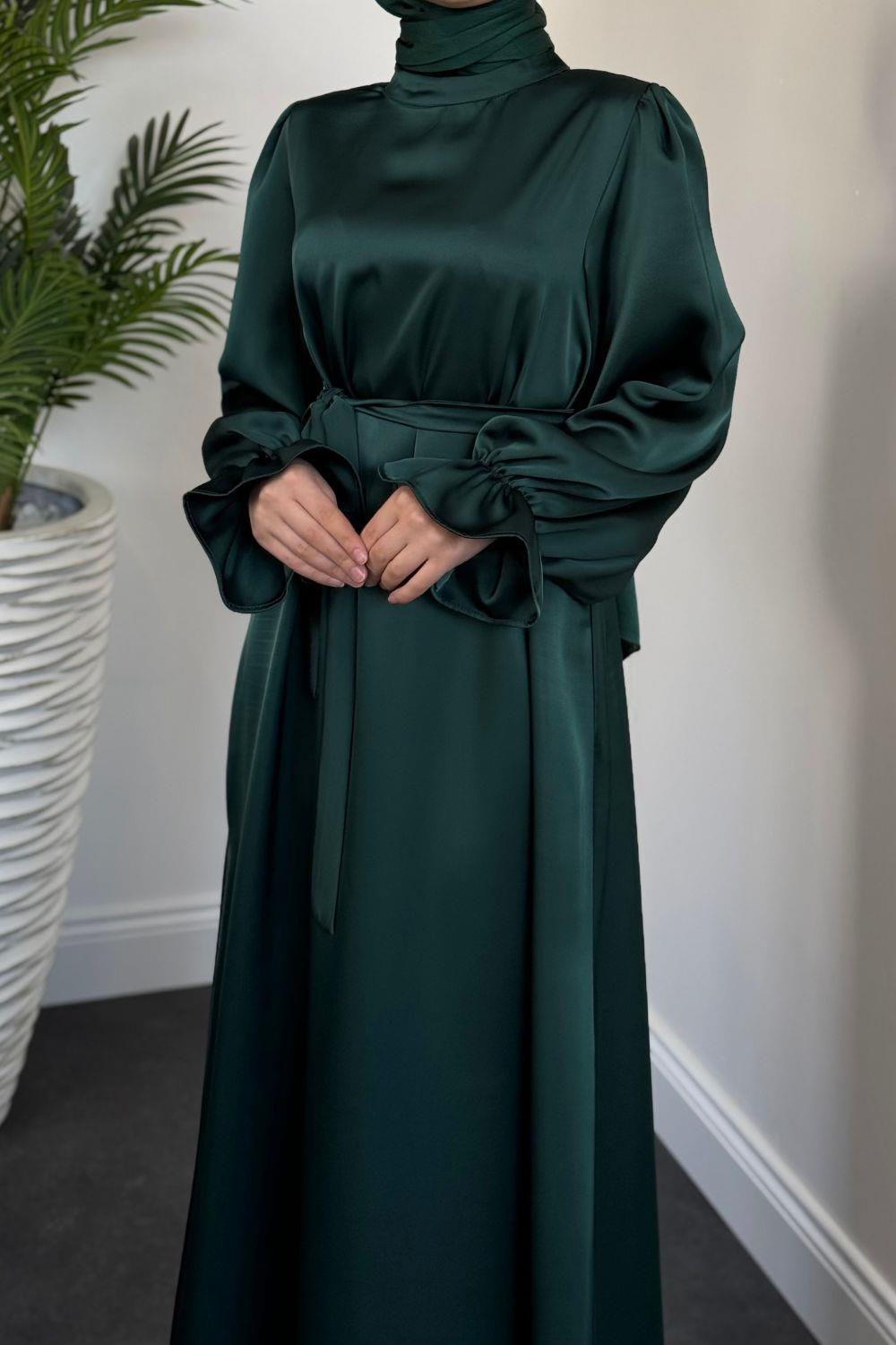 Lady Kolu Fırfır Saten Abiye Zümrüt