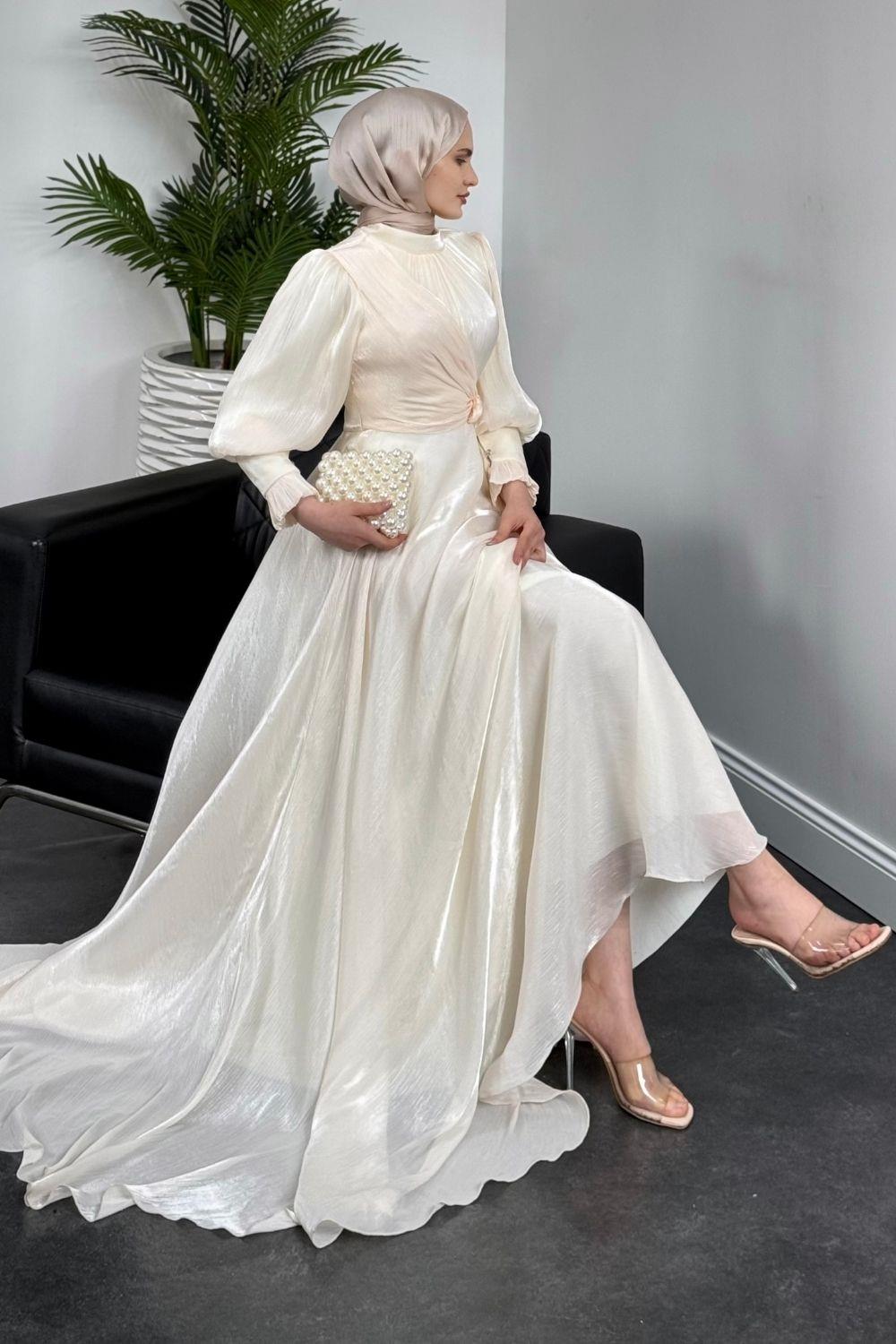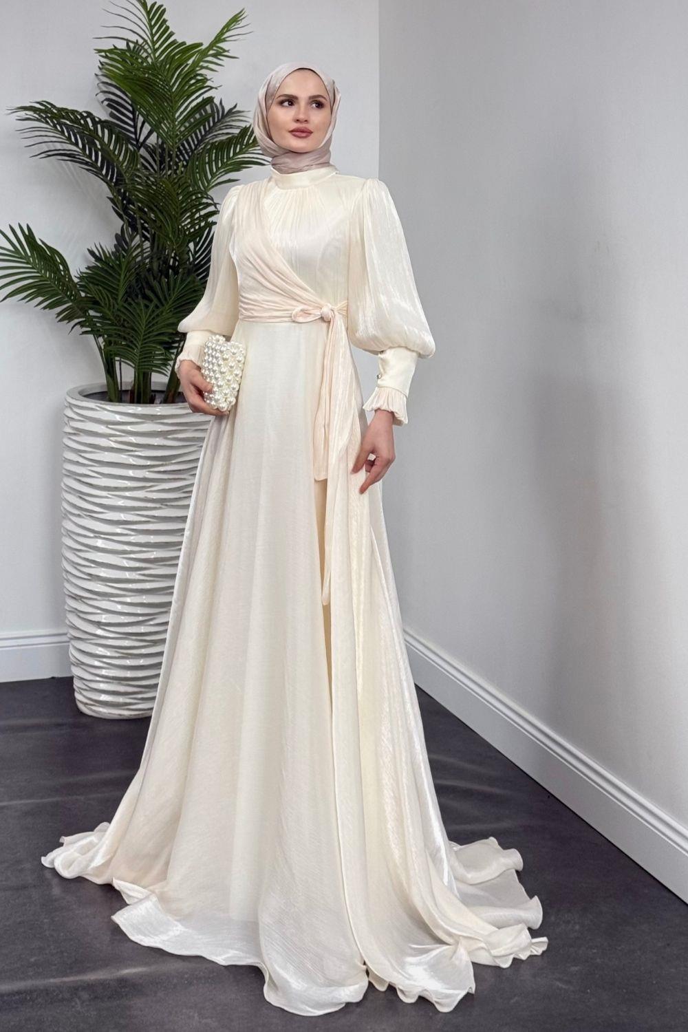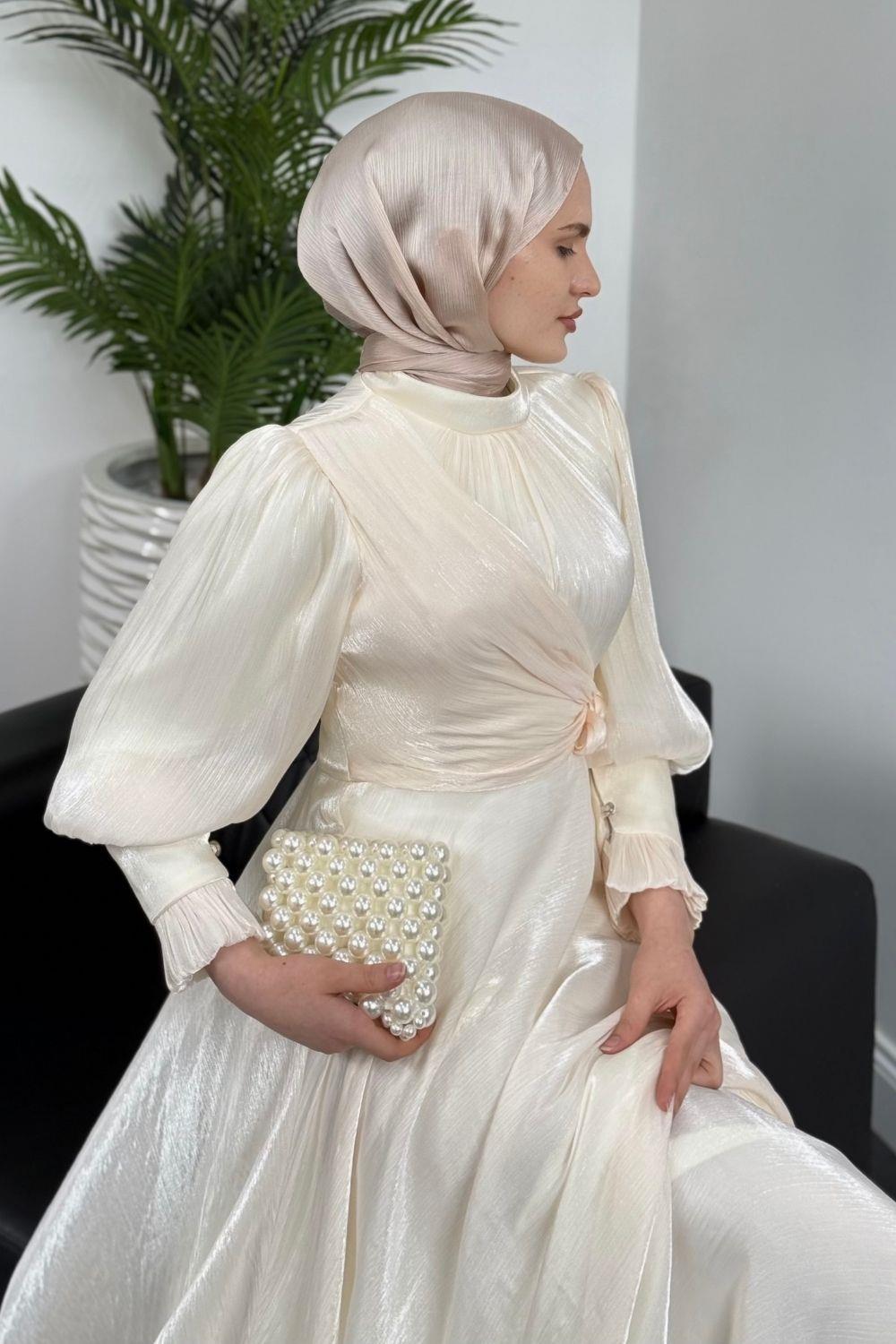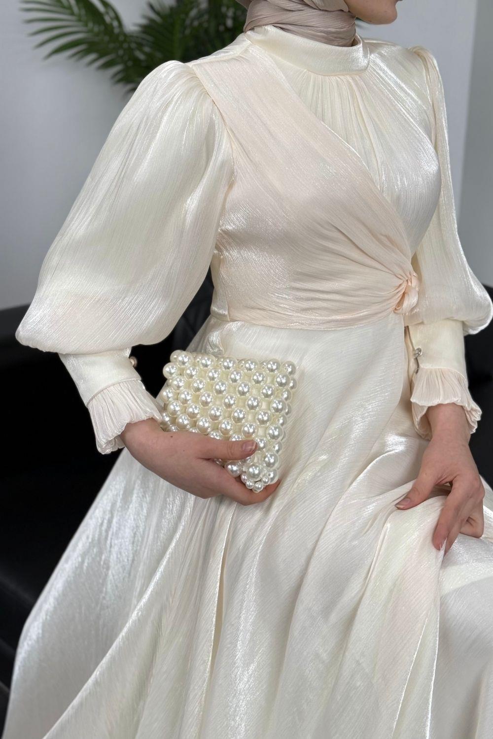 Rovena Yandan Bağlamalı Abiye Ekru