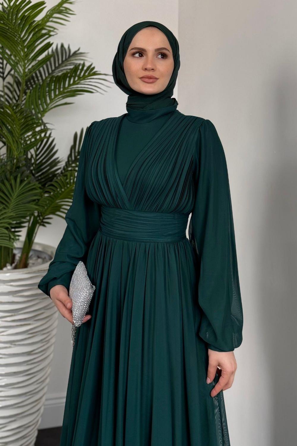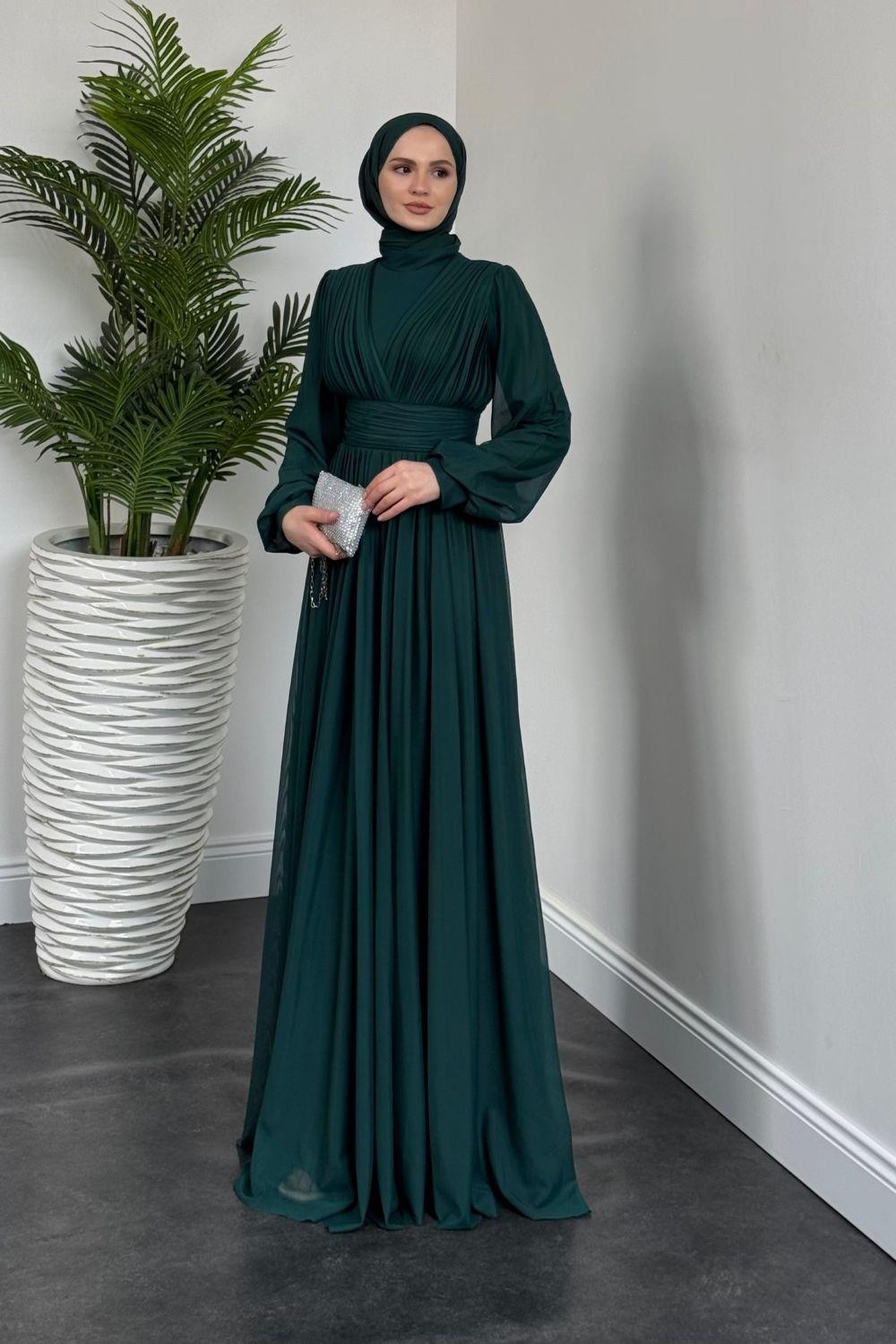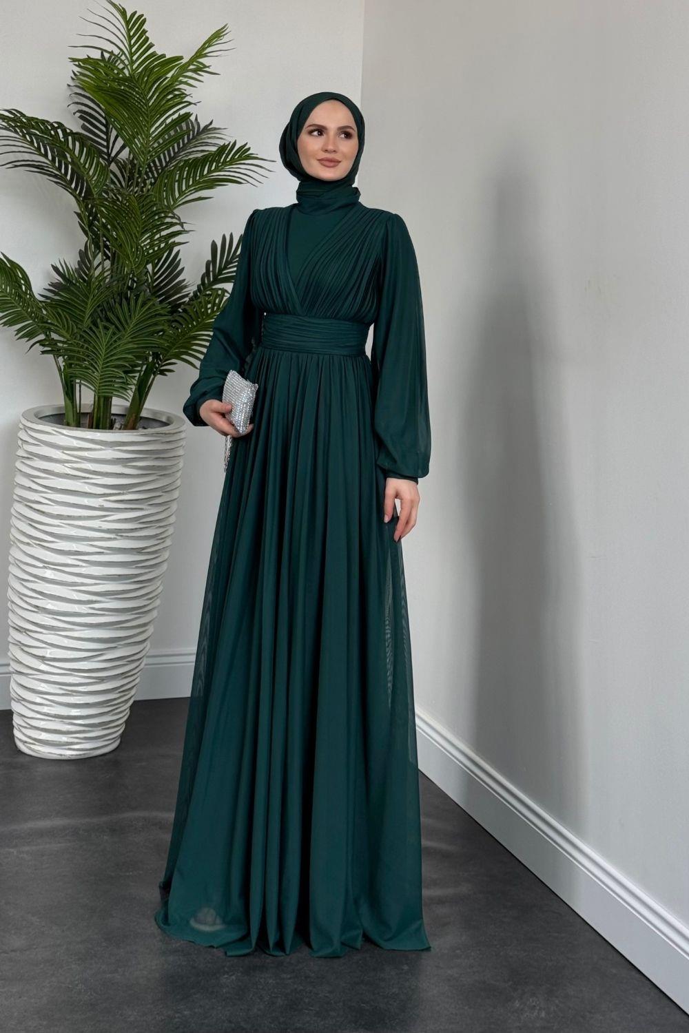 Alessi Beli Drapeli Tül Abiye Zümrüt