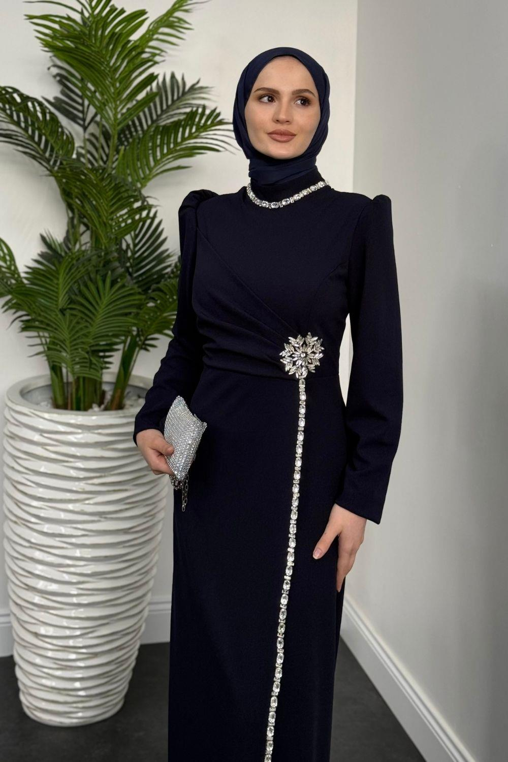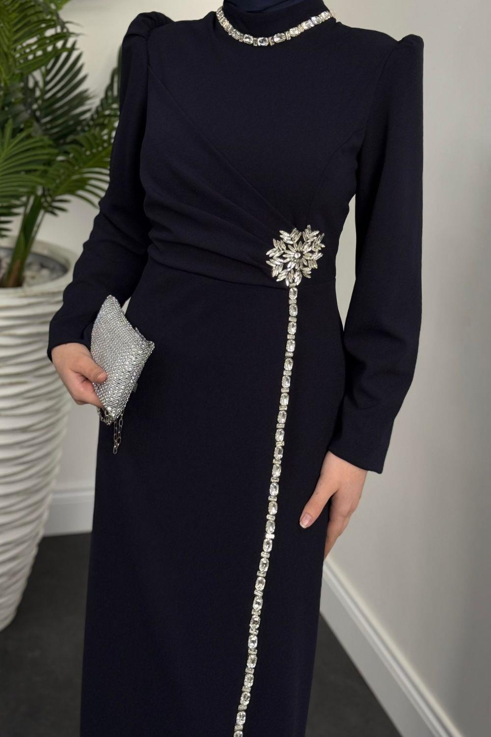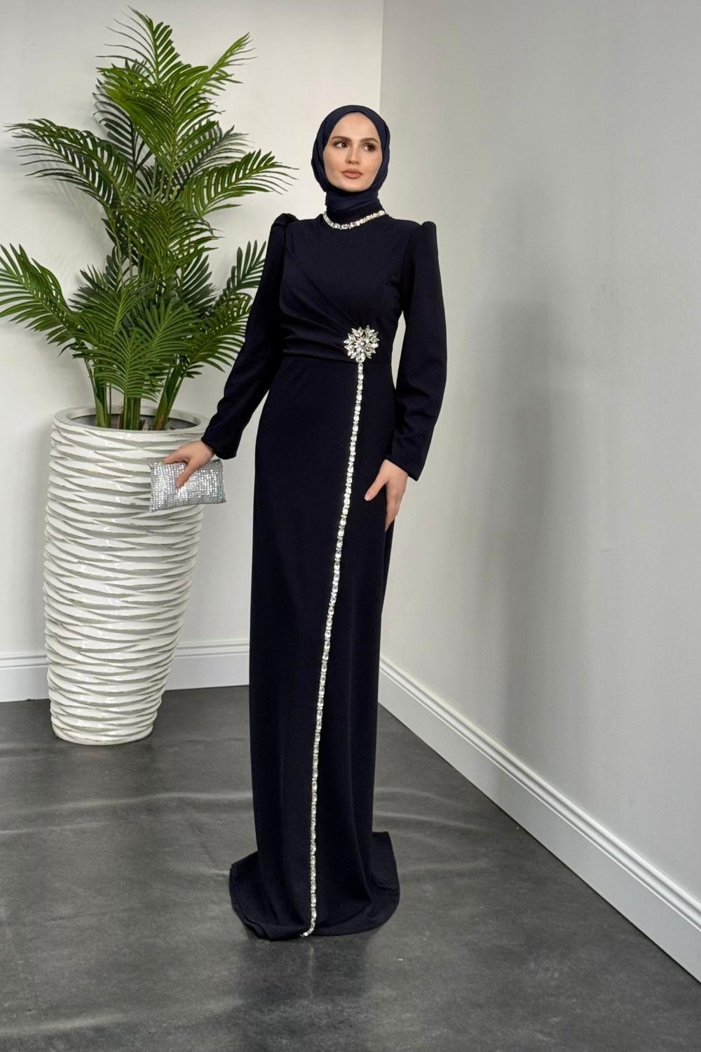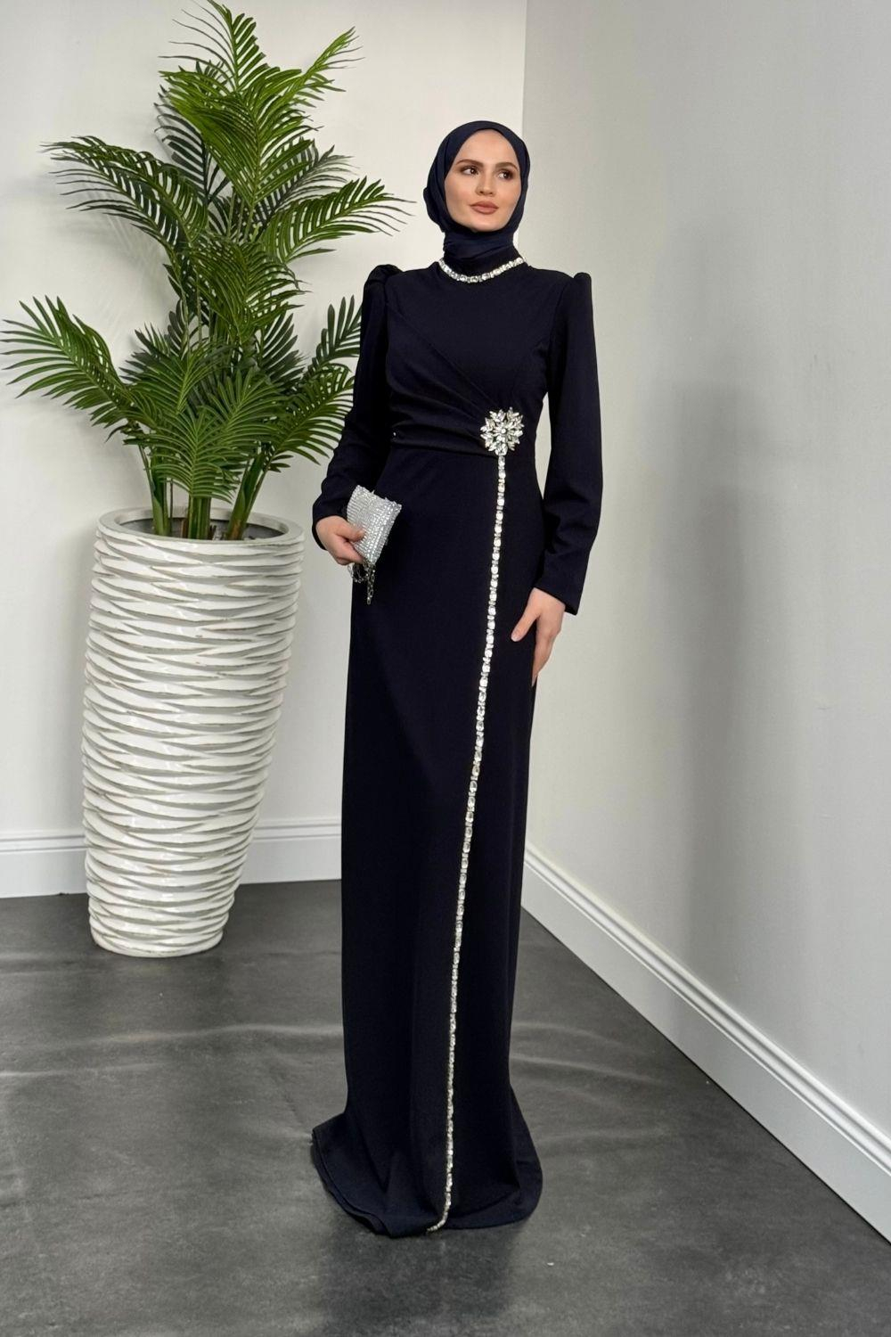 Martha Kar Taneli Taşlı Abiye Koyu Lacivert