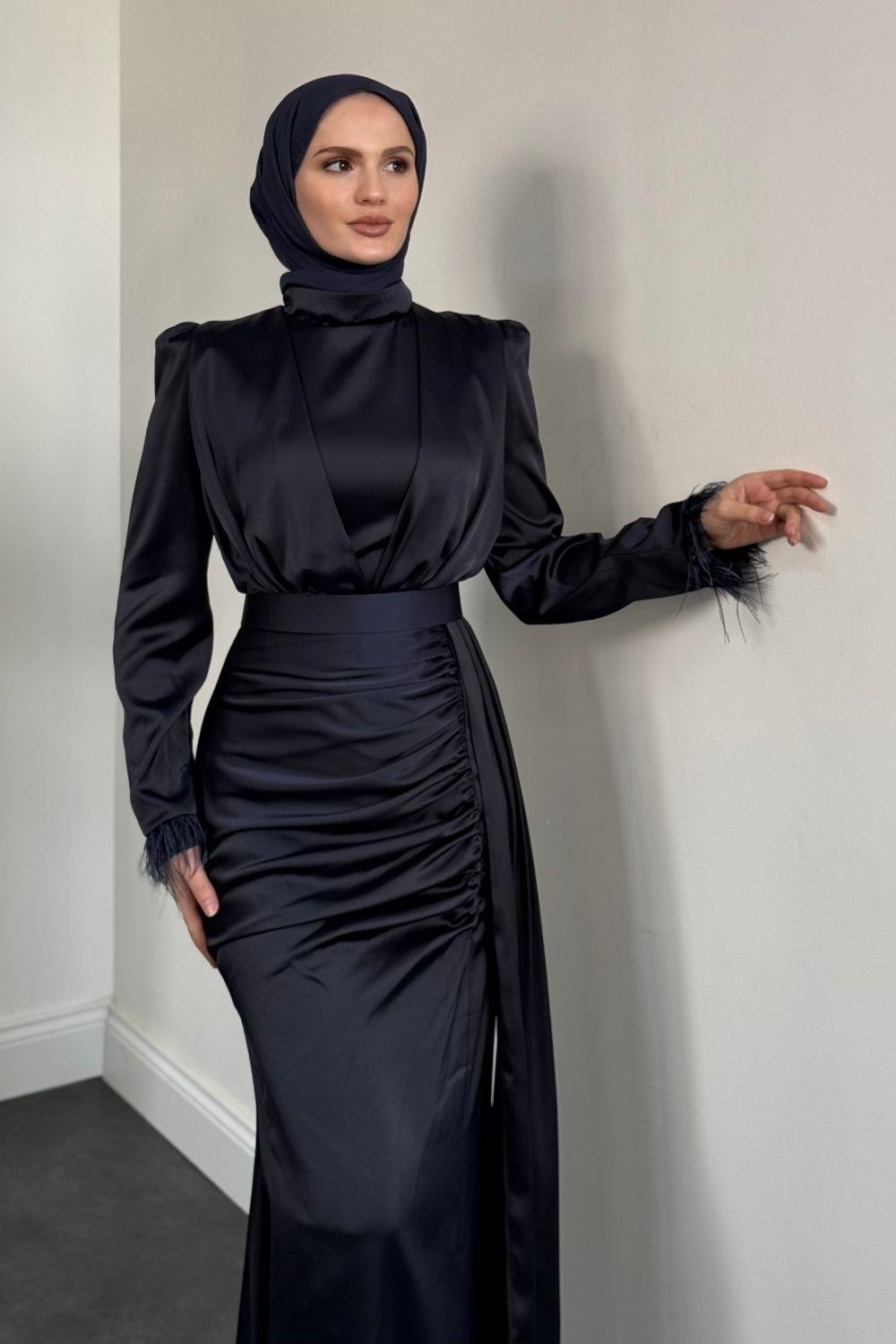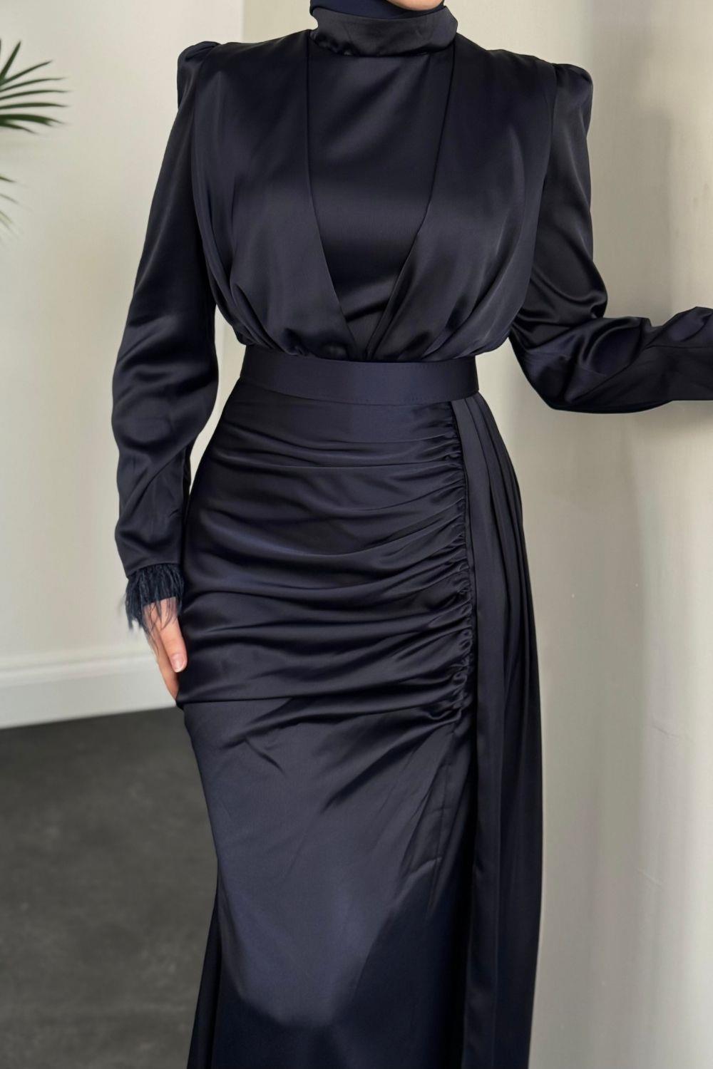 Senra Yandan Pelerinli Abiye Lacivert