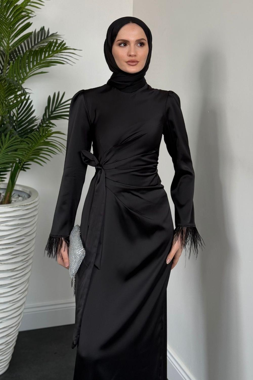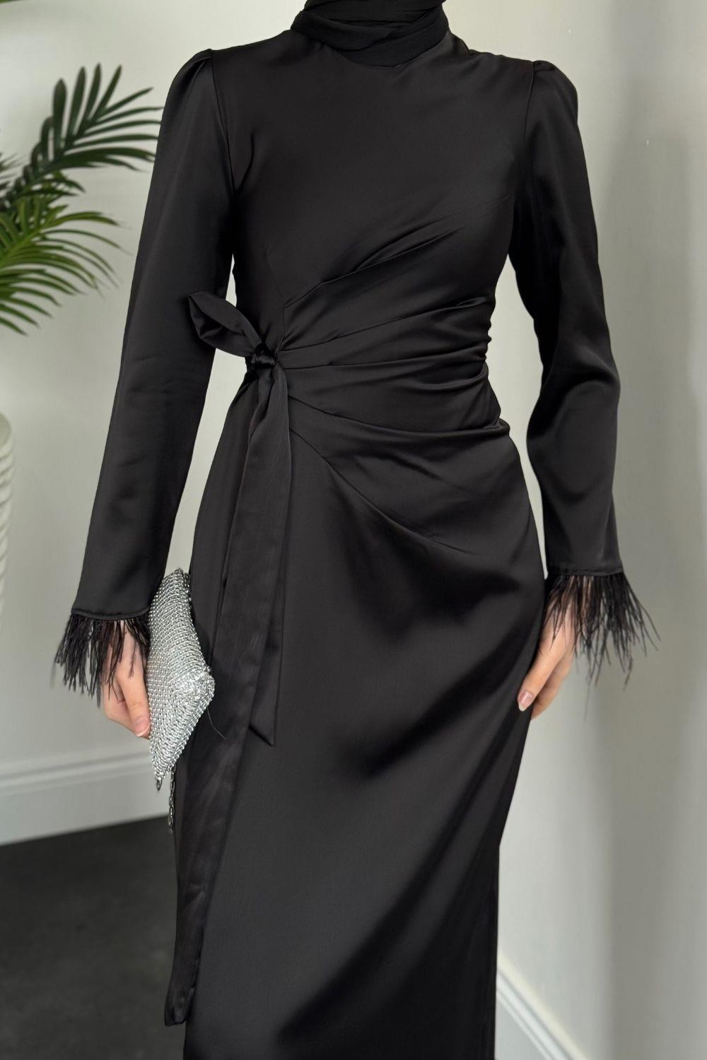 Diela Kolları Tüy Detay Abiye Siyah