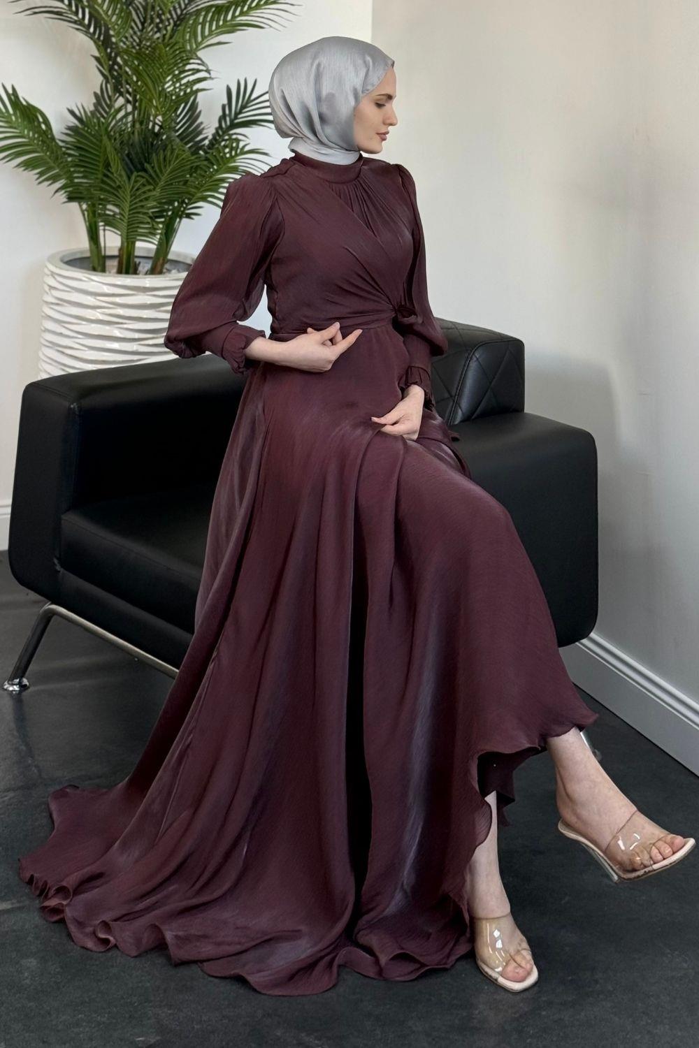Rovena Yandan Bağlamalı Abiye Kahverengi
