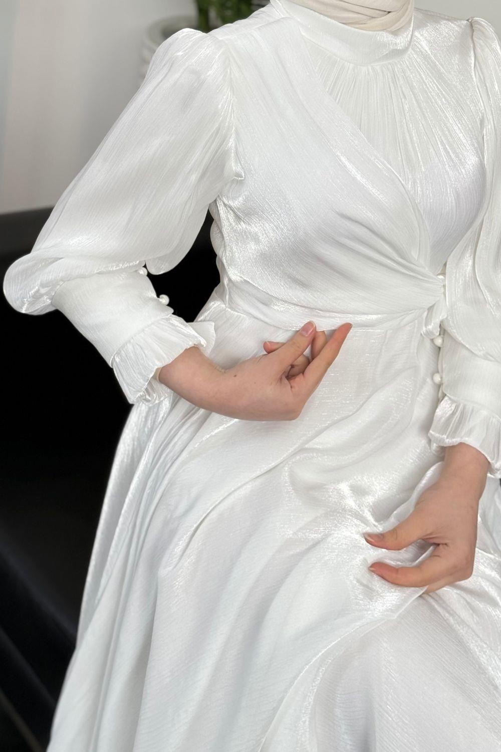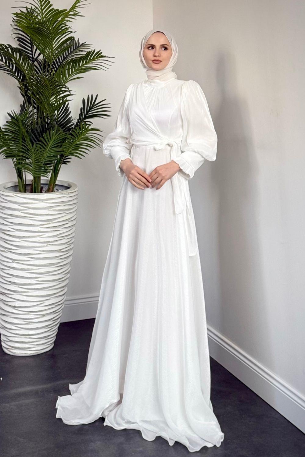 Rovena Yandan Bağlamalı Abiye Beyaz