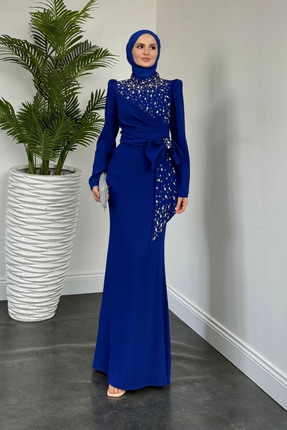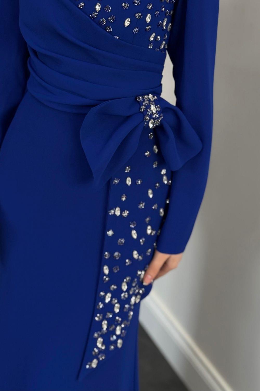 Lalissa Yandan Fiyonklu Taşlı Krep Abiye Sax