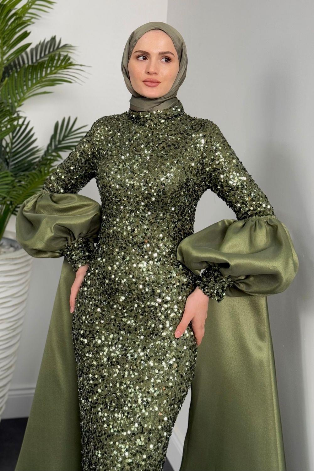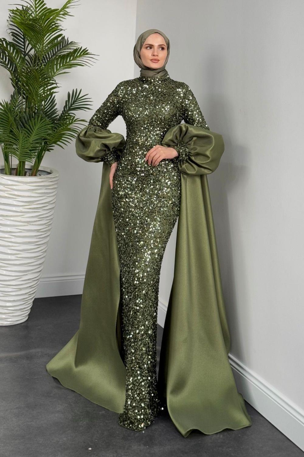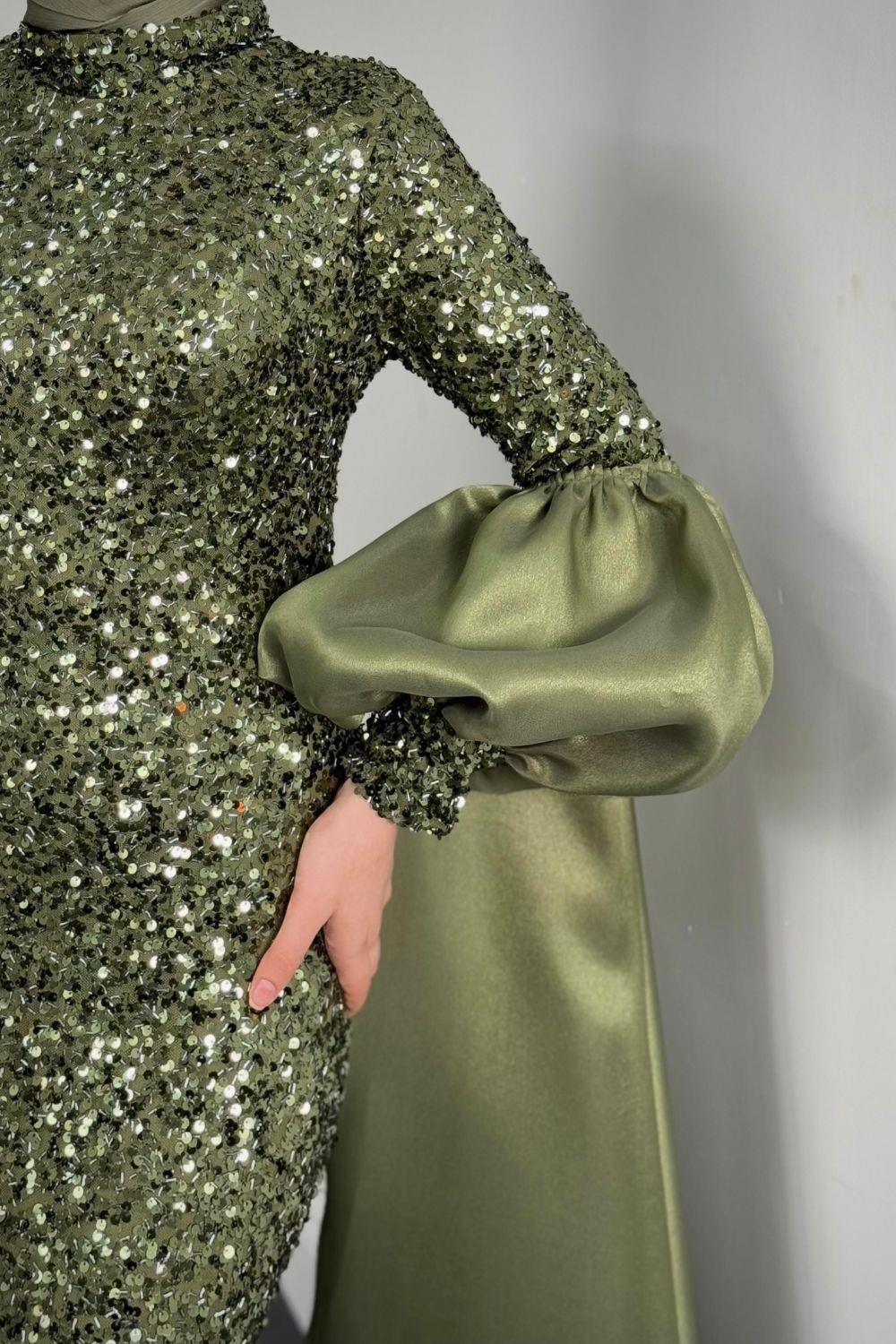 Jamie Kolları Seyyar Pelerinli Balon Kol Abiye Haki