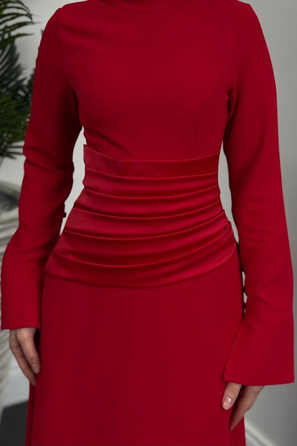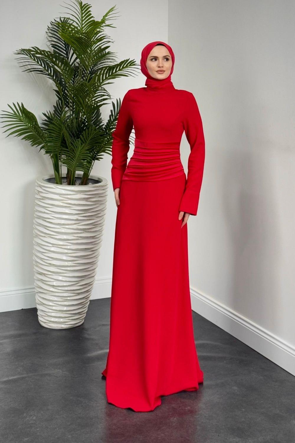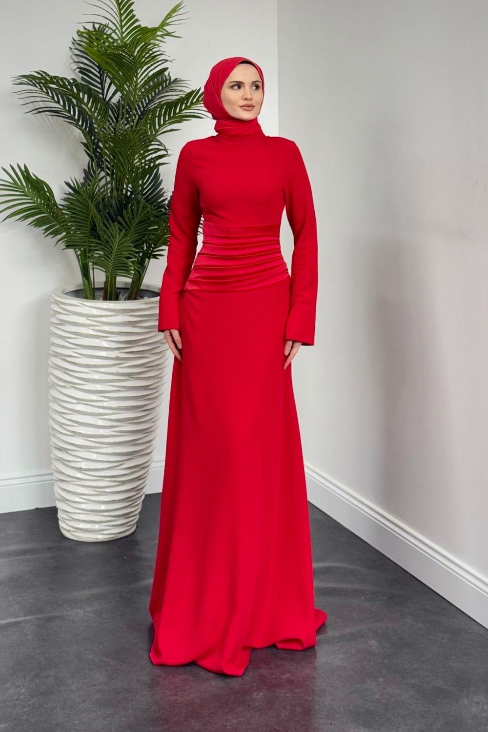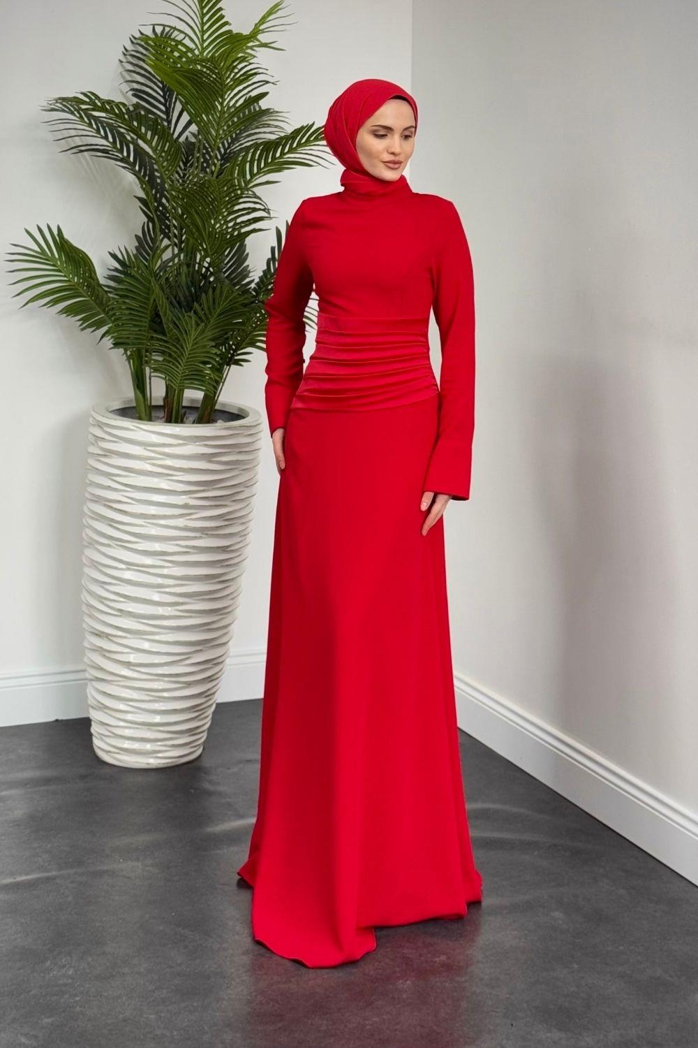 Fiore Beli Drapeli Balık Abiye Kırmızı