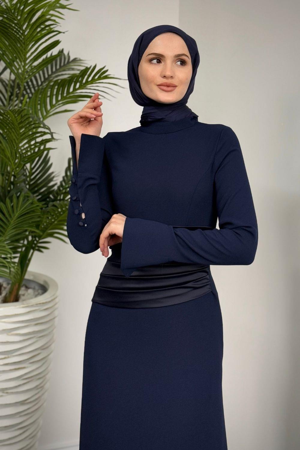Fiore Beli Drapeli Balık Abiye Lacivert