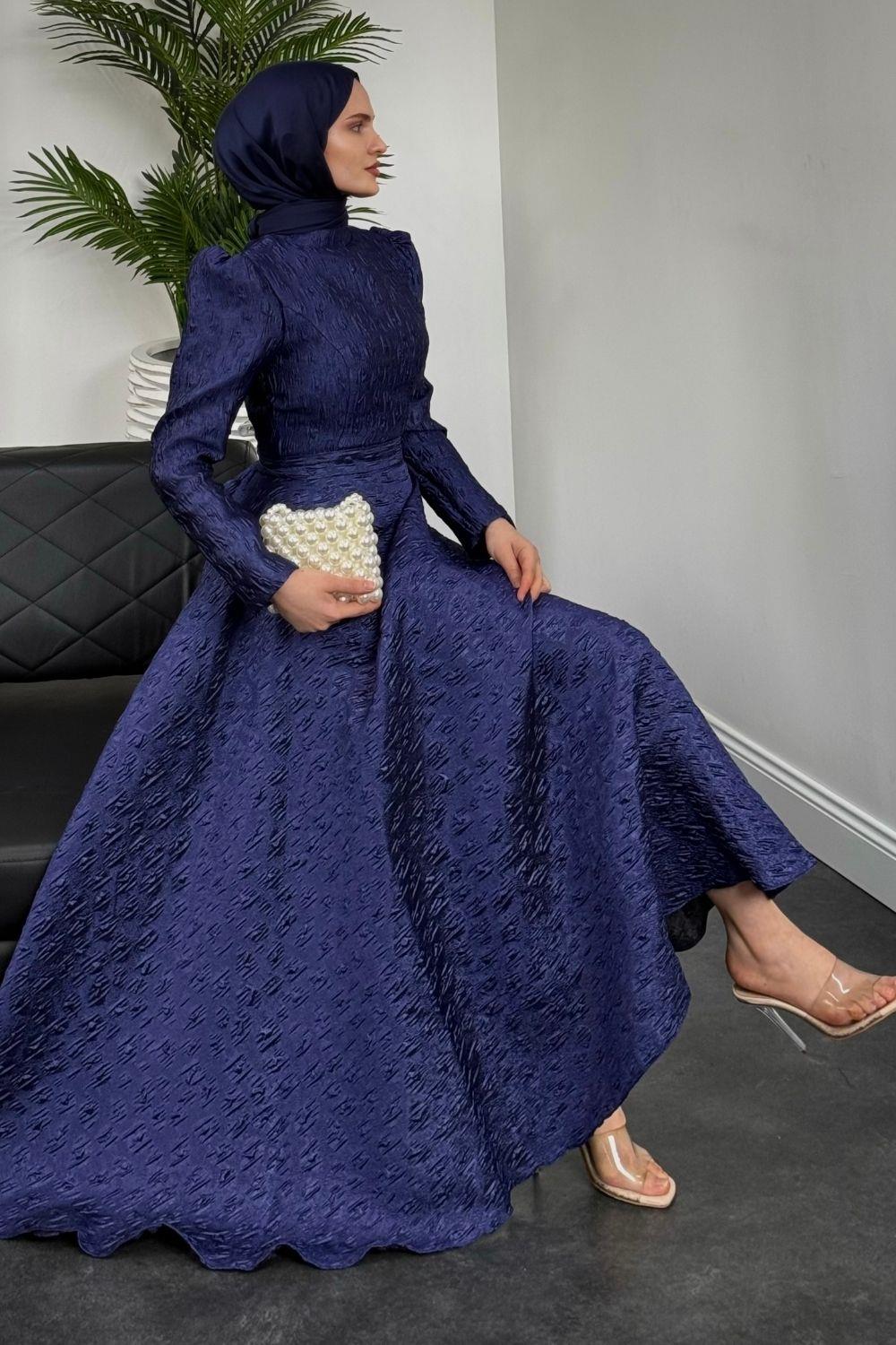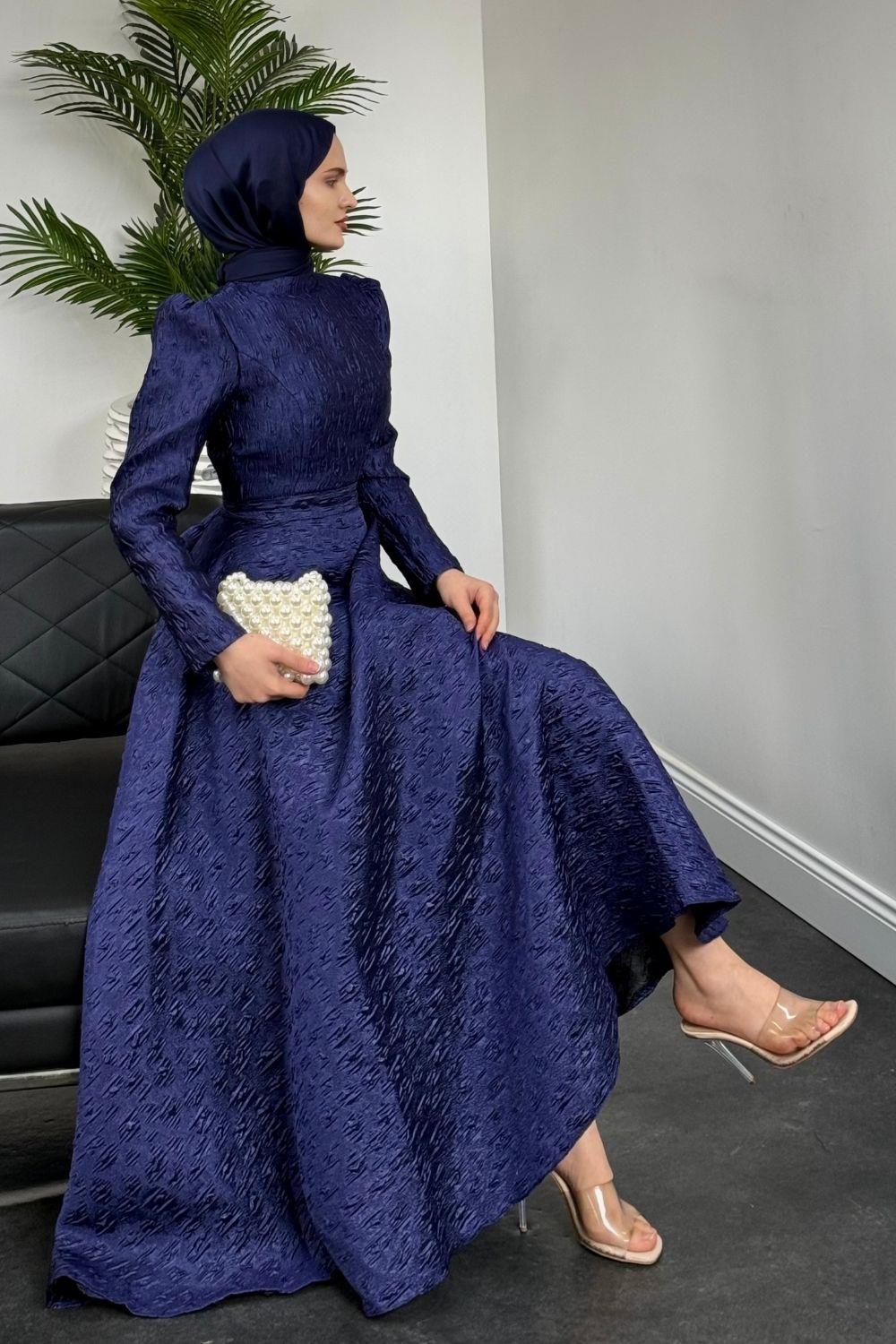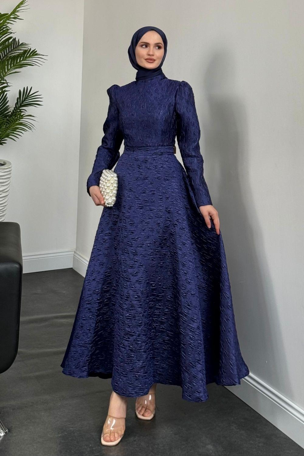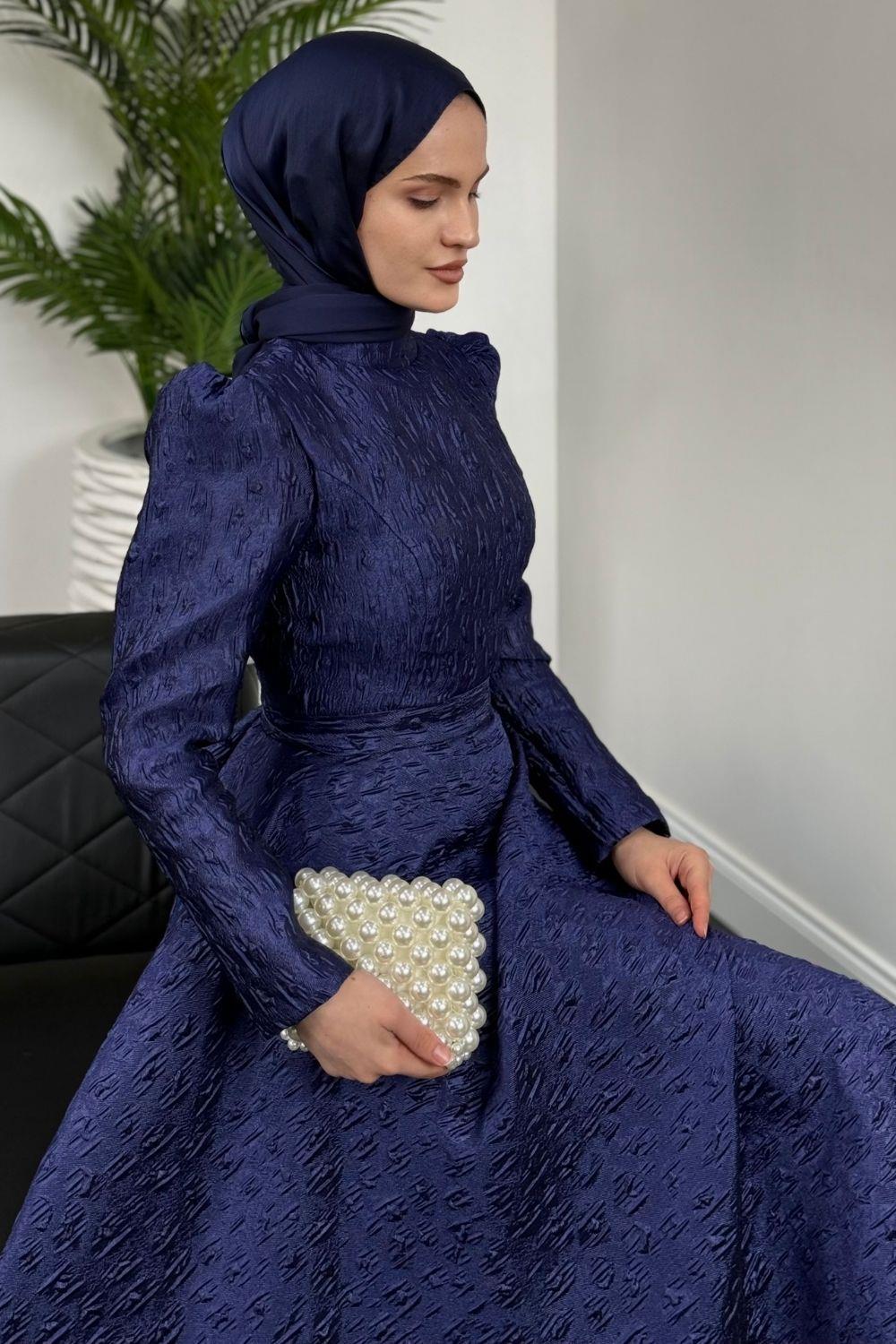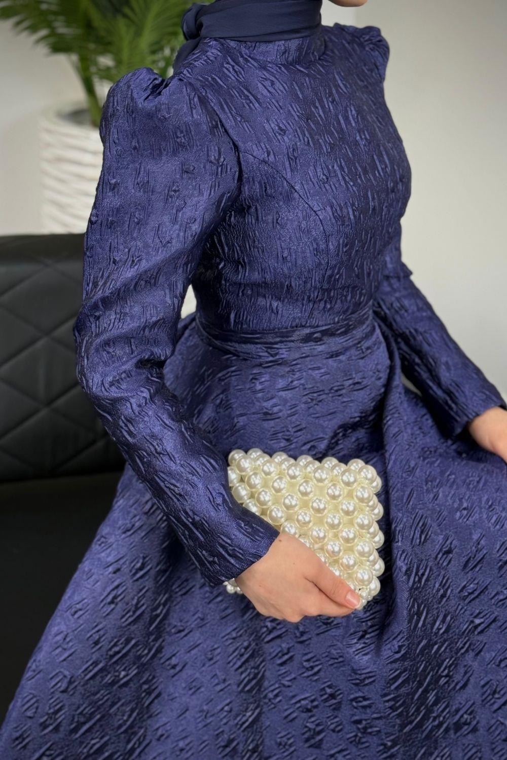 Yella Brokar Kumaş Prenses Abiye Lacivert