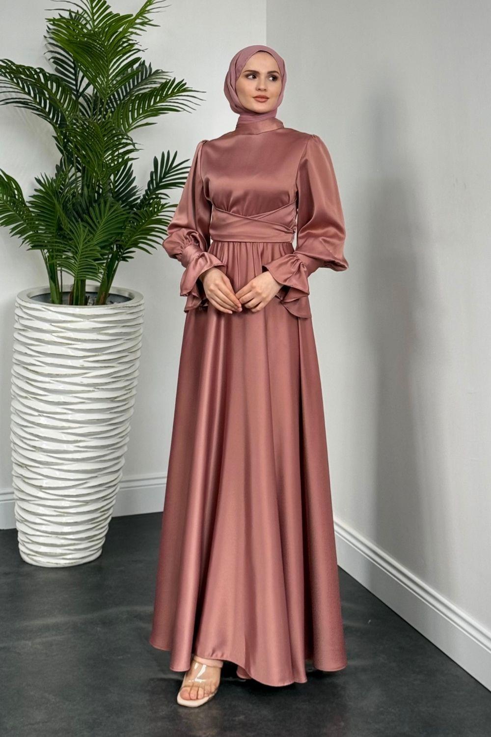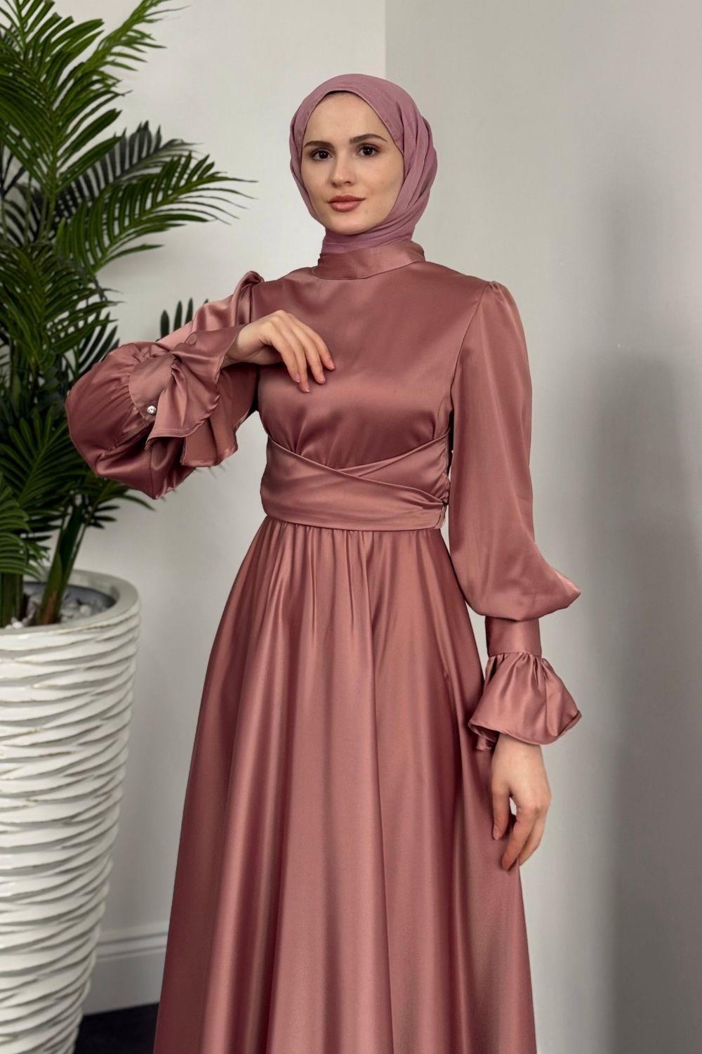 Belina Çapraz Kolları Fırfır Abiye Gül Kurusu