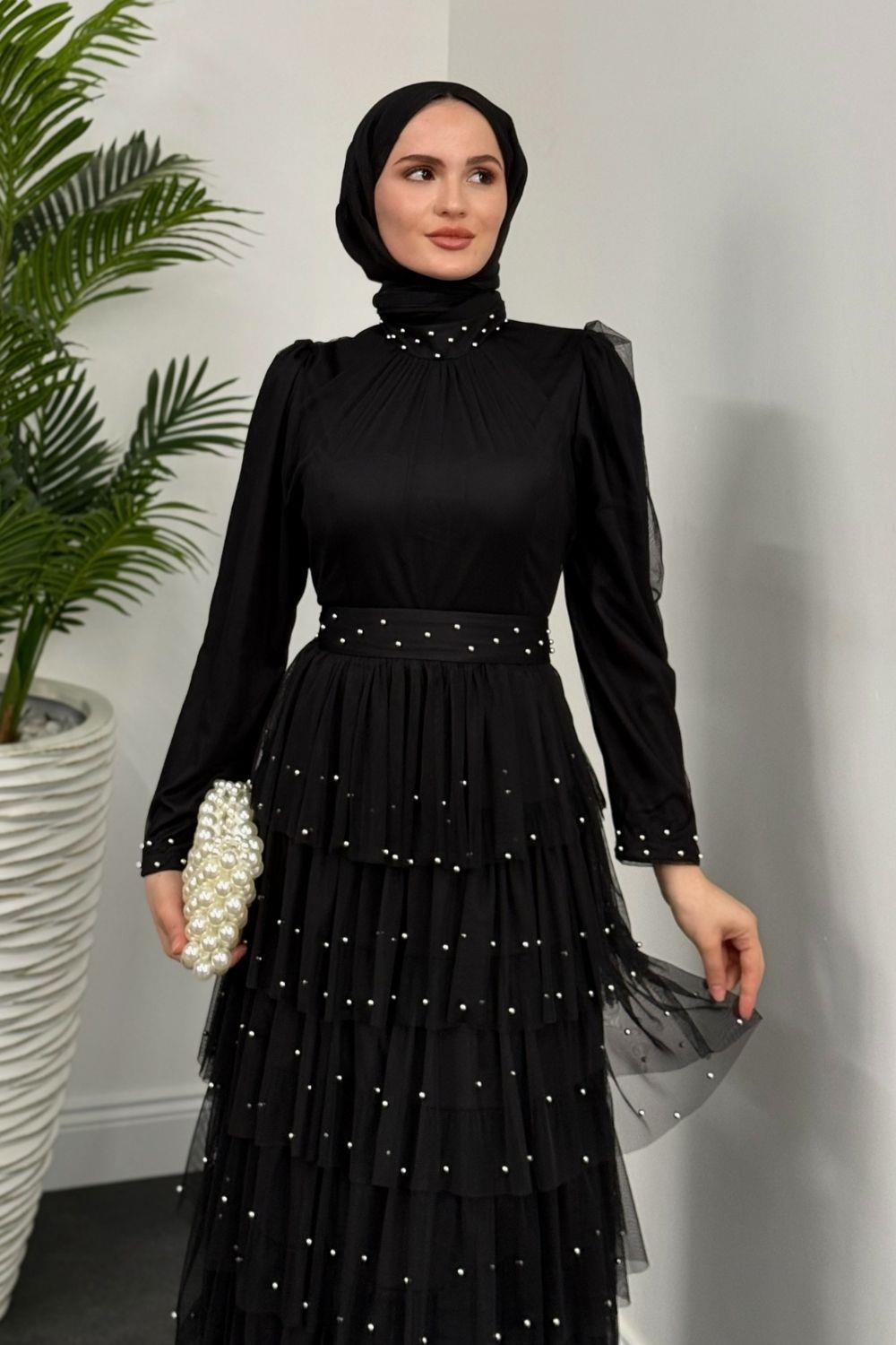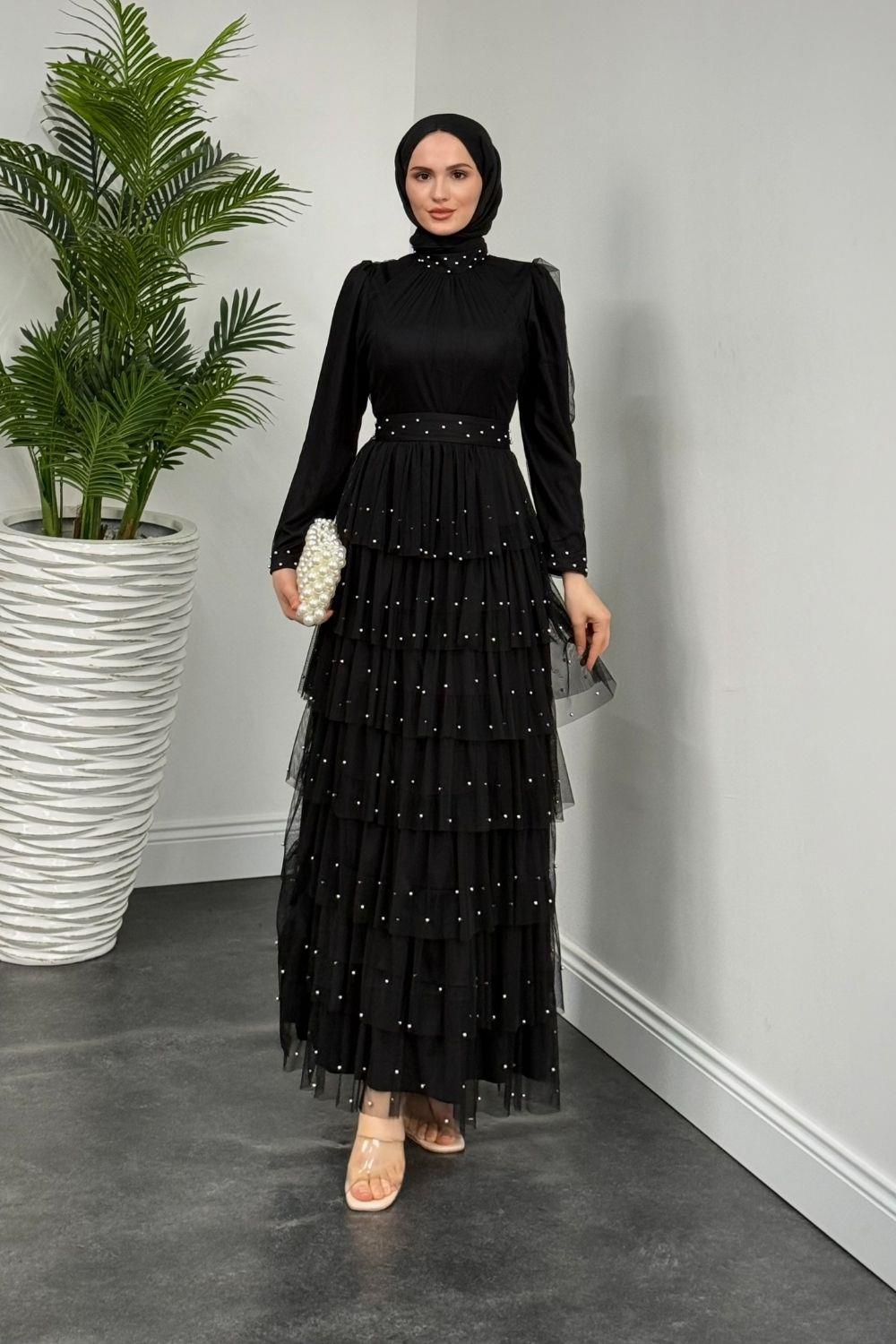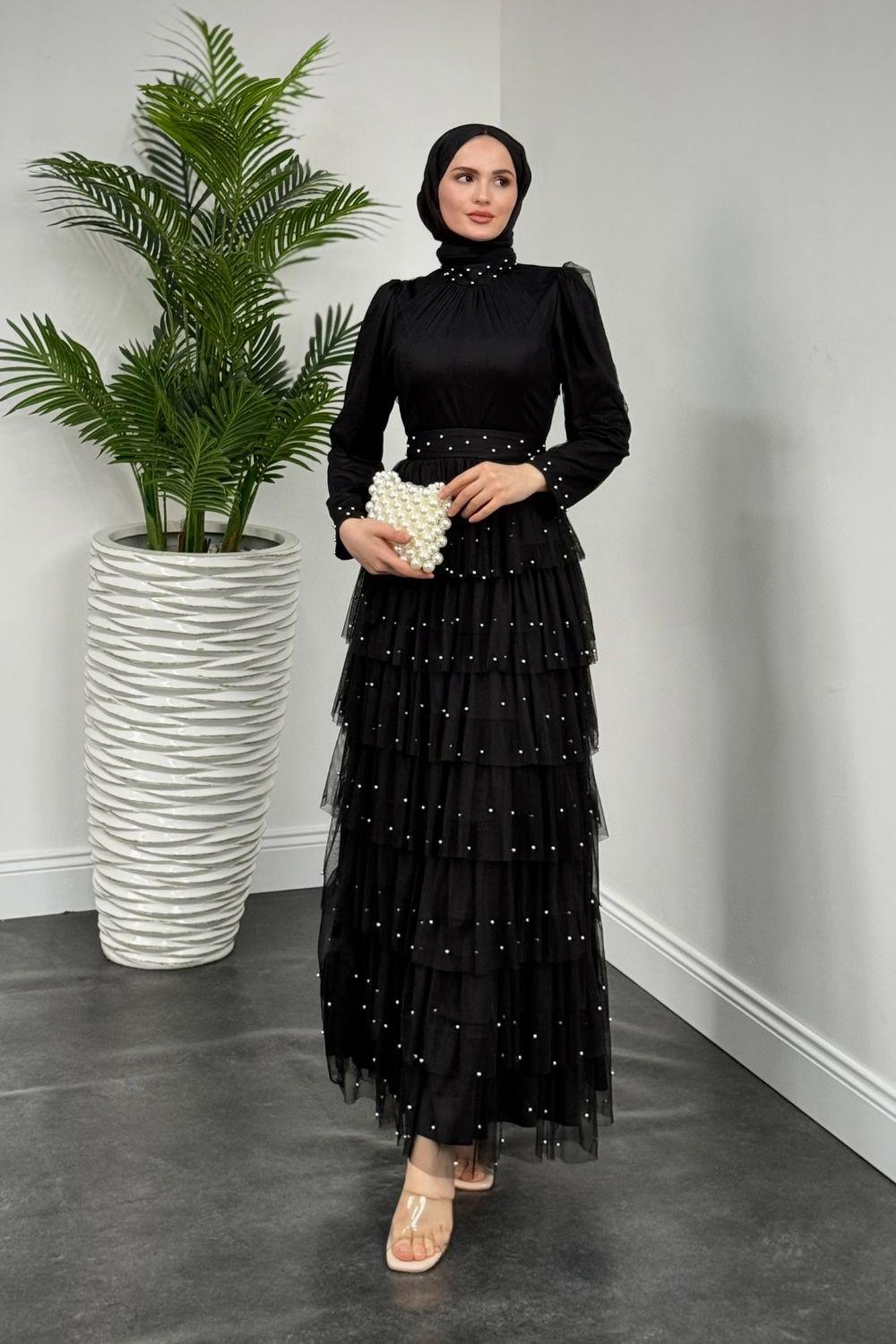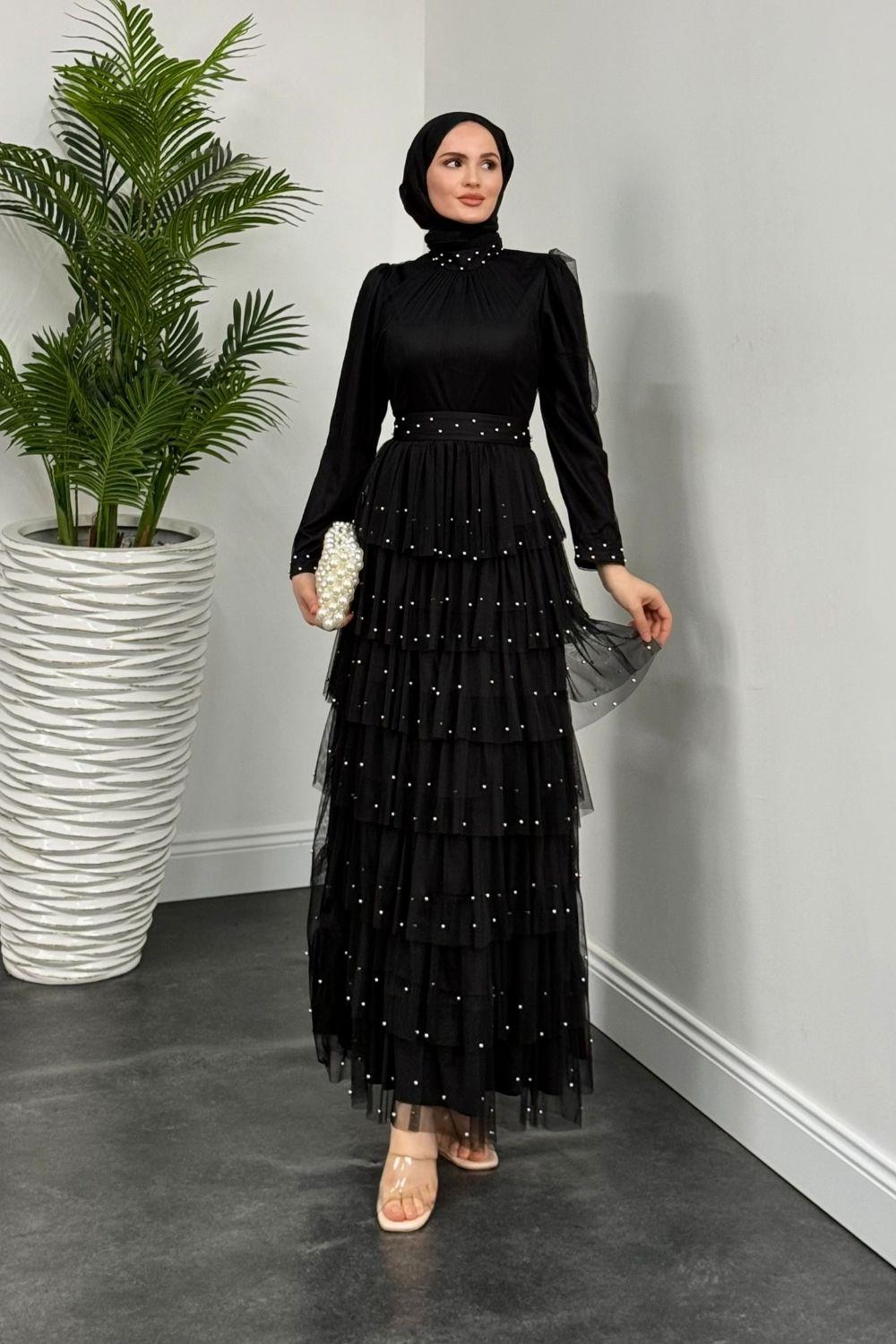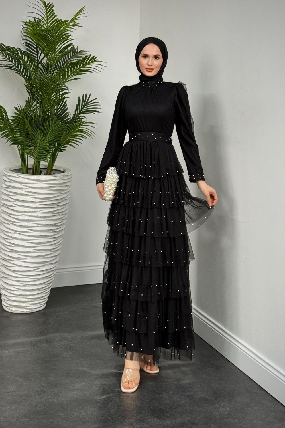 Mona Boncuklu Abiye Siyah(KEMERSİZDİR)