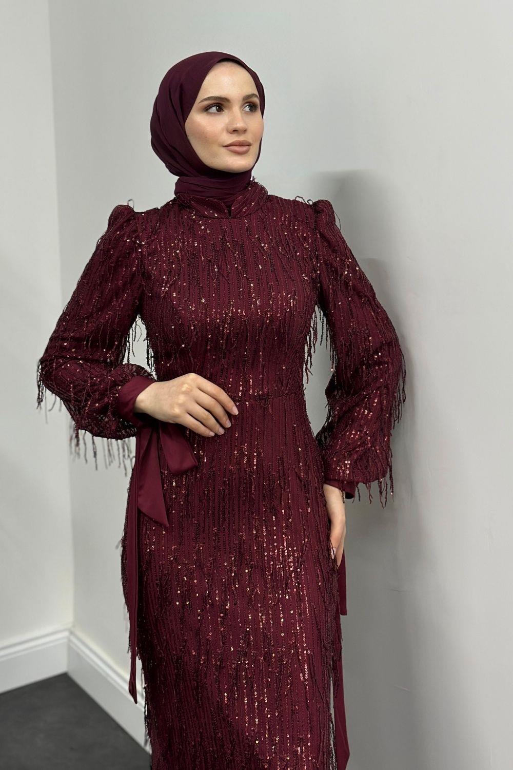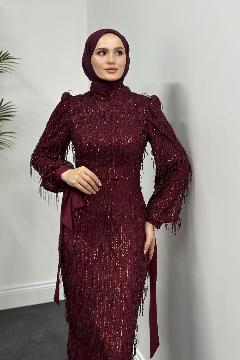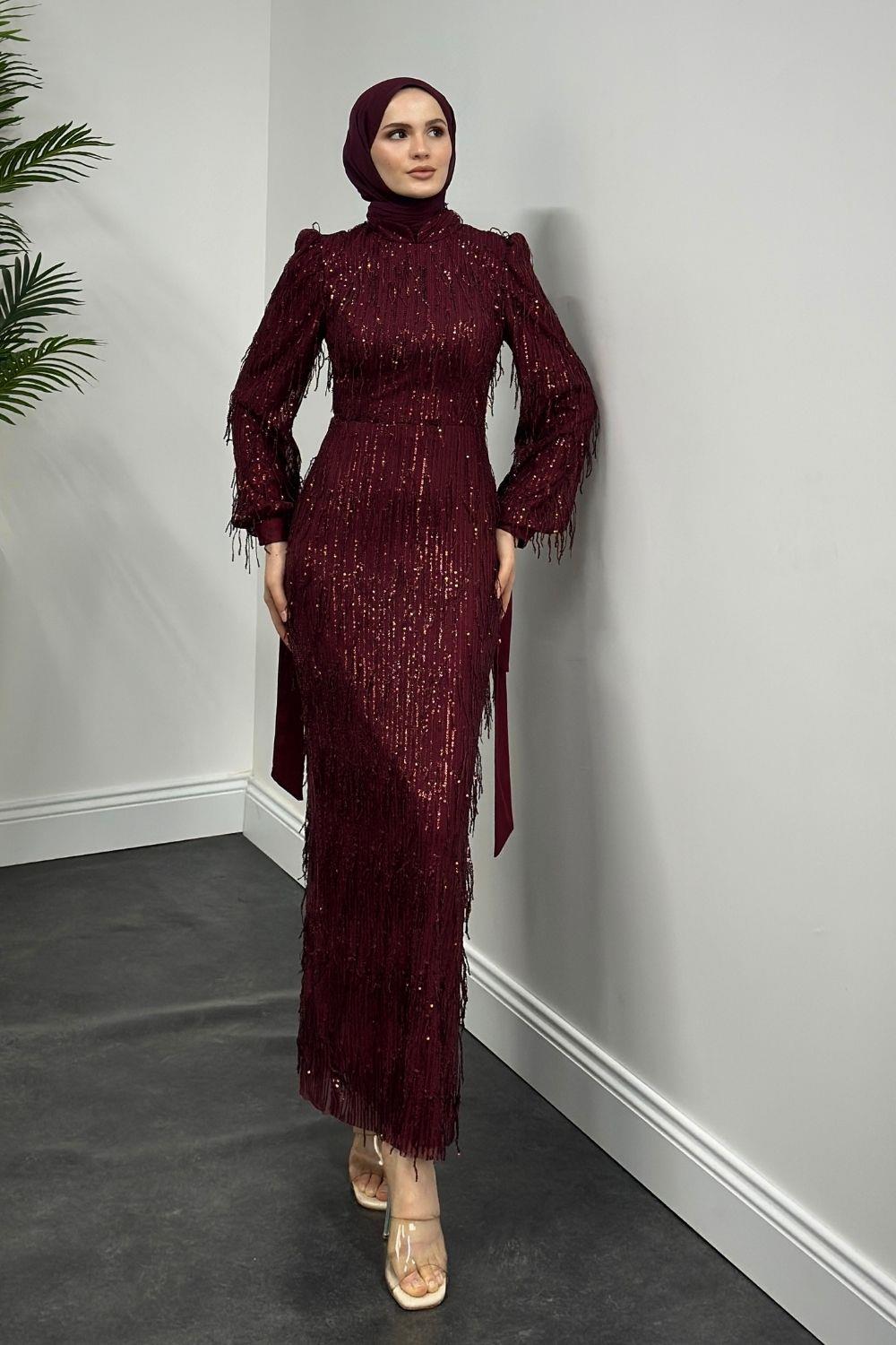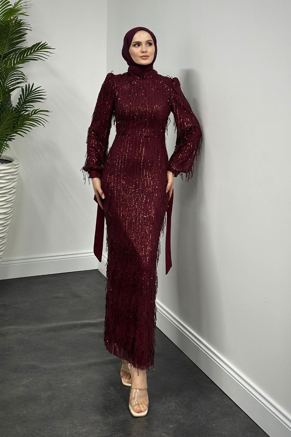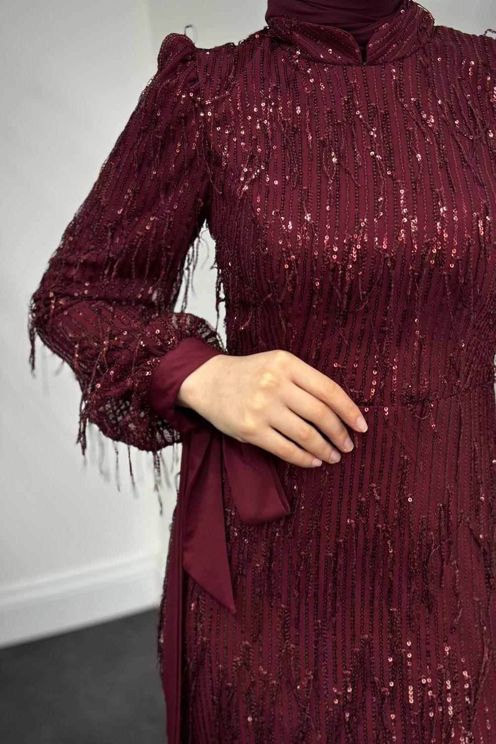 Alena Püsküllü Pullu Kalem Abiye Bordo