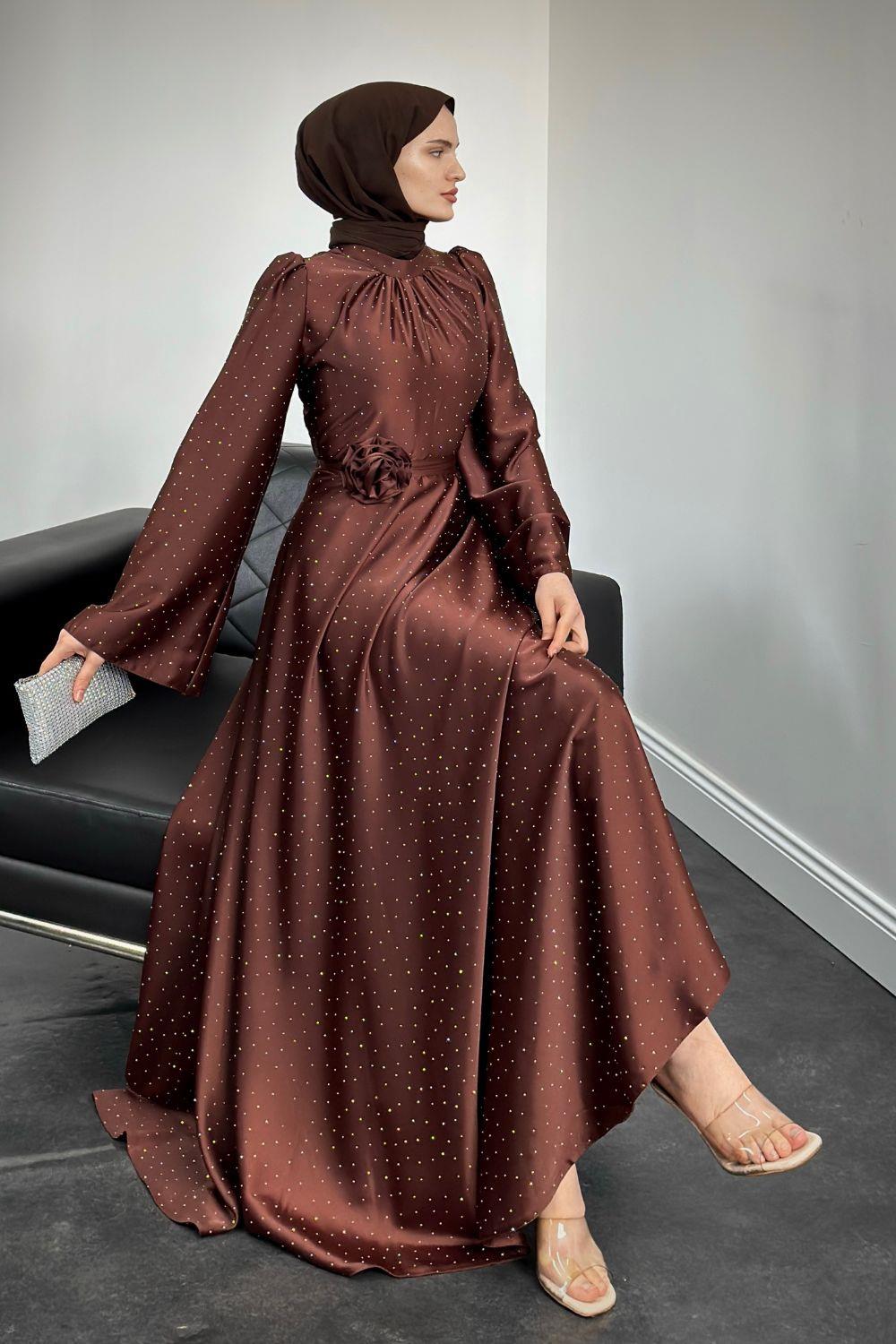 Branca Taşlı Gül Tokalı Abiye Kahverengi