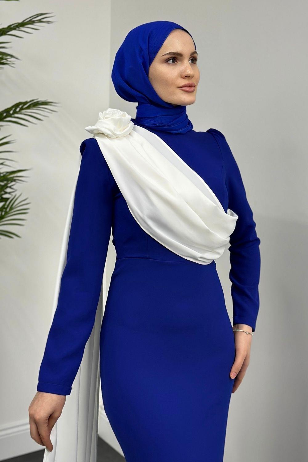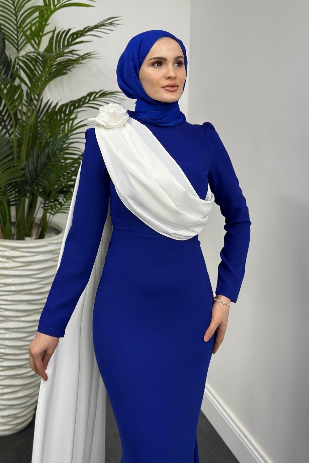 Castilya Pelerinli Omzu Gül Abiye Sax