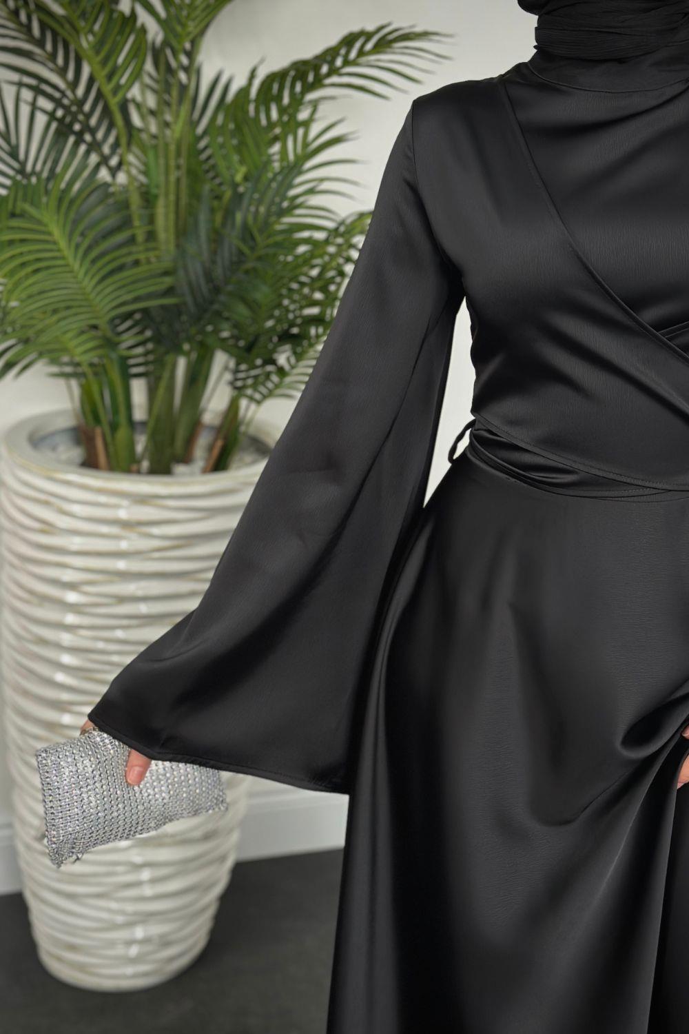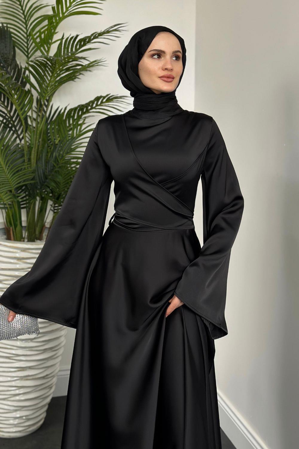Pary Önü Çapraz Abiye Siyah