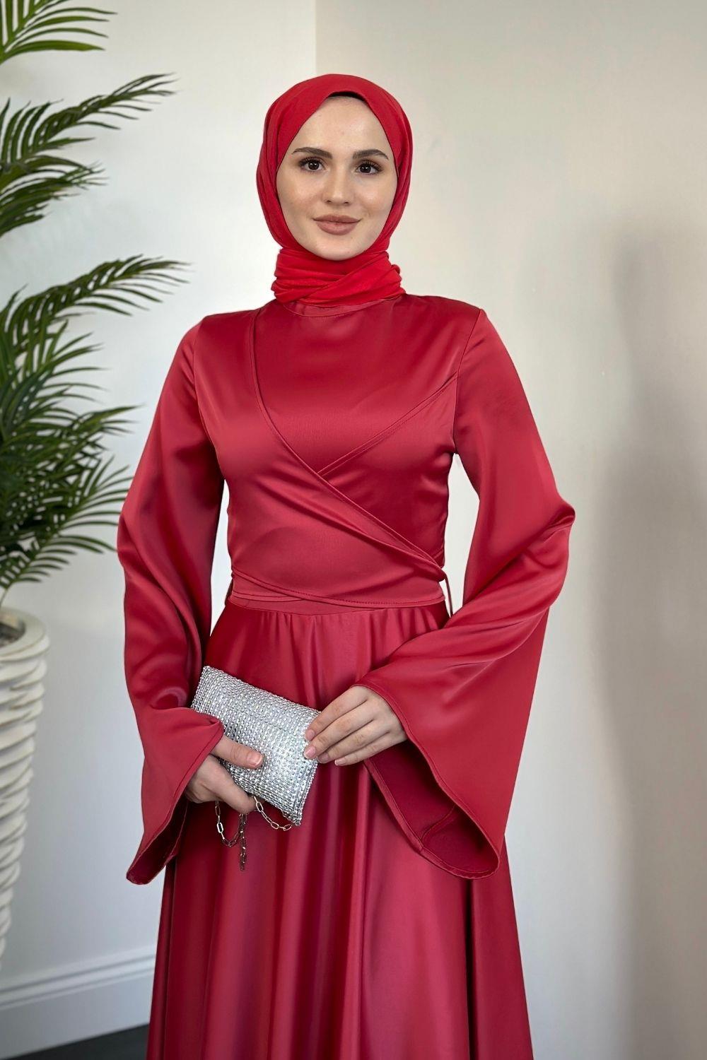 Pary Önü Çapraz Abiye Kırmızı