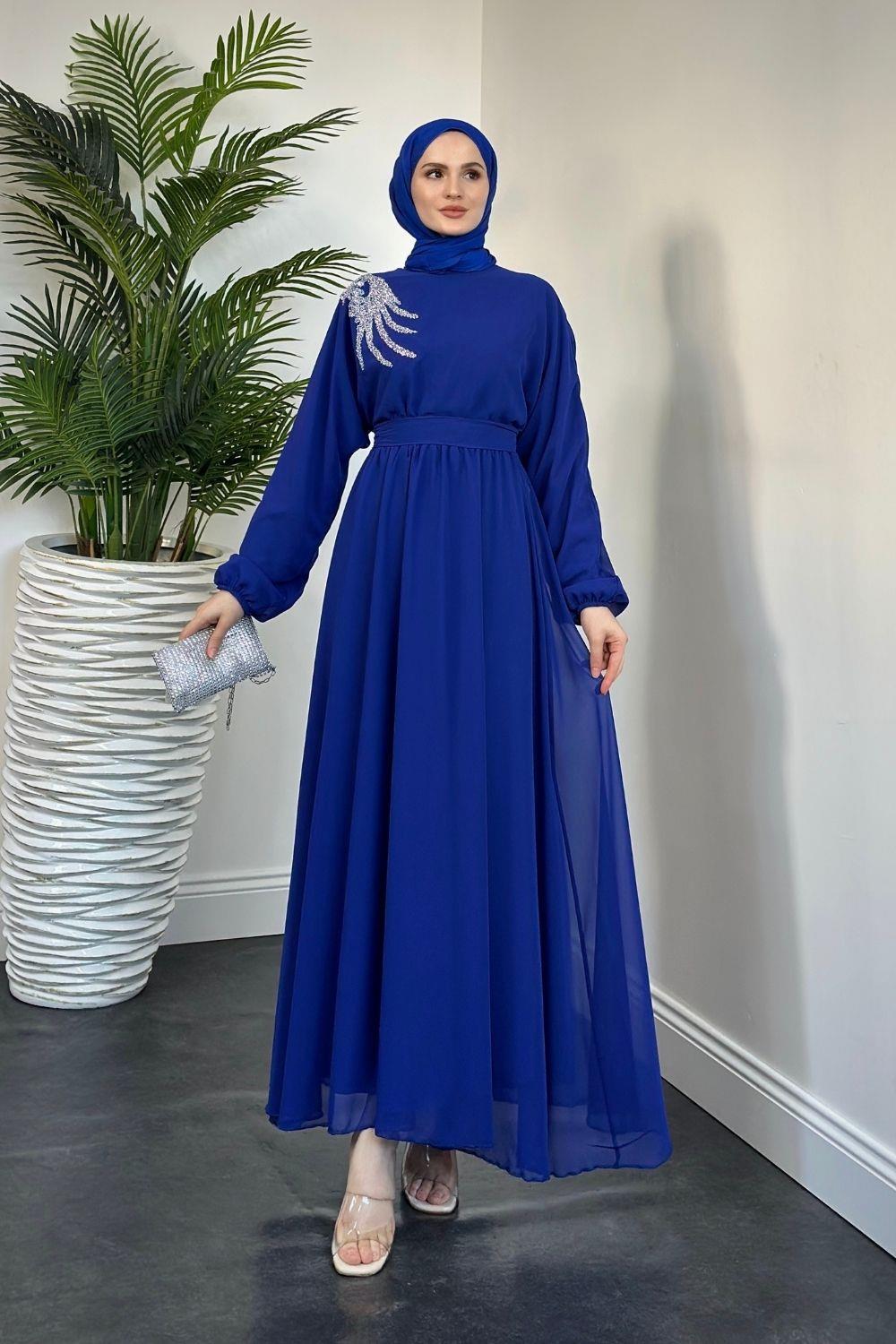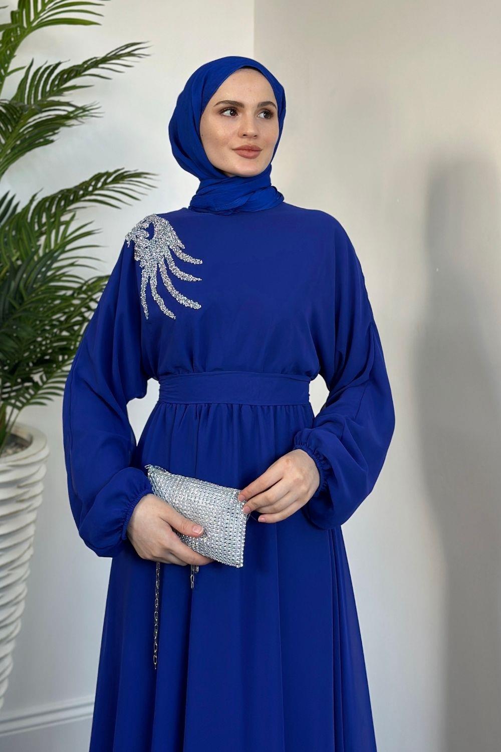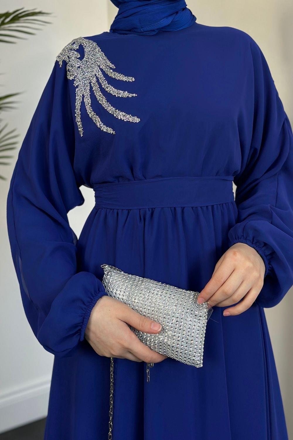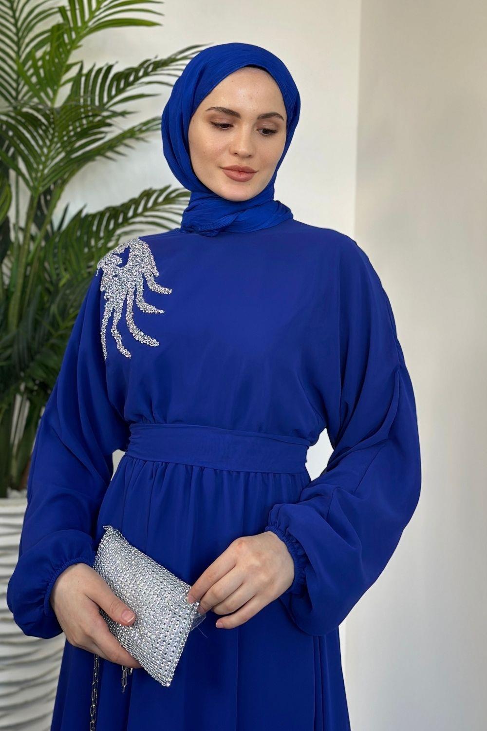 Hilla Omzu Taşlı Abiye Sax